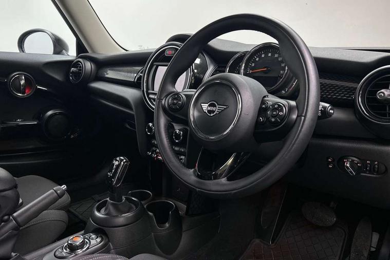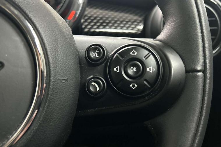 Compatible mobile phone bluetooth with audio streaming, Instrument cluster, Mini E-call, MINI TeleServices, On board computer, Service interval indicator, Performance Control, Steptronic transmission with double clutch, 6.5" touchscreen with LED ring, FM tuner and DAB digital radio, Automatic headlight activation switch, Bonnet scoop, Chrome border honeycomb structure radiator grille with S badge, Chrome plated fuel cap, Dynamic brake lights, Electric front windows, Heated rear window, Heated windscreen washer jets, LED headlight with closed ring and daytime driving lights, Metal door sill strips with Cooper S imprint, Model logo Cooper S on right of tailgate, Rain sensor window wipers, Rear fog lights, Rear LED lights with union jack design, Rear window wiper, Side scuttle panel with integrated indicator, Sun/heat protection glass, Two central exhaust tailpipes with chrome finisher, White indicator lenses, 12V Accessory socket in centre console, 4 lashing eyes in luggage compartment, 60/40 split folding rear seat, Chrome interior highlights, Colour line - Carbon black, Cupholders, Front and rear isofix with front passenger airbag deactivation, Glove compartment, Height and length steering column adjustment, Interior lighting with 12 basic colours selectable via toggle switch in roof, Leather gearshift lever and handbrake gaiters, Manual air conditioning, Mechanical seat adjustment, driver seat height adjust, forward/back and front seats backrest, Mini logo projection on floor from drivers exterior mirror, Multifunction steering wheel, Satellite grey headlining, Storage compartments in doors, Storage pocket on back of front seats, Sunvisors with vanity mirrors, Tool kit, 3 point seatbelts on all four seats, 6 Airbags - front, side, head and seat belt tensioners, Anti-lock braking system (ABS), DSC - Dynamic Stability Control, Front and rear disc brakes, Hill start assist, Two tone horn, Tyre pressure monitoring system, Alarm system with tilt sensor, monitoring doors, bonnet interior and tailgate, Electronic vehicle immobiliser, Start/stop toggle with keyless go,