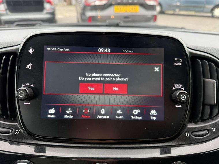 Apple car play/Android Auto, Cruise control, E-call, External temperature gauge, Power assist steering, Rear parking sensor, Speed limiter, Stop/start system, Trip computer, 4 speakers, 7" HD Touchscreen Radio, Bluetooth, USB and DAB, Rear speakers, 3rd brake light, Auto headlights, Body colour bumpers, Body coloured electrically adjustable door mirrors, Chrome plated exterior door handles, Dolcevita badge on fender, Dusk and rain sensors, Electric front windows, Fixed glass sunroof with sunblind, Front fog lights, Halogen headlamps, Heat insulated glass, Heated rear windows with wash wipe, LED daytime running lights, Rear side wing doors, Rear wiper, 1 passenger grab handle, 2 seat bench in second row, 50/50 split folding rear seats with height adjustable rear headrests, Air conditioning, Auxilliary 12V power socket, Chrome kit, Front headrests, Height adjustable drivers seat, Height adjustable steering wheel, Isofix child seat preparation, Single front passenger seat, Techno leather steering wheel with audio controls, 7 airbags - Driver, passenger, side, window and drivers knee airbags, ABS/EBD, ESC + ASR/MSR + HBA + Hill holder, Passenger airbag deactivation system, Traction control, Tyre pressure monitoring system, Automatic door locking, Immobiliser, Locking fuel filler cap, Remote central locking, 15" Alloy wheels,