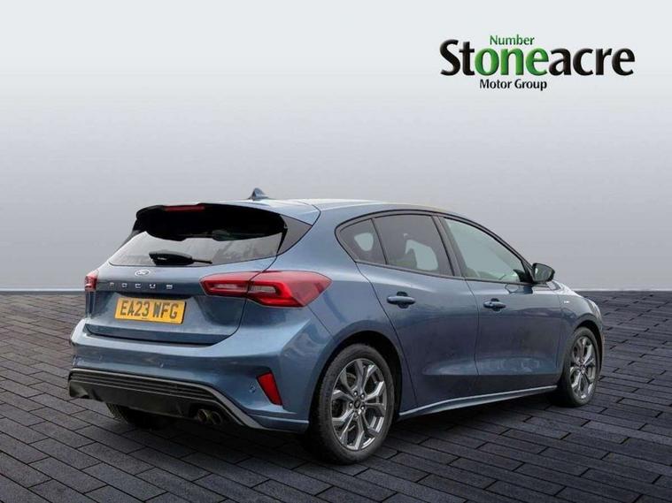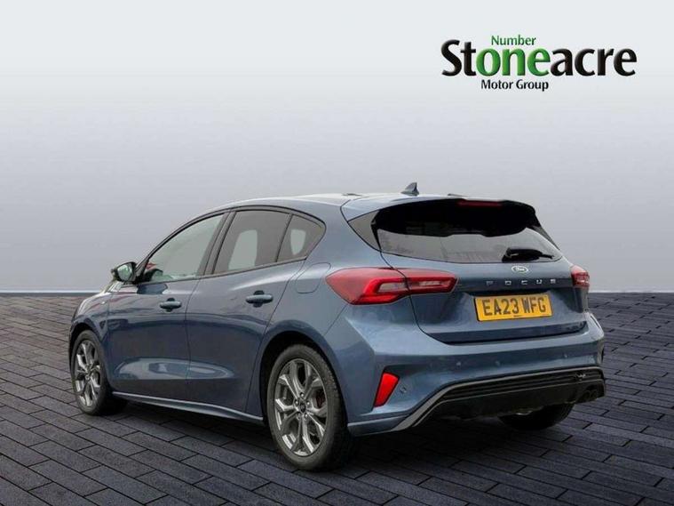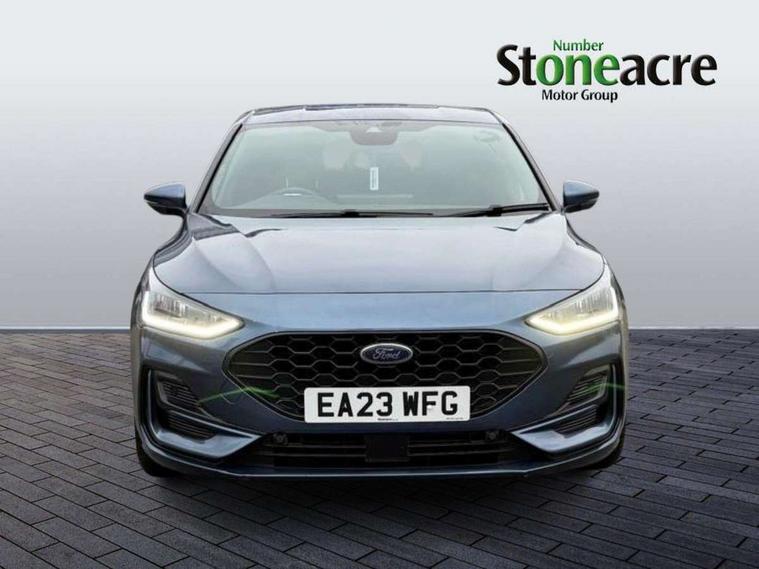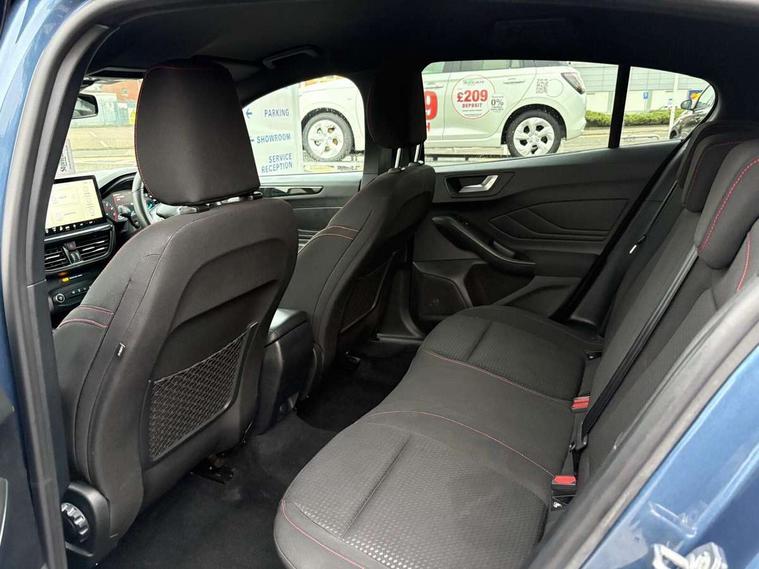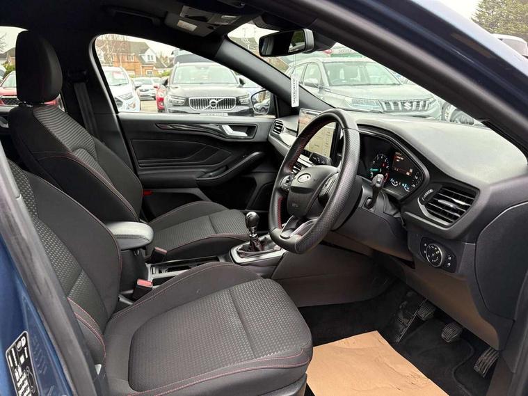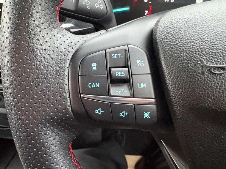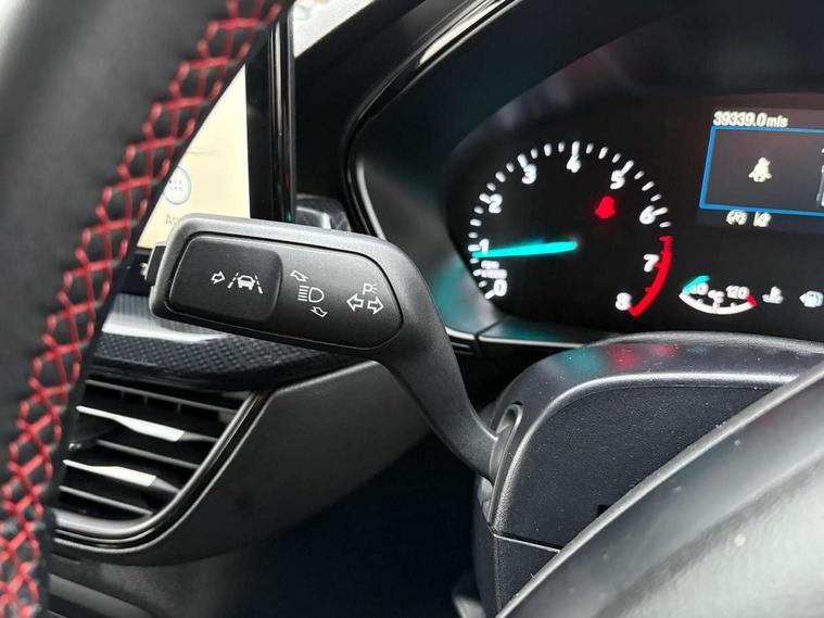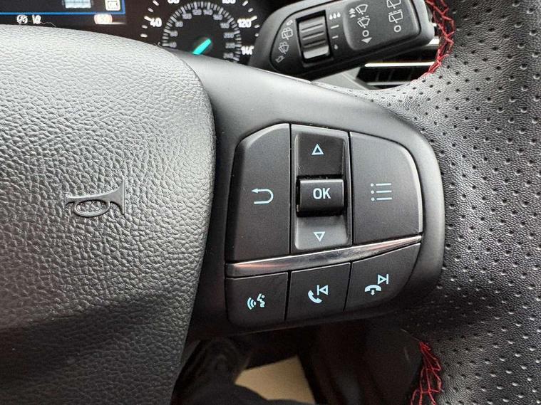4.2" Colour TFT Ice blue illumination analogue cluster with trip computer, Bluetooth system, Digital clock, Easy fuel capless refuelling system, Eco mode, Ford SYNC 4 Navigation with 13.2'' touchscreen, DAB radio, Emergency Assistance, Apple Carplay & Android Auto, 6 speakers & FordPass Connect, Lane keeping system - lane keeping alert and lane keeping aid, PAS, Rev counter, Selectable drive mode, Service interval indicator, Sports tuned suspension, 2 USB ports, Auto headlamps (on/off), Body coloured door handles, Electrically operated front and rear windows with one touch opening and closing, Electrically operated heated power fold door mirrors with puddle lamp with side indicators, Front variable intermittent wipers with electric wash, Full fixed LED headlamps, Heated rear window, LED daytime running lamp, LED rear lamps, LED third brake light, Polished twin tailpipe, Privacy glass, Quickclear heated windscreen, Rain sensor, Rear side wing doors, Tailgate wash/wipe, Unique ST-Line grille, full bodystyling kit, and large body coloured rear spoiler, 3 rear headrests, 3 seat bench in 2nd row, Cloth upholstery, Dual zone electronic air temperature control, Height adjustable front headrests, Isofix child seat preparation, Reach + rake adjustable steering column, Single front passenger seat, 3x3 point rear seatbelts, ABS+Electronic Brake force Distribution, Auto hold function, Driver airbag, EDL traction control, Electronic parking brake, Electronic stability control, Front and rear seatbelt reminder, Front inertia reel height adjustable seatbelts with pre-tensioners, Front passenger airbag, Front side airbags, Passenger airbag deactivate switch, Post collision braking, Pre collision assist with autonomous emergency braking and pedestrian/cyclist detection, Remote/power child rear door locks, Side curtain airbags, Three rear inertia reel lap/diagonal seatbelts, Tyre pressure monitoring system, Keyless entry and keyless start, MyKey system, Remote central locking & engine immobiliser, Thatcham alarm with power door dead locks, 17" 5 spoke Rock mettalic finish alloy wheels with mini spare wheel,