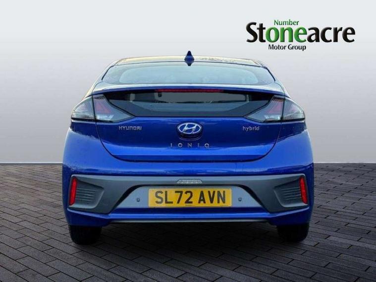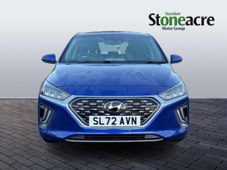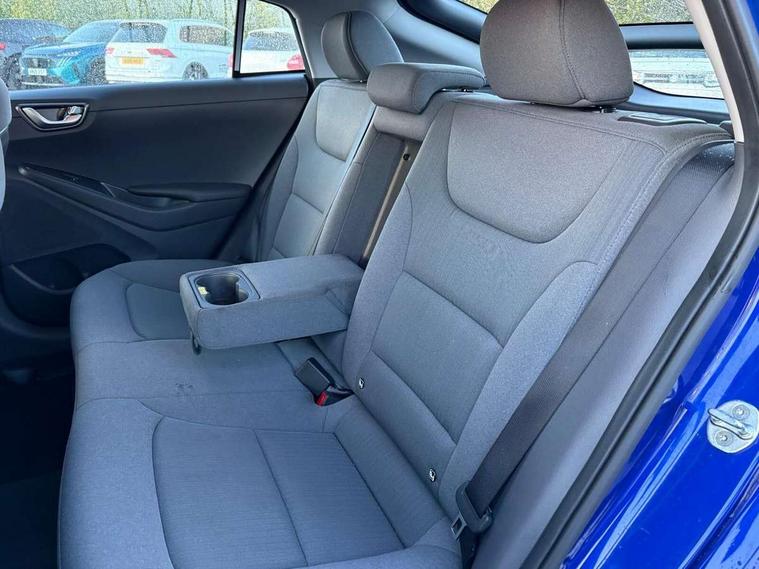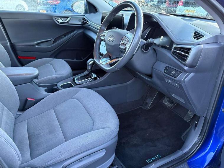 10.25" touchscreen satellite navigation includes traffic messaging channel, mapcare, live services and bluelink, Apple car play/Android Auto, Bluetooth system, Cruise control, Driver attention alert system, E-call, Eco driving assistant system (ECO DAS), Electric power steering with variable drive modes, Gear lever drive mode selector, Lane departure warning system with lane keep assist - LKAS, Parking Brake - Foot Brake, Parking system with rear camera and guidance system, Rear parking sensor, Rear view monitor, Roadside assistance, Supervision cluster with 7" high resolution TFT LCD, Voice recognition, Windscreen washer fluid sensor and warning indicator, Wireless phone charging pad, DAB Digital radio, Infinity sound system includes 1 centre, 2 tweeters, 2 front, 2 rear and 1 ext amp, Radio data system, Steering wheel audio, phone and cruise controls, USB and aux connection in front, Active air flap radiator grille, Auto dimming rear view mirror, Automatic headlights with dusk sensor, Body colour bumpers, Body colour door handles with chrome inserts, Body colour door mirrors, Bodyside mouldings, Chrome door scuff with ioniq logo, Chrome finish window surround, Chrome radiator grille, Door mirror puddle lights, Electric adjustable door mirrors, Electric front windows - anti trap + one touch, Electric heated door mirrors, Heated rear windscreen, High beam assist, LED daytime running lights, LED Headlights, LED indicators in door mirrors, LED rear fog light, Positioning Lights - LED, Power folding door mirrors, Rain sensor, Rear electric windows, Rear LED lights, Rear roof spoiler with integrated LED brake light, Rear side wing doors, Rear wiper, Solar glass with windscreen shade band, Tinted windows, Two tone rear bumper, Variable front intermittent wipers, 12V power outlets, 3 rear seats, 60/40 split folding rear seat, Centre console storage, Centre interior light, Chrome interior door handles, Cloth upholstery, Driver seat height adjust, Driver's electric adjustable lumbar support, Driver/passenger sunvisors with illuminated vanity mirrors, Dual zone climate control, Front centre armrest with storage compartment, Front cupholder, Front head restraints with vertical and horizontal adjustment, Front seat and rear pockets, Heated front seats, Heated steering wheel, Illuminated luggage compartment, Interior mood lighting, Leather wrapped steering wheel, Luggage net, Manual height adjustable front passenger seat, Map and reading lights, Paddle shifter, Rear centre console with air vents, Single front passenger seat, Sunglasses holder, USB - driver arm rest (charging only), Vertical adjustment rear head restraints, 3x3 point rear seatbelts, Airbags - front, front side, curtain and drivers knee airbags, Anti-lock brake system (ABS), Autonomous emergency braking, Electronic stability control, Front passenger airbag deactivation switch, Hill start assist control (HAC), Manual child lock in rear doors, Regenerative braking system, Traction control, Tyre pressure monitoring system with individual tyre pressure display, Deadlocks, Immobiliser, Keyless smart entry with push button start, Remote central locking, 15" Design B alloy wheels, Tyre repair kit,