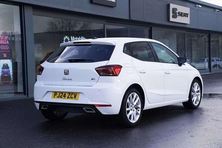'Lights On' Reminder warning buzzer, 8" Digital cockpit, 9.2" touchscreen navigation system with type C USB socket, Voice control and DAB/AM/FM radio, Auto start and stop system, Bluetooth audio streaming with handsfree system, Digital clock, E-call, Full link smartphone integration with mirror link, wireless apple carplay, Google android auto + USB Type C cable for apple and android devices, Lane assist, Low fuel warning light, Outside temperature gauge, Power Steering, Rear parking sensor, Seat connect plus with safety, service, remote and online, SEAT logo boot release, Speed limiter, Traffic sign recognition, Trip computer, Sports suspension, Auxiliary input socket, Radio/MP3 player, SD card slot, Steering wheel mounted controls, Anti theft roof antenna, Auto dimming rear view mirror, Automatic rain sensing wipers, Black door mirror caps, Body colour bumpers, Body colour door handles, Brilliant black window surrounds, Dark tinted rear windows, Electric adjustable/heated/folding door mirrors, Electric front windows, Electric headlight adjustment, Electric rear windows, Front/rear fog lights, FULL LED automatic headlights with dynamic headlight range control, coming and leaving home, LED daytime running lights, LED tail lights, Rear roof spoiler with FR twin exhausts, Rear side wing doors, Rear wiper, Third brake light, 3 seat bench in 2nd row, 60/40 split folding rear seat, Ambient interior lighting, Chrome detailing and black headlining, Cloth upholstery, Dual zone climate control with combination filter, Front courtesy lights, Front cupholders x 2, Front reading lights, Gear shift indicator, Glovebox, Height adjustable front and rear headrests (five), Height adjustable front seats, Height/reach adjust steering wheel, Illuminated air vent surrounds, Illuminated boot, Instrument lighting with brightness control, Isofix, Leather multifunction flat bottomed sports steering wheel, Passenger sunvisor, Single front passenger seat, Sports seats, Sunvisors with mirror and driver side card holder, Safety and driving pack (S) - Ibiza, 3 point seatbelts on all 3 rear seats, ABS, Active front headrests, Child locks on rear doors, Electronic stability control, Energy recovery system, Front driver and passenger side airbags with curtain airbag and front passenger airbag deactivation, Hill hold control, Multi-Collision braking, Seat belt reminder for front and rear seats, Tiredness recognition system, Tyre pressure monitoring system, Electronic engine immobiliser, Locking wheel bolts, Perimeter alarm and interior monitoring inc.backup horn, tow away protection and electronic engine immobiliser, Remote central locking + deadlocks, 17" Alloy wheels in Brilliant silver,