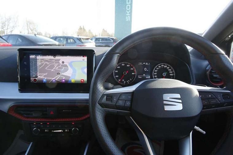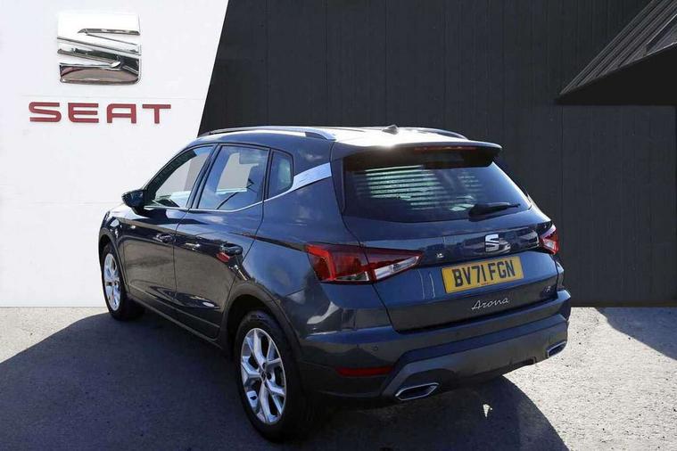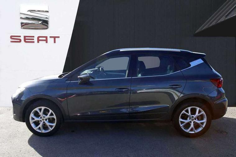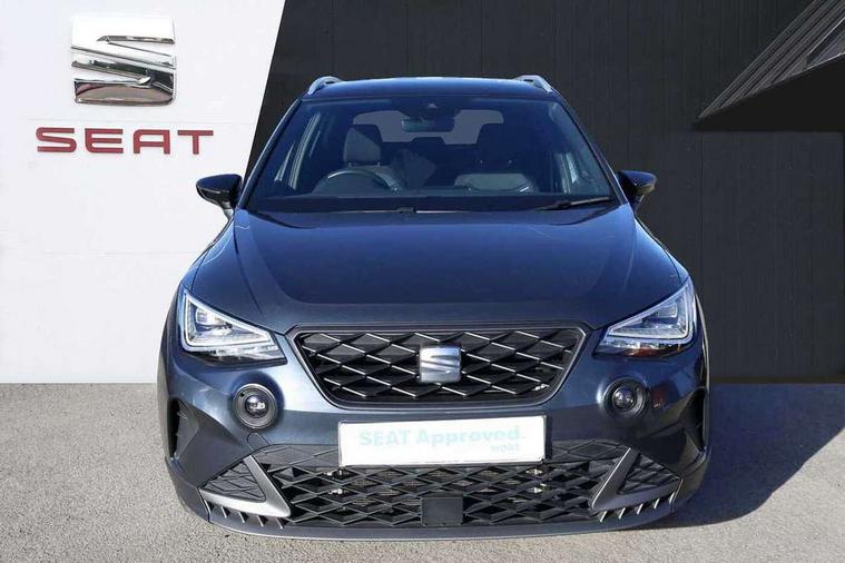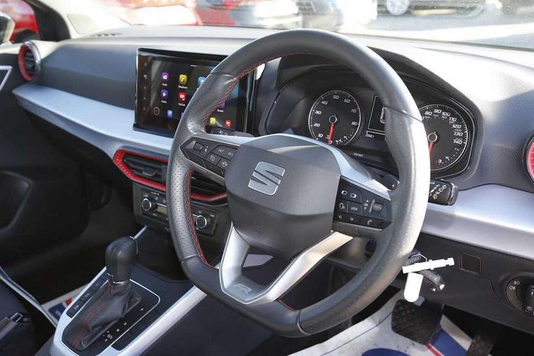 'Lights On' Reminder warning buzzer, Digital clock, E-call, Electric speed sensitive power steering, Full Link Smartphone Integration with Mirror Link, Apple Car Play, Google Android Auto with USB Type C cable for Apple and Android compatibility, Lane keeping system, Low fuel warning light, Outside temperature display, Rear parking sensor, RPM counter, Seat connect with safety, service, remote and online, SEAT Drive profile - Four different models normal-sport-eco-individual, steering response, throttle response and gear shifts mode, Trip computer, Bluetooth interface for hands free and audio streaming, DAB digital radio and AM/FM radio, Steering wheel mounted audio controls, Anti theft roof antenna, Auto dimming interior rear view mirror, Automatic activation of hazard warning lights, Body coloured bumpers, Body coloured door handle inserts, Chrome roof rails and window surrounds, Chrome window trim, Dark tinted rear windows, Electric front/rear windows, Electrically adjustable, heated and folding door mirrors, FULL LED automatic headlights with dynamic headlight range control, coming and leaving home, LED daytime running lights, LED rear tail lights and licence plate lights, Protective side mouldings, Rain sensing wipers, Rear side wing doors, Rear spoiler, Rear window wash/wipe, Roof colour door mirrors, Third brake light, Twin exhaust pipe styling hidden exhaust pipe, Visible VIN plate, Windshield wiper with intermittent control and potentiometer, 2 cupholders, 3 seat bench in 2nd row, 60/40 split folding rear seat, Aircare filter, Black interior roof, Cloth upholstery, Daring red Illuminated coloured air vent, Double boot floor, Driver sunvisor with covered mirror + card holder, Dual zone climate control, Front courtesy light with 2x front and 2x rear reading lights, Front sport seats, Gear shift indicator, Height adjustable front seats, Height/reach adjustable steering column, Illuminated boot, Instrument lighting with brightness control, Interior ambient lighting, Interior light in footwell, central console and door panel, ISOFIX points in outer rear seats with top tether anchorage points, Passenger sunvisor with vanity mirror, Perforated flat bottomed leather steering wheel/gear knob/handbrake with red stitching and FR logo, Single front passenger seat, Steering wheel mounted gearshift paddles, Two front and three rear height adjustable headrests, Connectivity pack plus - Arona, Interior chrome pack - Arona, 3 point seatbelts on all rear seats, ABS, Active front headrests, Child locks on rear doors, Driver and front passenger airbags with front passenger airbag de activation, front side and curtain airbags, Electronic stability control, Emergency Brake Assist (EBA) and front assist, Front and rear seatbelt reminder, Hill hold control, Multi-Collision braking, Tiredness recognition system, Traction control, Tyre pressure monitoring system, Alarm with back-up horn, Electronic engine immobiliser, Locking wheel bolts, Remote central locking + deadlocks, Tow away protection, Titan black dashboard, 17" Dynamic alloy wheels,