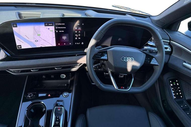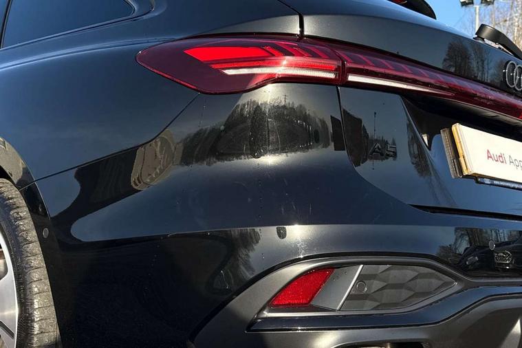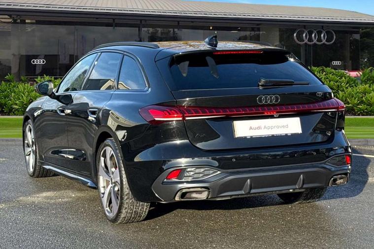 Adaptive cruise control, Advanced driver attention and fatigue montior, Audi application store, Audi assistant, Audi connect emergency call and service, Audi drive select, Audi virtual cockpit plus with 11.9" OLED colour display, Automatic start/stop system with coasting functionality, Camera based traffic sign recognition, Intersection assist, Lane change assistant with exit warning system, rear cross traffic alert and rear turn assist, Lane departure warning with emergency assist, MMI 10.9" front passenger touch display, MMI navigation plus with high resolution 14.5" OLED touchscreen colour display, Park assist plus, Parking system plus with 360 display, Progressive steering with servotronic, Smartphone interface, Swerve assist and turn assist, Top view camera, Traffic sign based speed limiter, Sports suspension lowered by 20mm, 2 USB-C ports in both the front and rear, Audi sound system impressive sound with 8 loudspeakers including centre speaker and subwoofer, 6-channel amplifier with a total output of 180 watts, DAB digital radio reception, Smartphone compartment with wireless charging, Aluminium window trims, Auto dimming rear view mirror, Black door handles, Black roof rails, Dark chrome-plated tailpipe trims, Door mirrors - electrically adjustable, heated, folding and auto dimming on both sides, Front and rear electric windows, Front door sill trims with aluminium inlays, illuminated with 'S' logo, Headlight cleaning system, High beam assist, LED daytime running lights, LED rear lights pro incl. dynamic rear indicators and illuminated light strip with animated coming and leaving home function, LED third brake light, Matrix LED headlights with eight light signatures selectable via the MMI or the myAudi app, Privacy glass, Rear and side windows with heat insulating glass, Rear side wing doors, Rear wash/wipe, S Line badges on the front wings, S line bumpers, radiator grille and diffuser in phantom black and diffuser insert in matt anthracite, White rhombus logo projection light in exterior mirrors, Windscreen with acoustic glazing, 3 rear headrests, 3 seat rear bench, 3 spoke leather steering wheel with multi-function buttons with touch control, flattened on top and bottom, with S badging and contrast stitching, 3-zone automatic climate control, 40:20:40 split folding rear seat bench with centre armrest and cup holders, Comfort front centre armrest, Electrically adjustable front seats, Front and rear floor mats, Front sport seats with integrated headrest and S embossed logo, Headlining in black cloth, Heated front seats, i-Size child seat mounting on the front passenger side and outer rear seats, i-Size and top tether on the outer rear seats, Luggage compartment lid, electrically opening and closing, Manual steering column height and depth adjustment, Memory function for driver seat, Single front passenger seat, Stainless steel pedals and footrest, Steering wheel grips in perforated leather and shift paddles, Ambient lighting package plus - A5, Black styling package plus - A5, 3x3 point rear seat belts, Acoustic vehicle alerting system, Convenience key with safelock, Driver airbag, Electric child safety locks, First aid kit with warning triangle and vests, Front emergency brake assist, Front passenger airbag, Front passenger airbag deactivation, Hill hold assist, Occupant detection in rear seat area, Proactive passenger protection system for front, sides and rear, Red brake calipers, Seat belt monitoring with rear seat occupant reminder, Side airbags in front and rear with head airbag system and front interaction airbag, Tyre pressure loss indicator, Anti theft alarm, Anti-theft wheel bolts, Keyless Go, Accent surfaces and control buttons in gloss black, Black dashboard with contrast stitching, Softwrap in Dinamica with contrast stitching, Upper and lower interior elements in dinamica microfiber, 20" 5 arm fold design Audi sport alloy wheels in silk matt grey and gloss turned finish, Tyre repair kit,