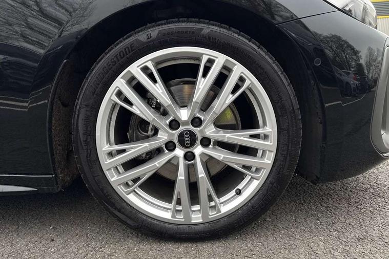 Adaptive cruise control, Advanced driver attention and fatigue montior, Audi application store, Audi assistant, Audi connect emergency call and service, Audi drive select, Audi smartphone interface, Audi virtual cockpit plus with 11.9" OLED colour display, Automatic start/stop system with coasting functionality, Camera based traffic sign recognition, Intersection assist, Lane departure warning, MMI navigation plus with high resolution 14.5" OLED touchscreen colour display, Park assist plus, Parking system plus with 360 display, Progressive steering with servotronic, Rear view camera, Swerve assist and turn assist, Traffic sign based speed limiter, Sports suspension lowered by 20mm, 2 USB-C ports in both the front and rear, Audi sound system impressive sound with 10 loudspeakers including centre speaker and subwoofer, 6-channel amplifier with a total output of 180 watts, DAB digital radio reception, Smartphone compartment with wireless charging, Aluminium roof rails, Aluminium window trims, Auto dimming rear view mirror, Body colour door mirrors, Door mirrors - electrically adjustable, heated, folding and auto dimming on both sides, Front and rear electric windows, Front door sill trims with aluminium inlays, illuminated with 'S' logo, High beam assist, LED headlights Plus incl. digital daytime running lights, turning light, all-weather light, motorway light, manouevring light and intersection light, LED rear lights pro incl. dynamic rear indicators and illuminated light strip with animated coming and leaving home function, LED third brake light, Privacy glass, Rear and side windows with heat insulating glass, Rear side wing doors, Rear wash/wipe, S Line badges on the front wings, S line bumpers, radiator grille and diffuser in phantom black and diffuser insert in matt anthracite, White rhombus logo projection light in exterior mirrors, Windscreen with acoustic glazing, 3 rear headrests, 3 seat rear bench, 3 spoke leather steering wheel with multi-function buttons with touch control, flattened on top and bottom, with S badging and contrast stitching, 3-zone automatic climate control, 40:20:40 split folding rear seat bench with centre armrest and cup holders, Comfort front centre armrest, Front and rear floor mats, Front seats with manual adjustment for position and 4-way electric lumbar support, Front sport seats with integrated headrest and S embossed logo, Headlining in black cloth, Heated front seats, i-Size child seat mounting on the front passenger side and outer rear seats, i-Size and top tether on the outer rear seats, Luggage compartment lid, electrically opening and closing, Manual steering column height and depth adjustment, Single front passenger seat, Stainless steel pedals and footrest, Steering wheel grips in perforated leather and shift paddles, Ambient lighting package plus - A5, 3x3 point rear seat belts, Driver airbag, Electric child safety locks, First aid kit with warning triangle and vests, Front emergency brake assist, Front passenger airbag, Front passenger airbag deactivation, Front side airbags with head airbag system and front interaction airbag, Hill hold assist, Seat belt monitoring with rear seat occupant reminder, Tyre pressure loss indicator, Anti theft alarm, Anti-theft wheel bolts, Keyless Go, Accent surfaces and control buttons in gloss black, Black dashboard with contrast stitching, Inlays in matt brushed aluminium with linear embossing, anthracite, Softwrap in leatherette with contrast stitching, Upper and lower interior elements in leatherette, Tyre repair kit,