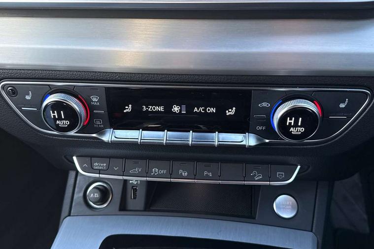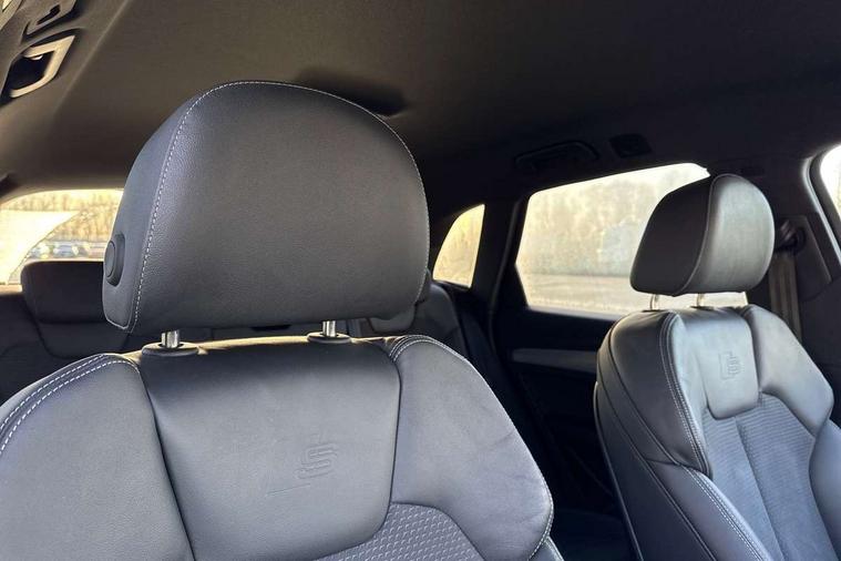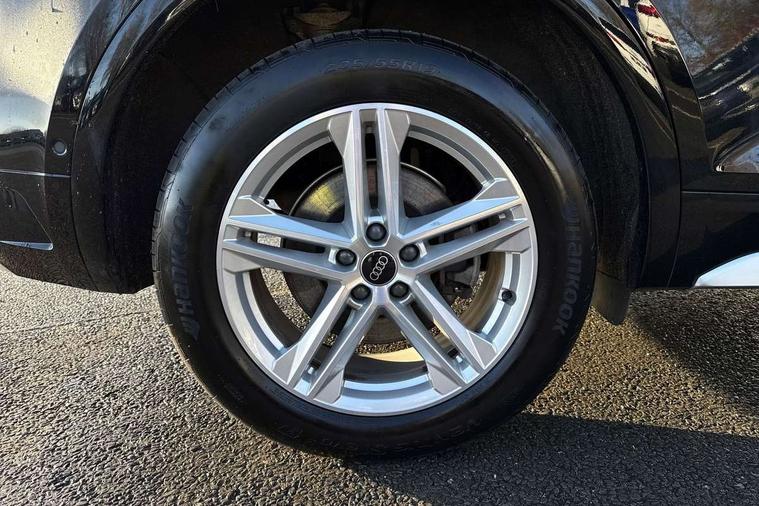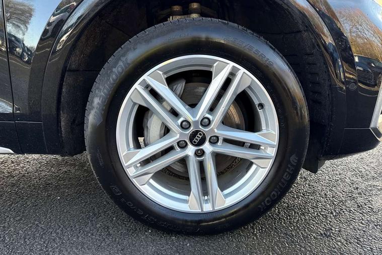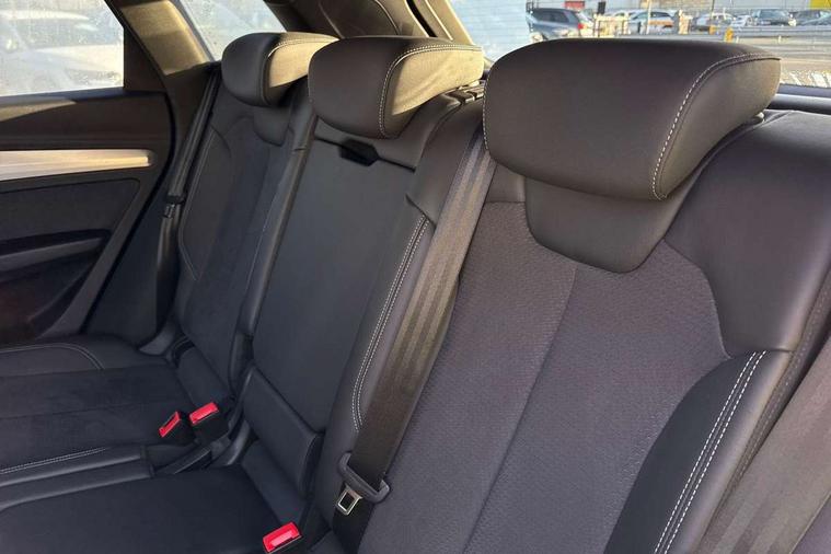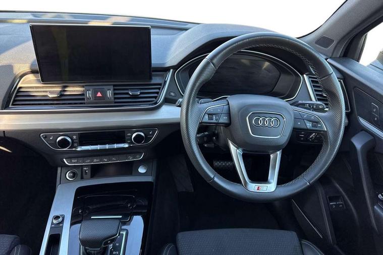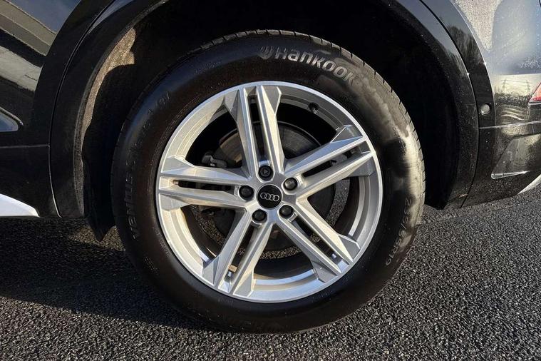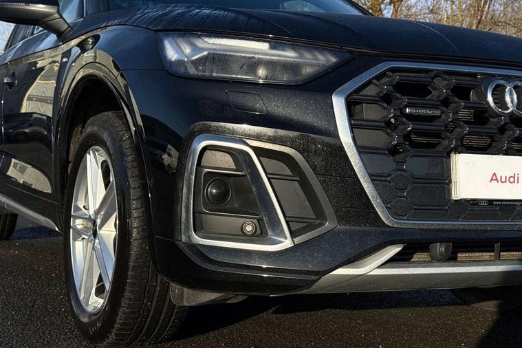 Acoustic front and rear parking sensor, Audi connect safety and service (e-call), Audi drive select, Audi virtual cockpit with 12.3" screen with specific display, Audi wireless smartphone interface, Automatic start-stop system with coasting functionality and efficiency programme, Bluetooth interface, Camera based traffic sign recognition, Electro - mechanical power assisted steering, Lane departure warning, MMI navigation plus with 10.1" touch screen, Power tailgate, Reversing camera, Service interval indicator, Voice control system with Audi hotword activation "Hey Audi", 3 pin 10 amp domestic charging cable, 7.4 kW onboard charger, Dynamic suspension, Industrial connector CEE 32A, 230V, Quattro on demand, Type 2 mode 3 22kW 32 amp charging cable, Type 2 socket for AC charging, 8 loudspeakers, DAB Digital radio, Acoustic windscreen, Aluminium roof rails, Auto dimming door mirrors, Auto dimming frameless rear view mirror, Automatic headlight adjustment, Automatic headlights and windscreen wipers, Body colour bumpers, Body colour door mirrors, Body colour rear diffuser with matt aluminium silver surrounds, Body colour underbody protection, Chrome plated exhaust trims, Daytime running lights, Door sills in Selenite silver, Electric adjustable/heated/folding door mirrors, Front air inlet surrounds in aluminium, Front and rear electric windows, Front radiator grille in honeycomb design, LED 3rd brake light, LED headlights and LED tail lights, Loading edge protection in stainless steel, Lower bumpers painted in contrast Manhattan grey, Rear chrome trim strip below lights, Rear privacy glass and rear side windows, Rear side wing doors, Rear wiper, Roof bars, S Line badges on the front wing panels, S Line front and rear bumpers, S Line rear spoiler, S Line side skirts, 2 x USB charging port with aux input socket, 3 rear headrests, 3 seater rear seat bench, 3 spoke leather multifunction steering wheel with S badging perforated leather grips, Black cloth headlining, Comfort front centre armrest, Contrast stitching on seats, steering wheel and gear lever gaiter, Deluxe 3 zone electronic climate control, Front head restraints, Front sport seats with S embossed logo, Front/rear floor mats, Gear lever in black leather, Heated front seats, Height/reach adjustable steering column, Illuminated door sill trims with S logo, Luggage compartment cover, Manual seat adjustment with 4-way electric lumbar support, Rear seat bench plus-adjust for forwards/backwards position/backrest angle, load through hatch and remote backrest release, Single front passenger seat, Sunvisors with vanity mirrors, Tool kit, Top surface of the rear centre armrest in artificial leather, High gloss pack - Q5, LED interior light pack - Q5, 3 point seatbelts on all seats, 6 airbags - Driver, front passenger, curtain and side airbags, Attention and drowsiness assist, Electrically operated child locks on rear doors, Electromechanical parking brake, Electronic stabilisation control including ABS, ASR and EDL, First aid kit with warning triangle and vests, Front passenger airbag deactivation, Hill descent control, Hill hold assist, ISOFIX child seat mounting for front passenger seat and ISOFIX child seat mounting with Top Tether for outer rear seats, Multi collision brake assist, Pop-up bonnet for pedestrian protection, Pre sense city, Seatbelt monitoring, Tyre pressure warning, Anti theft alarm, Anti-theft wheel bolts, Remote central locking, Remote control key with SAFELOCK and keyless go, Air vents inserts and centre console in gloss black, Matt brushed aluminium inlays, Tyre repair kit,