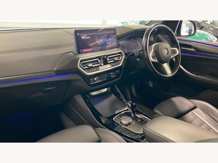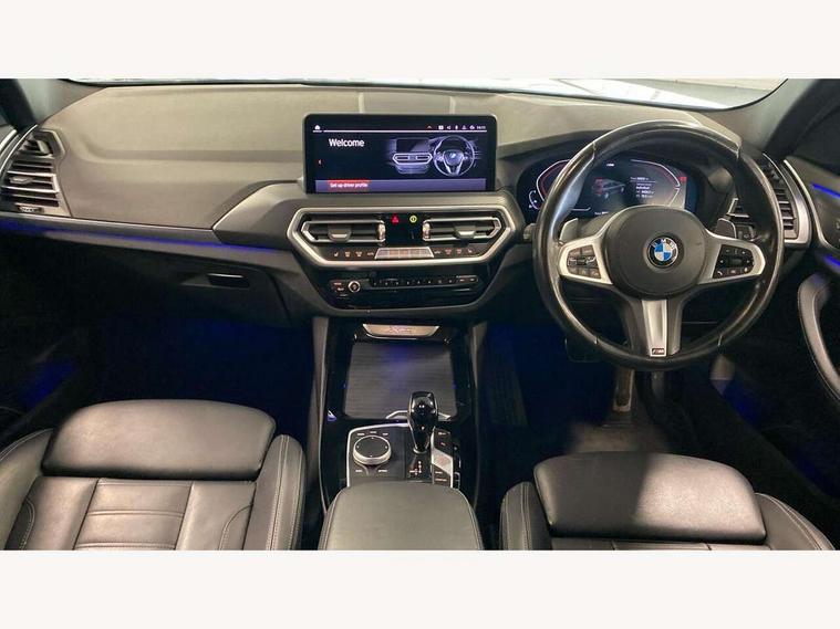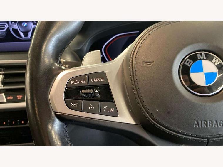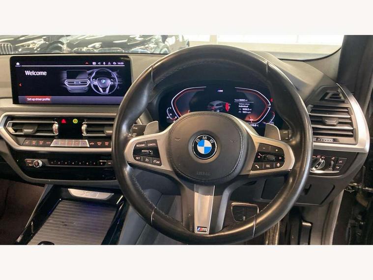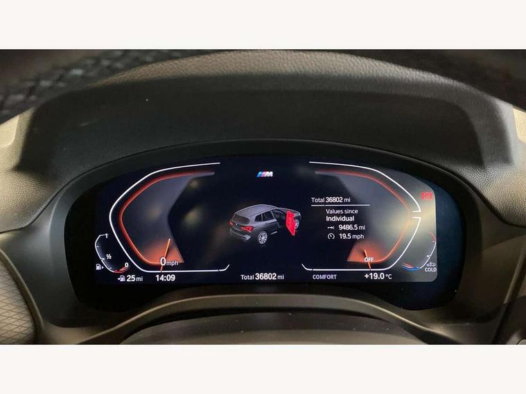 Active Guard, Attentiveness assist, Bluetooth hands free telephone connection with USB audio interface + audio streaming, BMW Live Cockpit Professional nav system including 12.3" instrument display + 12.3 high resolution control display, BMW Online services, BMW Teleservices, Brake pad wear indicator in front and rear, Check Control warning system for monitoring of lights and door/luggage compartment open warning, Condition based service - BMW service history, electronic service booklet, integrated owner's handbook, Connected drive services, Cruise control with brake function + speed limiter, Electric boot lid, Front/rear Parking distance control, iDrive Controller with 8 favourite buttons, Instrument cluster with speedometer with mph readout, tachometer, fuel gauge and oil temperature gauge, Lights on warning by audio warning signal when ignition is switched off, Oil sensor for level and grade, warning by check control system, On board computer - average speed+fuel consumption, service interval, clock/date, odometer/trip meter, outside temperature display and ice warning, Optimum shift indicator, Personal Profile - automatic lock when driving away selectable, Stop/start system, Variable sports power steering, Automatic transmission with gearshift paddles, Drive performance control with ECO PRO comfort + sport mode, Incorrect fuelling protection, M sport suspension, Multi-link rear suspension, Performance Control, 6 speakers, BMW professional radio/CD/MP3, DAB tuner, Acoustic glazing, Automatic windscreen wipers and automatic headlight, Black finish on B pillars, Body colour door handles, Body colour electric adjust heated aspherical door mirrors, Body colour roof mouldings, Body coloured bumpers, Direction indicator, side repeaters, integrated in exterior mirrors, Dynamic brake lights, Exhaust tailpipes - dual, round, split left and right with chrome finisher, Fingertip control / anti-trap function on electric window, Folding wing mirrors with auto dimming, Follow me home headlights, Front and rear bumper system with replaceable deformation elements, Front and rear electric windows, Gloss chrome tailpipes finishers, Green tinted heat insulating glass, Heated windscreen washer jets, High beam assistant, High gloss black shadow line roof rails, High gloss shadowline exterior trim in decorative moulding side frame/recess cover/guide rail/B, C pillars/mirror frame and triangle with mirror base, High level 3rd brake light incorporating LED Technology, Interior rear view electrochromatic mirror with automatic anti dazzle function, LED tail lights, Lightweight engineering, M aerodynamic bodystyling, Model designation, Rear side wing doors, Rear wing door, Rear wiper, Shark fin antenna, Side exterior M designation badges, Visible VIN plate, Welcome lighting, Windscreen wipers with adjustable interval, 12V power socket in front centre console, 3 rear headrests, 3 zone automatic air conditioning, 4 lashing points to secure luggage, 40:20:40 split folding rear seat with loading system, 5 seats, Ambient lighting, Anthracite headlining, Automatic interior light when door is opened/ignition switched off or via remote key, Foldable storage floor with compartment, Four grab handles integrated in roof lining, Front and rear bottle holders integrated into door trim storage compartments, Front and rear side armrests integrated into door trim, Front centre armrest with storage compartment, Front footwell lights, Front head restraints, Front sports seats, Front/rear courtesy lights with soft on/off dimming, Front/rear reading lights, Heated front seats, Isofix rear child seat preparation, Leather gear knob, Luggage area underfloor compartment, Luggage compartment lighting, M sport leather steering wheel, Multifunction steering wheel, Parcel shelf removeable and storable under boot floor, Reach and rake adjustable steering column, Rear centre armrest with 2 cupholders, Removable / retractable luggage cover, Seat backrest width adjustment, Slope adjustable rear seats, Storage compartment in rear centre console and front/rear door trims, Sun visors with vanity mirrors and ticket pocket, Toolkit located in luggage compartment, Two front cupholders with removable oddments tray/lid, Vernasca leather upholstery, Connected pro pack - X3, Driving assistant pack - X3, ADB - Automatic Differential Brake, Anti-lock braking system (ABS) with brake assist, Automatic Stability Control (ASC), Battery safety cut-off, BMW emergency call, Brake drying, Brake energy regeneration, Braking pre-tensioning, Child locks on rear doors, Cornering brake control (CBC), Crash Sensor - activation of central locking release, hazard warning light and interior lighting, Deactivation of fuel pump in the event of a crash, Driver and front passenger front and side airbags with passenger deactivation and ITS front and rear head airbags, DSC+, Dynamic brake control, Dynamic Traction Control - DTC, Electromechanical parking brake, Hill descent control, Hill start assist, Seatbelt security check for front seats, Side impact protection, Three point seatbelts to all seats with front and outer rear pyrotechnic belt tensioners and seat belt force limiters, Two tone horn, Tyre pressure sensor, Ventilated front and rear disc brakes, Warning triangle and first aid kit, Central locking switch for all doors, fuel filler cap and luggage compartment, Electronic engine immobiliser, Locking wheel nuts, Remote control including two integrated key - one button for open/close all lockable content, windows and separate button for open luggage compartment, Remote control Thatcham category 1 alarm, Start/stop button with Comfort Go keyless engine start and auto Start/stop deactivation button, Low rolling resistance tyres,