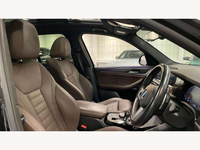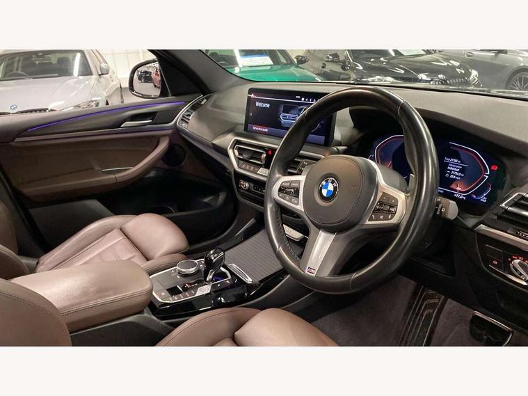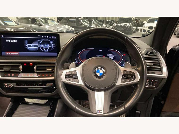 Active Guard, Attentiveness assist, BMW Live Cockpit Professional nav system including 12.3" instrument display + 12.3 high resolution control display, BMW Online services, BMW Teleservices, Brake pad wear indicator in front and rear, Check Control warning system for monitoring of lights and door/luggage compartment open warning, Condition based service - BMW service history, electronic service booklet, integrated owner's handbook, Connected drive services, Cruise control with brake function + speed limiter, Electric boot lid, Front/rear Parking distance control, iDrive Controller with 8 favourite buttons, Instrument cluster with speedometer with mph readout, tachometer, fuel gauge and oil temperature gauge, Lights on warning by audio warning signal when ignition is switched off, Oil sensor for level and grade, warning by check control system, On board computer - average speed+fuel consumption, service interval, clock/date, odometer/trip meter, outside temperature display and ice warning, Optimum shift indicator, Personal Profile - automatic lock when driving away selectable, Run flat indicator, Stop/start system, Variable sports power steering with drive performance control Sport+ mode, Automatic transmission with gearshift paddles, Incorrect fuelling protection, M sport suspension, Multi-link rear suspension, Performance Control, BMW professional radio/CD/MP3, DAB tuner, Acoustic glazing, Automatic windscreen wipers and automatic headlight, Black finish on B pillars, Body colour door handles, Body colour electric adjust heated aspherical door mirrors, Body colour roof mouldings, Body coloured bumpers, Direction indicator, side repeaters, integrated in exterior mirrors, Dynamic brake lights, Exhaust tailpipes - dual, round, split left and right with chrome finisher, Fingertip control / anti-trap function on electric window, Folding wing mirrors with auto dimming, Follow me home headlights, Front and rear bumper system with replaceable deformation elements, Front and rear electric windows, Gloss chrome tailpipes finishers, Green tinted heat insulating glass, Heated windscreen washer jets, High beam assistant, High gloss black shadow line roof rails, High gloss shadowline exterior trim in decorative moulding side frame/recess cover/guide rail/B, C pillars/mirror frame and triangle with mirror base, High level 3rd brake light incorporating LED Technology, Interior rear view electrochromatic mirror with automatic anti dazzle function, LED tail lights, Lightweight engineering, M aerodynamic bodystyling, M Sport entry door sill strips, Model designation, Rear side wing doors, Rear wing door, Rear wiper, Shark fin antenna, Side exterior M designation badges, Visible VIN plate, Welcome lighting, Windscreen wipers with adjustable interval, 12V power socket in front centre console, 3 rear headrests, 3 seat bench in 2nd row, 3 zone automatic air conditioning, 4 lashing points to secure luggage, 40:20:40 split folding rear seat with loading system, Ambient lighting, Anthracite headlining, Automatic interior light when door is opened/ignition switched off or via remote key, Driver seat backrest width adjustment, Floor mats in velour, Foldable storage floor with compartment, Four grab handles integrated in roof lining, Front and rear bottle holders integrated into door trim storage compartments, Front and rear side armrests integrated into door trim, Front centre armrest with storage compartment, Front footwell lights, Front head restraints, Front passenger seat, Front sports seats, Front/rear courtesy lights with soft on/off dimming, Front/rear reading lights, Heated front seats, Isofix rear child seat preparation, Leather gear knob, Luggage area underfloor compartment, Luggage compartment lighting, M sport leather steering wheel, Multifunction steering wheel, Parcel shelf removeable and storable under boot floor, Reach and rake adjustable steering column, Rear centre armrest with 2 cupholders, Removable / retractable luggage cover, Slope adjustable rear seats, Storage compartment in rear centre console and front/rear door trims, Sun visors with vanity mirrors and ticket pocket, Toolkit located in luggage compartment, Two front cupholders with removable oddments tray/lid, Vernasca leather upholstery, Connected pro pack - X3, Driving assistant pack - X3, ADB - Automatic Differential Brake, Anti-lock braking system (ABS) with brake assist, Automatic Stability Control (ASC), Battery safety cut-off, BMW emergency call, Brake drying, Brake energy regeneration, Braking pre-tensioning, Child locks on rear doors, Cornering brake control (CBC), Crash Sensor - activation of central locking release, hazard warning light and interior lighting, Deactivation of fuel pump in the event of a crash, Driver and front passenger front and side airbags with passenger deactivation and ITS front and rear head airbags, DSC+, Dynamic brake control, Dynamic Traction Control - DTC, Electromechanical parking brake, Hill descent control, Hill start assist, Seatbelt security check for front seats, Side impact protection, Three point seatbelts to all seats with front and outer rear pyrotechnic belt tensioners and seat belt force limiters, Two tone horn, Tyre pressure sensor, Ventilated front and rear disc brakes, Warning triangle and first aid kit, Central locking switch for all doors, fuel filler cap and luggage compartment, Electronic engine immobiliser, Locking wheel nuts, Remote control including two integrated key - one button for open/close all lockable content, windows and separate button for open luggage compartment, Remote control Thatcham category 1 alarm, Start/stop button with Comfort Go keyless engine start and auto Start/stop deactivation button, Low rolling resistance tyres,