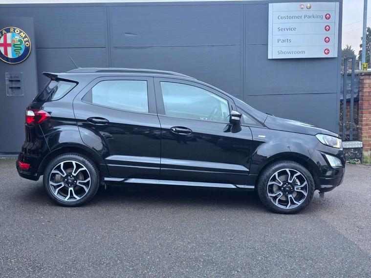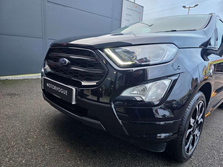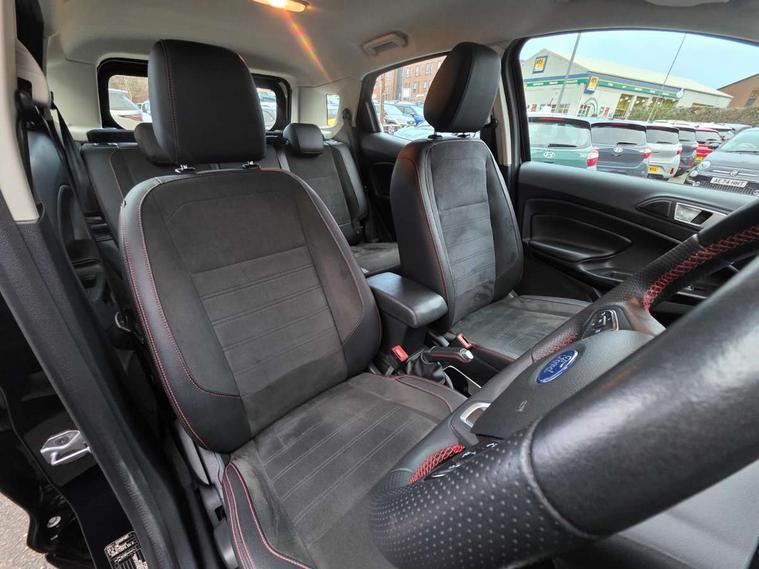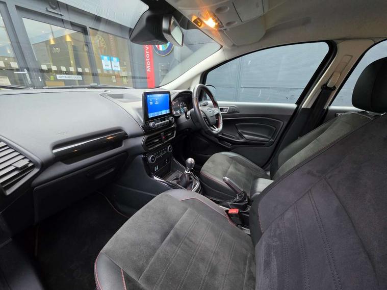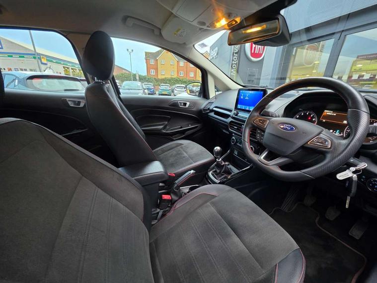 Cruise control with Intelligent speed assist, Easy fuel capless refuelling system, PAS, Rear view camera, Traffic sign recognition, Trip computer, Sports suspension, Steering wheel mounted audio controls, Auto dimming rear view mirror, Automatic front wipers, Automatic headlights, Black roof rails, Body colour door handles, Body coloured bumpers, Chrome lower window surround, Electrically adjustable and heated door mirrors, Front fog lights, Headlight levelling control, Large rear spoiler, LED day running lights, LED third brake light, Power front and rear windows, Puddle lights, Quick-clear heated windscreen, Rear wiper, ST Line body styling kit - Black headlamp bezel, front and rear sport bumpers, body colour lower door claddings, ST-Line front grille, 12V socket in front and rear, 60/40 split rear seats, Ambient lighting, Centre console with sliding front armrest, Cooled glovebox, Courtesy lights with map reading light, Driver height adjust, Driver seat height/lumbar adjust, Driver's side glovebox, Driver/passenger sunvisors and lidded vanity mirrors, Folding grab handles, Front head restraints, Front seat back map pockets, Illuminated glovebox, Illuminated luggage compartment, Isofix system on outer rear seats, Luggage compartment carpet, Neosuede/Partial sensico leather upholstery, Overhead console with sunglasses holder, Rake adjustable rear seats, Reach + rake adjustable steering column, Rear headrests, Sensico trimmed steering wheel, handbrake and gearshift gaiter with red stitching, ST-Line Front floor mats with red stitching, Stainless steel sports pedals, Storage drawers under front seats, Tie down hooks, Variable boot floor, 3x3 point rear seatbelts, ABS, Autonomous emergency braking, Child locks on rear doors, Curtain airbags, Driver airbag, Drivers knee airbag, Electronic Stability Programme with hill launch assist, Front passenger airbag deactivation, Front side airbags, Passenger airbag, Pre collision assist system with AEB, Seatbelt reminder for driver and front passenger, Traction control, Tyre pressure monitoring system, Immobiliser, MyKey system, Remote central locking, Thatcham 1 volume sensing alarm, Low rolling resistance tyres, Tyre inflation kit,
