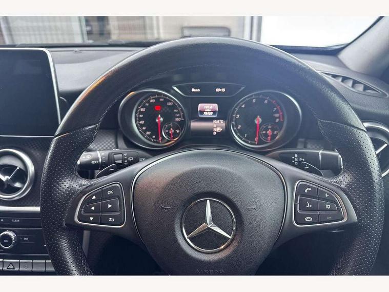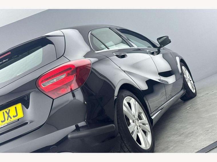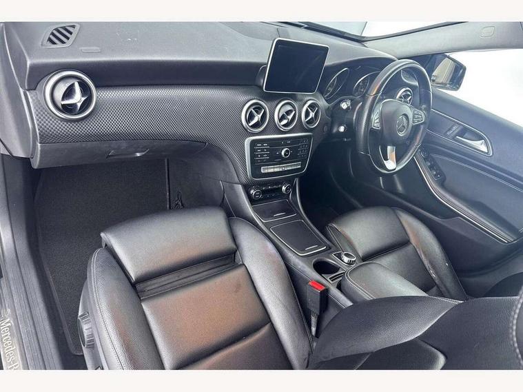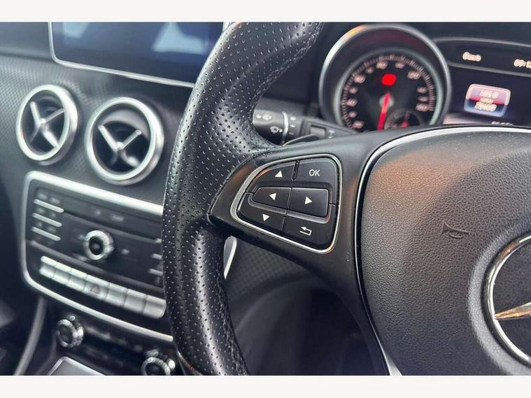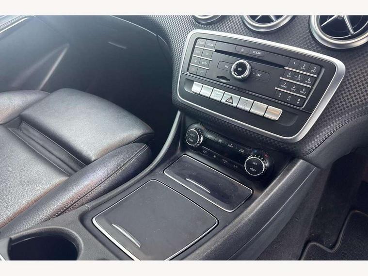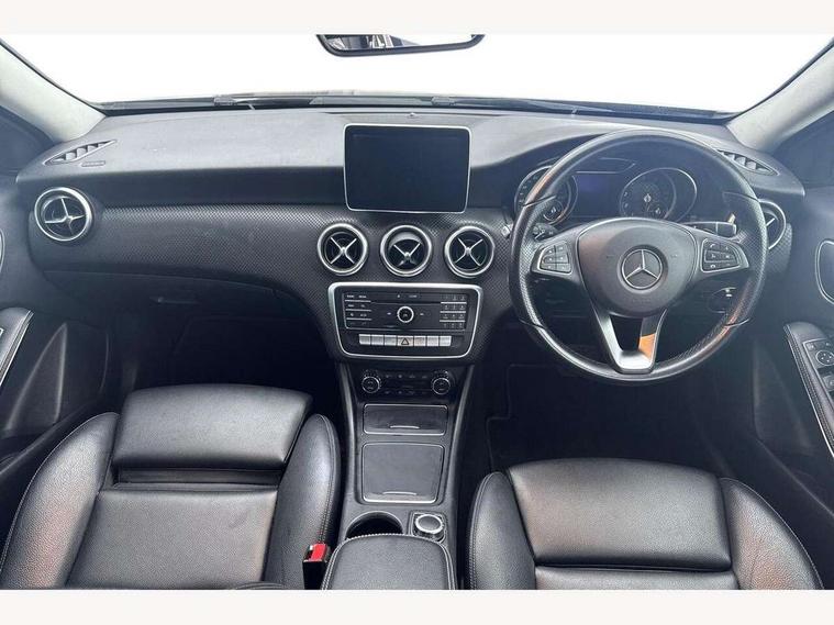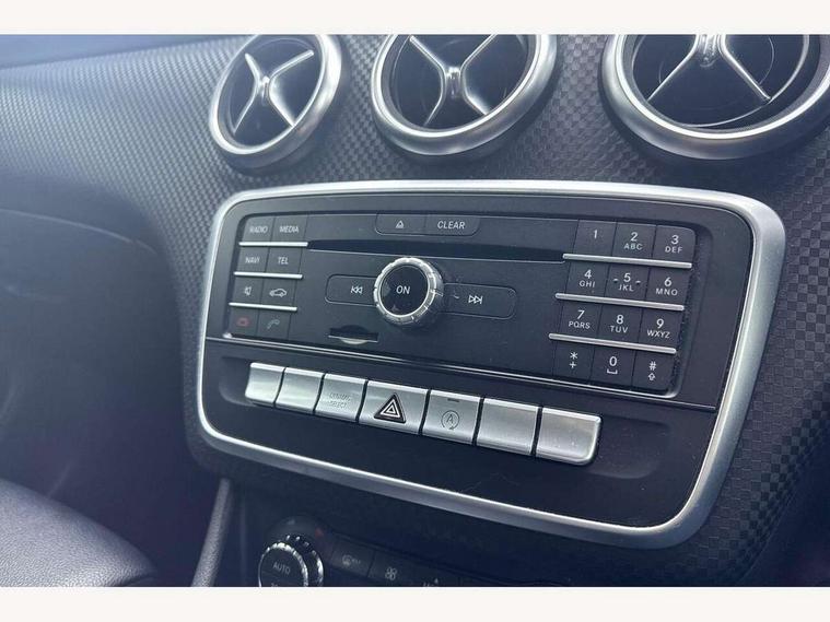 8" colour display screen, Attention assist, Bluetooth interface for hands free telephone, Bulb failure indicator, Collision prevention assist plus, DYNAMIC SELECT with a choice of driving modes (ECO, Comfort, Sport, Sport+ and Individual), External temperature gauge, Low fluid warning light, Reversing camera, Service indicator (ASSYST PLUS), Speed sensitive parameter assisted steering, Trip computer, Comfort suspension, 6 speakers, Media interface, Mercedes Audio 20 radio/single CD + telephone keypad, SD card slot, USB port, Adaptive brake lights, Body colour bumpers, Body colour door handles, Body colour side skirt, Body coloured door mirrors, Chrome beltline trim, Daytime running lights, Electric adjustable heated door mirrors, Electric front windows, Electric rear windows, Headlamp assist, Heated rear window with timer, Radiator grille with 2 louvres in body colour, Rain sensor windscreen wipers, Rear wiper, Twin Trapezoidal tailpipes, 1/3 to 2/3 split folding rear seats, 12V socket, 3 spoke perforated leather multifunction sports steering wheel, Adjustable head restraints, Artico man-made leather upholstery, Auto Mercedes-Benz child seat recognition sensor, Dual zone automatic climate control, Footwell lights, Front and rear reading lights, Front centre armrest with storage compartment, Front head restraints, Gearshift paddles on steering wheel, Height adjustable front seats, Height/reach adjustable steering column, Illuminated door sills, Illuminated glovebox, Illuminated storage compartment, Isofix rear child seat preparation, Load securing rings in luggage compartment, Luggage compartment cover, Luggage net under rear parcel shelf, Rear head restraints, Storage compartment under load area floor, Sunvisors with illuminated vanity mirrors, Twin front cupholders, Seat comfort pack - A Class, Stowage Pack - A Class, 3 rear 3 point seatbelts, ABS with Brake Assist, Active bonnet, Adaptive brake system, Child proof door locks, Crash responsive emergency lighting, Drivers knee airbag, Dual stage driver/passenger airbags, Electronic parking brake, ESP with ASR, Front and rear seatbelt reminder, Front head airbags, Front passenger seat occupancy sensor, Front side airbags, Hill start assist, Tyre pressure monitoring system, Warning triangle and first aid kit, Window airbags, Alarm system/interior protection/immobiliser, Keyless ignition, Remote central locking, Checked pattern trim, Chrome air vent surrounds, 17" 5 twin spoke alloy wheels, Tirefit sealant with electric air pump,