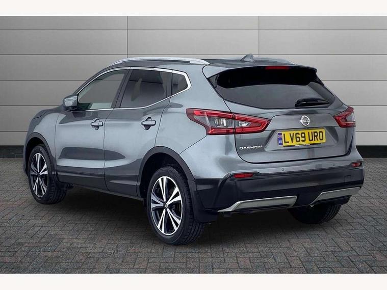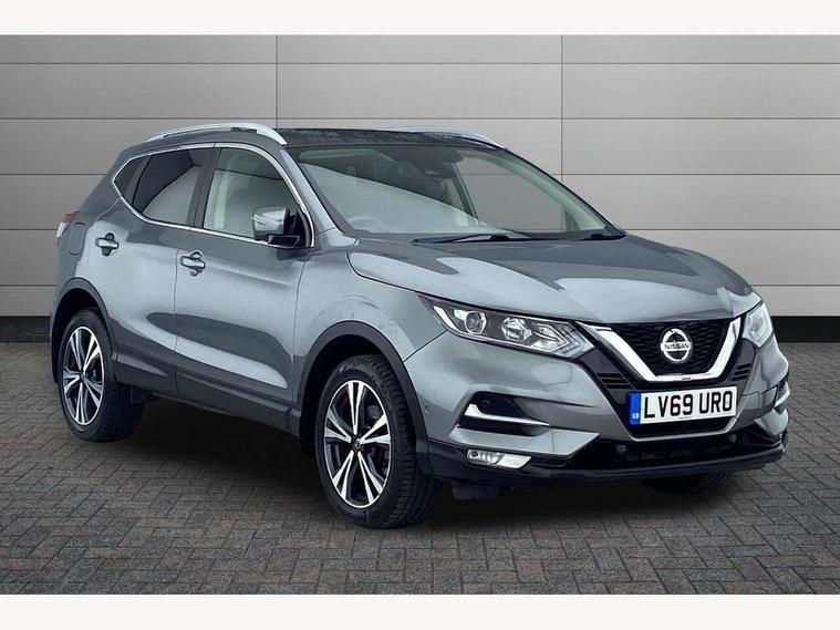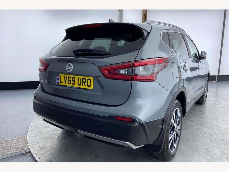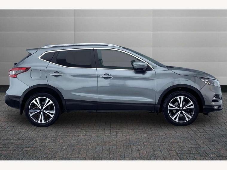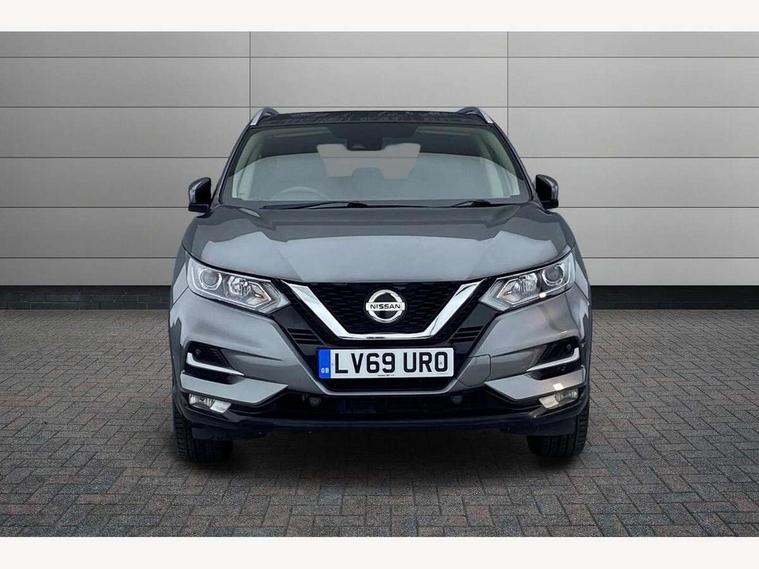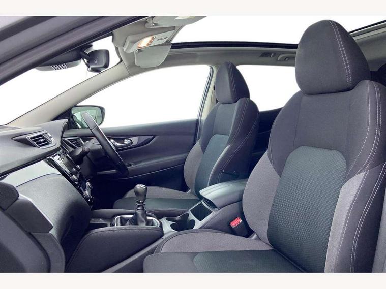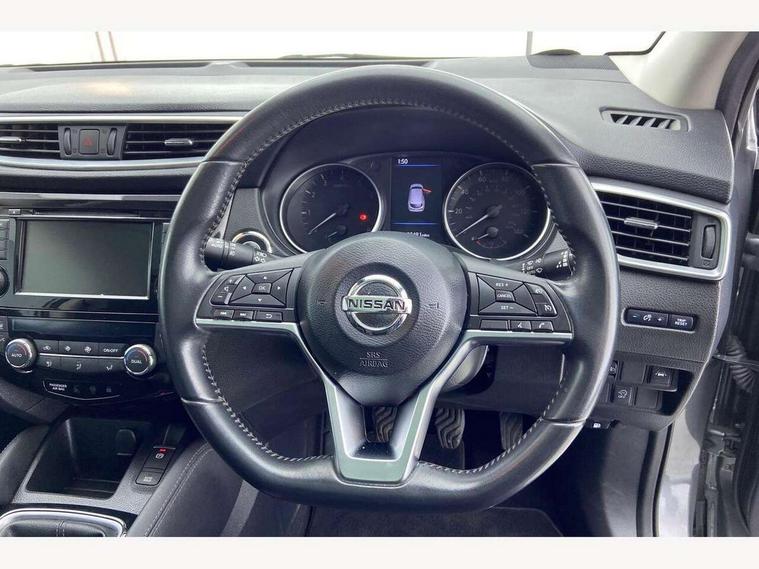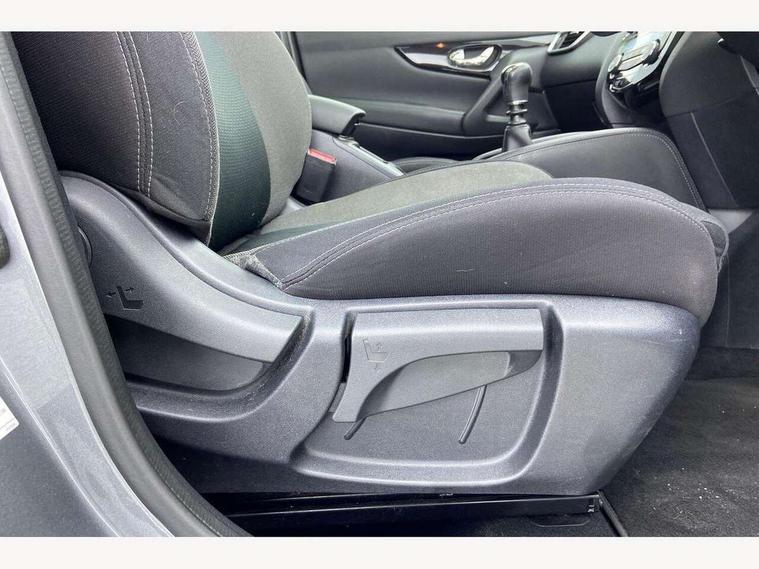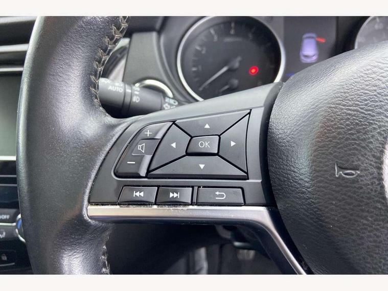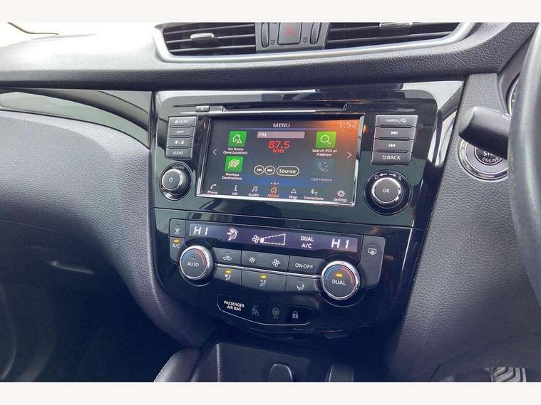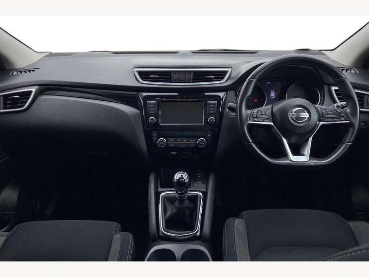 Advanced drive assist display 5'' TFT coloured screen, Android Auto, Apple CarPlay preparation, Bluetooth connectivity, Electric speed sensitive power steering, Front parking sensors, Intelligent around view monitor, Intelligent parking assist, Lane departure warning system, Nissan connect evo 7" touchscreen navigation and entertainment system, Normal or sport selectable steering, Outside temperature sensor, Push button starter, Rear parking sensors, Rear view camera, Service interval indicator, Smartphone integration, Stop/start system, Tomtom connected services, Traffic sign recognition, Trip computer, Voice control system, 6 speakers, AM/FM radio, CD audio system, Aux-in socket, DAB Digital radio, Rear USB connection, Steering wheel mounted audio controls, USB port, Anti dazzle rear view mirror, Auto wipers, Body colour bumpers, Body coloured door handles, Body coloured door mirrors, Chrome window surround, Daytime running lights dip function when turn signal applied, Electric folding door mirrors, Electric front and rear windows with one touch illuminated window controls, Electric front/rear windows, Electrically adjustable door mirrors, Front fog lights, Halogen headlights, Heated door mirrors, High beam assist, Intelligent auto headlights, LED indicators in door mirrors, Matt silver roof rails, One touch 4x auto windows with illuminated switches, Privacy glass, Rear roof spoiler, Rear wiper with reverse link, Shark fin antenna, Signature LED daytime running lights, Underbody vortex generators, 2 X front 12v power sockets, 3 height adjustable rear headrests, 60/40 split folding rear seat, Ambient lighting, Ambient lighting in centre console, Boot lighting, Centre console storage box/armrest, Chrome interior door handles, Cloth upholstery, Configurable luggage board system, Driver's seat manual height adjust, Dual zone climate control, Front and rear door pockets with bottle holders, Front and rear seat belt pre-tensioners with load limiters, Height adjustable front headrests, ISOFIX restraints on outer rear seats x2, Leather D shaped steering wheel, Leather gear lever, Leather knee pad, Manual height adjustable front passenger seat, Manual lumbar support on driver seat, Manual lumbar support on passenger seat, Parcel shelf stow function under luggage board, Pollen filter, Rear armrest with 2 cupholders, Synthetic leather wrapped door handle with contrasting stitching, Tilt/telescopic adjustable steering wheel, Safety shield plus pack - Qashqai, 6 airbags - Driver, front passenger, curtain and side airbags, ABS, ESP, EBD and brake assist, Auto hold function, Child locks on rear doors, Electronic parking brake, Front and rear seat belt warning, Front passenger airbag deactivation, Height adjustable front seatbelts, Hill start assist, Intelligent emergency braking with pedestrian recognition, Three 3 point rear seatbelts, Tyre pressure monitoring system, Anti-theft immobiliser, Intelligent Key, Remote central locking, Thatcham Cat.1 alarm, Glossy black dash trim, Tyre puncture repair kit,