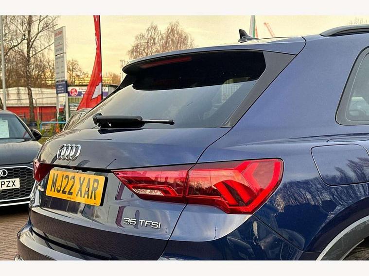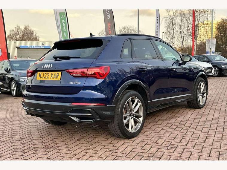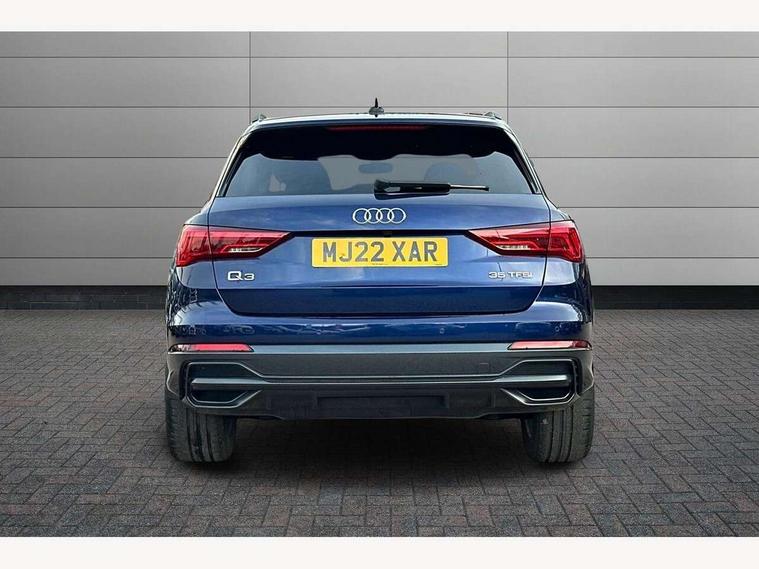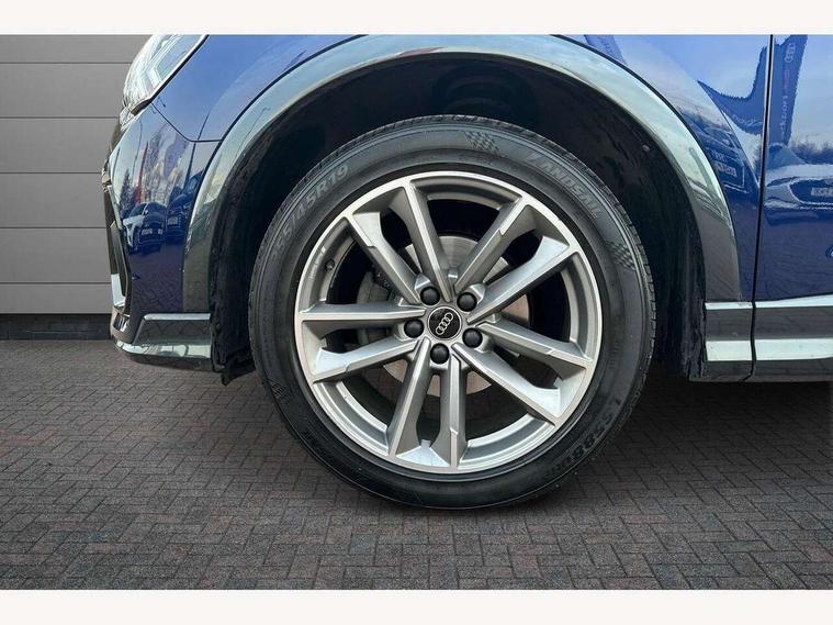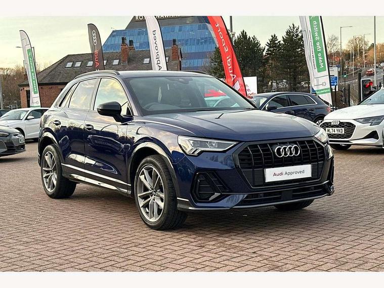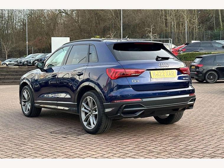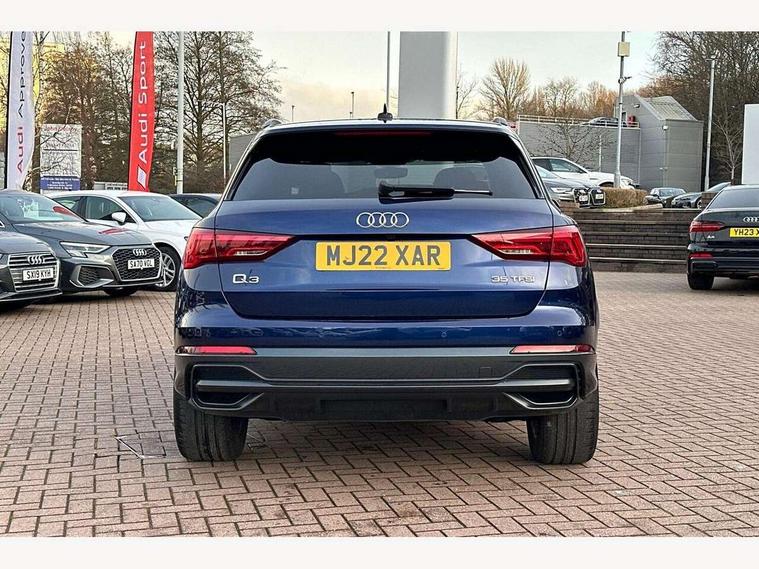 Amazon alexa Integration, Audi connect safety and service (e-call), Audi drive select, Audi lane departure warning, Audi Virtual Cockpit - 10.25" display, Bluetooth interface, Camera based traffic sign recognition, MMI Navigation Plus with high resolution 10.1 inch touchscreen colour display, Power operated tailgate, Progressive steering, Service interval indicator, Smartphone interface includes wireless Apple carplay/Android Auto, Start stop system with recuperation, Voice control system with natural language interaction, 48V Mild hybrid technology, Sports suspension, 2 USB-C ports with charge and data functions, 6 passive loudspeakers, DAB digital radio module, Acoustic windscreen, Auto dimming frameless rear view mirror, Black roof rails, Electrically folding, adjustable and heated door mirrors with integrated LED side indicators and kerb view function for passenger side, Front and rear electric windows, Front fog lights, Grille vertical bars in aluminium silver/Matt, High gloss black finish B and C pillars, LED headlights with LED daytime running lights, LED rear lights, LED third brake light, Privacy glass dark tinted rear and rear-side windows (from B-pillar backwards), Rain and light sensors, Rear diffuser strip in matt titanium black, Rear side wing doors, Rear wiper, S line bumpers in contrasting Manhattan grey, Variable front intermittent wipers, 12V socket in rear centre console, 3 seat bench in 2nd row, 40:20:40 folding with manual adjustment for 60:40 forwards/backwards position and backrest angle, Adjustable rear seat bench/backrest with centre armrest and cupholder, Black cloth headlining, Dual zone electronic climate control, Front and rear black floor mats with contrast stitching in rock grey, Front and rear headrests, Front and rear roof module including reading lights, Front centre armrest, Glove compartment lighting, Height and reach adjustable steering wheel, Illuminated door sill trims with S logo, ISOFIX child seat mounting for front passenger with airbag deactivation and outer rear seat including top tether attachment point for outer rear seats, Luggage compartment light, Manual front seats with height adjustment, Perforated leather gearknob, Single front passenger seat, Stainless steel luggage compartment sill finisher, Stainless steel pedals, Black styling pack - Q3, Non smoking pack - Q3, 3x3 point rear seatbelts, 6 airbags - Driver, front passenger, curtain and side windows, Audi pre-sense front with pedestrain and cyclist recognition, Electromechanical parking brake, Electronic stabilisation control including ABS, ASR and EDL, Front seatbelt reminder, Hill descent control, Hill hold assist, Manual child lock in rear doors, Pre sense basic, Seatbelt monitoring, Tyre pressure warning, Warning triangle and first aid kit, Anti theft alarm, Anti theft wheel bolts, Immobiliser, Remote central locking, Detail dashboard around MMI touch colour display in glass look, black with surround in aluminium look, Leatherette door armrest, Piano black inlay, Tool kit, Tyre repair kit,