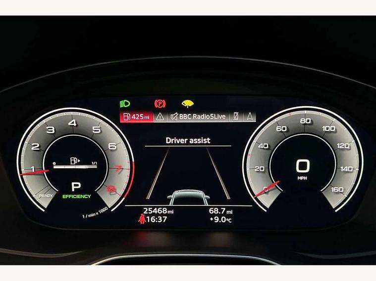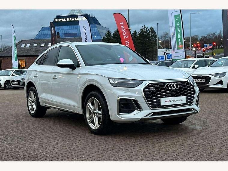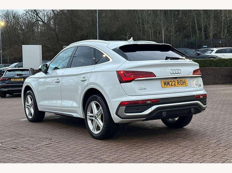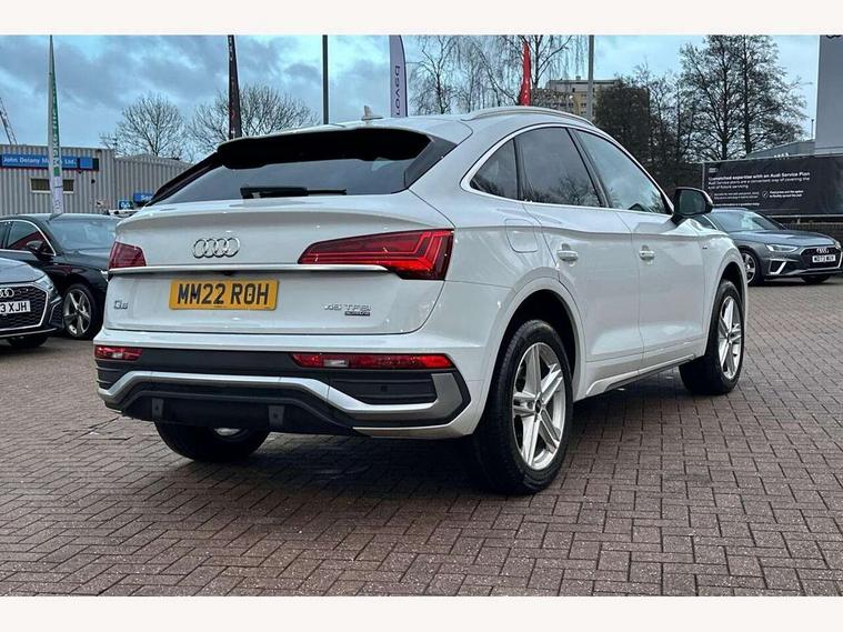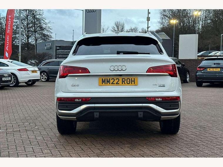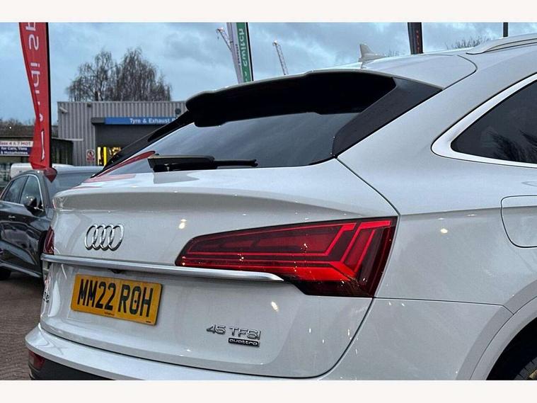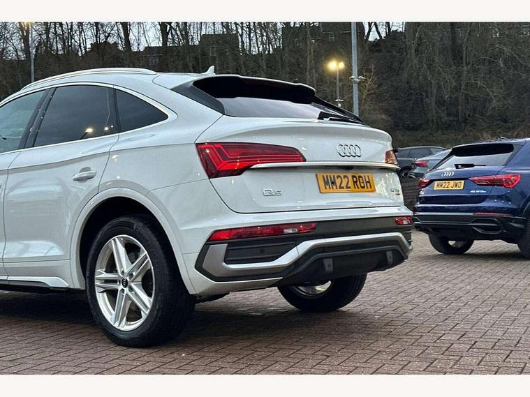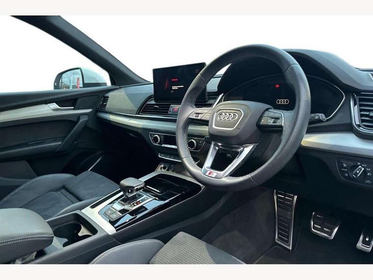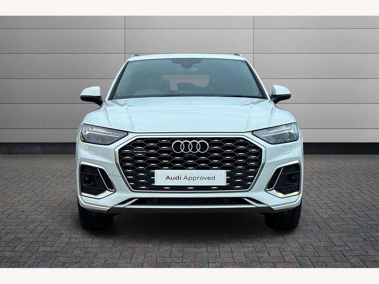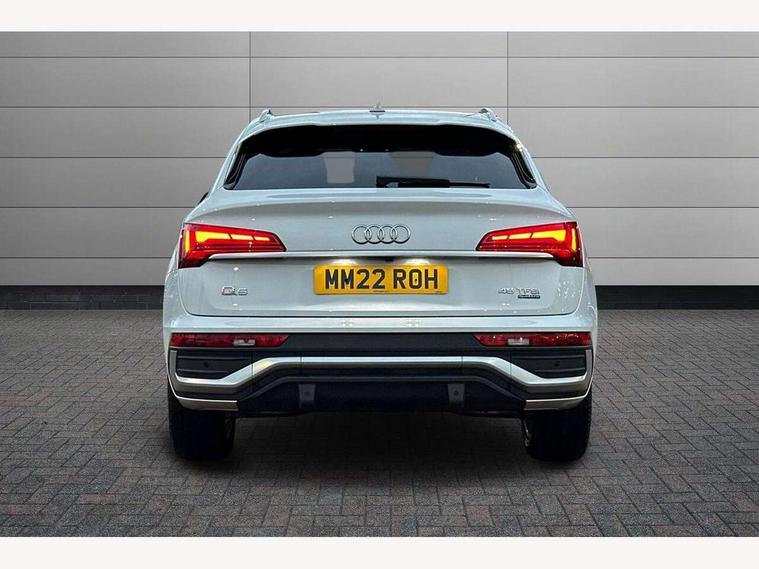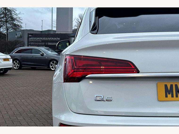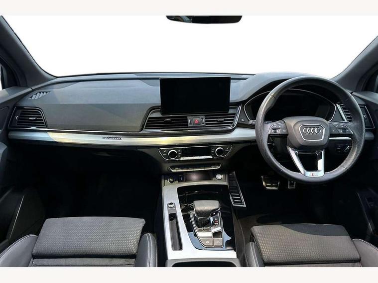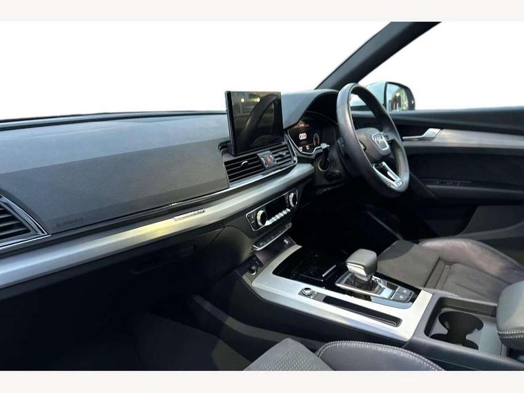 Audi connect safety and service (e-call), Audi connect with Amazon Alexa Integration, Audi drive select, Audi virtual cockpit plus with 12.3" screen and three different layout designs, Audi wireless smartphone interface, Automatic start-stop system with coasting functionality and efficiency programme, Bluetooth interface, Electro - mechanical power assisted steering, MMI navigation plus with 10.1" touch screen, Power tailgate, Reversing camera, Service interval indicator, Voice control system with Audi hotword activation "Hey Audi", Quattro on demand, S line sports suspension, 2 x USB charging port with aux input socket, DAB Digital radio, Acoustic windscreen, Aluminium roof rails, Audi matrix LED headlights with dynamic front and rear indicators, Auto dimming door mirrors, Auto dimming rear view mirror, Automatic headlights and windscreen wipers, Body colour door mirrors, Body colour rear diffuser with matt aluminium silver surrounds, Body colour underbody protection, Chrome plated exhaust trims, Daytime running lights, Door sills in Selenite silver, Electric adjustable/heated/folding door mirrors, Front air inlet surrounds in aluminium, Front and rear electric windows, Front radiator grille in honeycomb design, Headlight washers, High level LED brake light, Lower bumpers painted in contrast Manhattan grey, Rear chrome trim strip below lights, Rear privacy glass and rear side windows, Rear side wing doors, Rear wiper, Roof bars, S Line badges on the front wings, S Line front and rear bumpers, S Line rear spoiler, S Line side skirts, 3 rear headrests, 40:20:40 split folding 3 rear bench seat in 2nd row with rear centre armrest, Black cloth headlining, Comfort front centre armrest, Contrast stitching on seats, steering wheel and gear lever gaiter, Deluxe 3 zone electronic climate control, Front head restraints, Front/rear floor mats, Gear lever in black leather, Heated front seats, Height/reach adjustable steering column, Illuminated door sill trims with S logo, ISOFIX child seat mounting and top tether, Manual seat adjustment with 4-way electric lumbar support, Removable luggage compartment floor, Single front passenger seat, Stainless steel pedals, Sunvisors with vanity mirrors, Trunk roller cover, High gloss pack - Q5, LED interior light pack - Q5, 3 point seatbelts on all seats, 6 airbags - Driver, front passenger, curtain and side airbags, Electrically operated child locks on rear doors, Electromechanical parking brake, Electronic stabilisation control including ABS, ASR and EDL, Front passenger airbag deactivation, Hill descent control, Hill hold assist, Multi collision brake assist, Pop-up bonnet for pedestrian protection, Pre sense city, Seat belt force limiter, Seatbelt monitoring, Tyre pressure warning, Warning triangle and first aid kit, Anti theft alarm, Anti-theft wheel bolts, Keyless Go access/ignition system, Remote central locking, Matt brushed aluminium inlays,