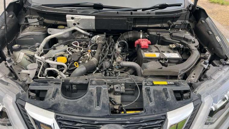 5" TFT driver information centre, Automatic tailgate opening, Blind spot monitoring, Bluetooth phone integration system, Cruise control + speed limiter, Driver attention alert system, Front and rear parking sensors, Intelligent around view monitor, Intelligent parking assist, Lane departure warning system, Moving object detection, Nissan connect evo 7" touchscreen navigation and entertainment system, PAS, Push button start, Rear cross traffic alert, Traffic sign recognition, Trip computer, Nissan chassis control (intelligent ride control, intelligent trace control, intelligent engine brake), DAB Digital radio, Radio/CD, Smartphone apps, Steering wheel mounted audio controls, USB/aux input socket, Adaptive front lighting system, Anti dazzle rear view mirror, Automatic headlights, Automatic rain sensing wipers, Black honeycomb front grille, Body colour door mirrors, Chrome door handles, Chrome side mouldings, Chrome window surround, Electric folding door mirrors, Electric heated door mirrors, Front and rear electric windows, Front fog lights, LED daytime running lights, LED Headlights, Panoramic sunroof with one touch shade, Rear privacy glass, Satin silver roof rails, Shark fin roof aerial, 3 rear headrests, 60/40 split rear bench seat, Centre console storage box/armrest, Configurable luggage board system, Driver's electric lumbar adjustment, Dual zone climate control, Electric adjustable front seats including height adjust, Front and rear door pockets with bottle holders, Front cupholders, Front/rear armrests, Heated front seats, Heated rear seats, Height adjustable front headrests, Individual rear reading lights, Isofix child seat attachment, Leather D shaped steering wheel, Leather steering wheel and gear knob, Pollen filter, Tilt/telescopic adjustable steering wheel, 3 point seatbelts on all seats, 6 airbags - Driver, front passenger, curtain and side airbags, ABS, Child locks on rear doors, EBD + Brake Assist, Electric parking brake, ESP + traction control, Intelligent emergency braking with pedestrian recognition, Seatbelt warning, Tyre pressure monitoring system, Immobiliser, Intelligent Key, Remote central locking, Thatcham Cat.1 alarm, Full size spare wheel,