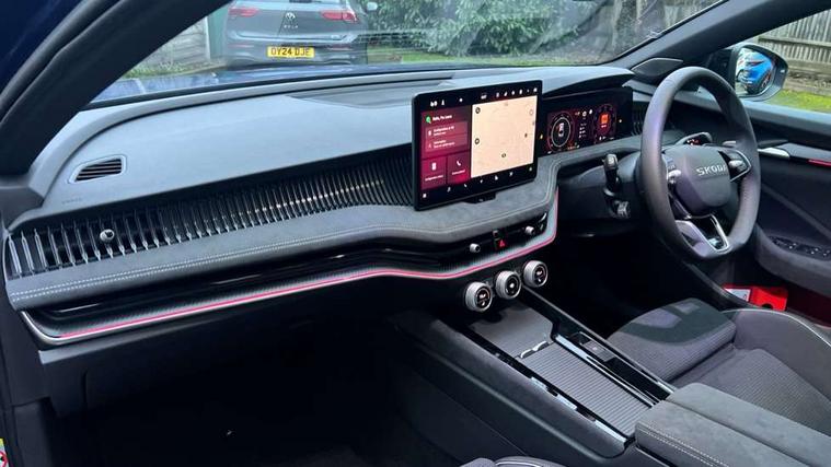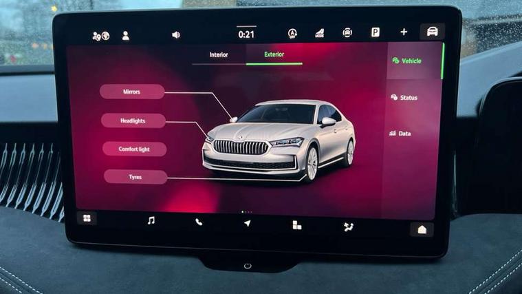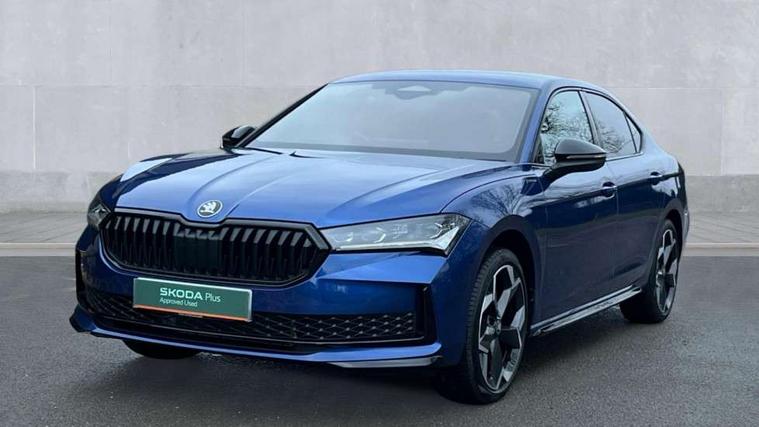 13" touchscreen display with satellite navigation, 4x USB-C ports (2x in front centre console and 2x in rear) (45W), Adaptive cruise control with speed assist, lane assist plus and traffic tram assist, Blind spot detection with door exit warning, Bluetooth system, CareConnect and Emergency Call, ChatGPT functionality, Driver fatigue sensor, Easy boot close funtion, Front assist with extended predictive pedestrian protection, Front cross traffic assist, PAS, Quick start all heating software functionality, Stop/start engine system, Traffic sign recognition, Turn assist with evasive assistance, Virtual Cockpit - 10.25" digital display, Voice control system, Washer for rear camera, Wireless charging for one smartphone (15W) with cooling function, Wireless smartlink apple carplay, SmartLink+ android auto, Dynamic chassis control plus with progressive dynamic steering, DAB Digital radio, Display cleaner, FM radio connection, Web radio connection, Acoustic side windows and interior noise suppression, Backdrop lighting, Black exterior styling window and grille surrounds, Body colour door handles, Dynamic range control with poor weather light and integrated fog light, Electrically adjustable, heated, folding and driver side auto-dimming door mirrors with memory function, integrated indicators and logo projection, Frameless auto-dimming rear view mirror with USB-C, Gloss black door mirrors, Ice scraper in fuel tank cap, LED 3rd brake light, Light assist with High beam control, Light assistant (coming/leaving home/tunnel light), Privacy glass, Rear fog lights (x2), Rear side wing doors, Skoda lettering in black, Sportline badging, Sports bumpers, Windscreen wipers with rain sensor, 12V socket 1x centre console 1x boot, 14-way electrically adjustable, memory, front seats with 4-way pneumatic lumbar support, and extendable thigh support with smart comfort entry aid, 2x cargo elements in boot, 2x light in boot, 3 seat bench in 2nd row, 60:40 Split folding rear seats, Aluminium pedals, Bottle holders in the front doors 1.5 litre bottle and rear 1.5 litre bottle, Cup holder in front with easy open mat, Front armrest with storage box, Front sports seats, Heated and ventilated front seats, Height adjustable front and rear head restraints, Illuminated glovebox, Interior lights with control switches, Isofix child seat fittings in outer rear and front passenger seats, LED front and rear reading lights, Single front passenger seat, Skoda lettering on steering wheel, Storage compartment with cover, Storage pockets on back of front seats, Sun visors with illuminated vanity mirrors, Ticket holder on A Pillar, Tri zone climate control, Umbrella in driver's door, Light and view package - Superb, Transport package - Superb Hatchback, 3 rear seatbelts, 8 Airbags - Front driver and passenger, front side driver and passenger, centre, curtain front and rear, drivers knee, Crew protect assist, Driver and passenger seatbelts with warning light, Electronic parking brake, ESC including ABS, EBV, MSR, ASR, EDS, HBA, DSR, RBS, CBC, multi-collision brake (MKB) and Auto hold, Hill hold assist, Power operated child lock in rear doors, Alarm with interior monitoring tilt sensor and back up horn, Backrest remote release from trunk, Electronic engine immobiliser, Keyless start/stop, Remote central locking with SAFE system, Third key, Walk away locking, Decorative front door sills, 19" Torcular polished black alloy wheels with anti theft wheel bolts,