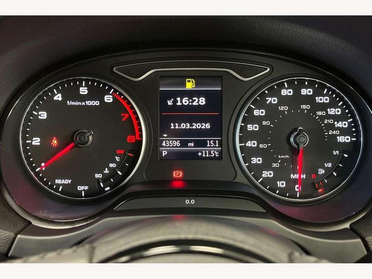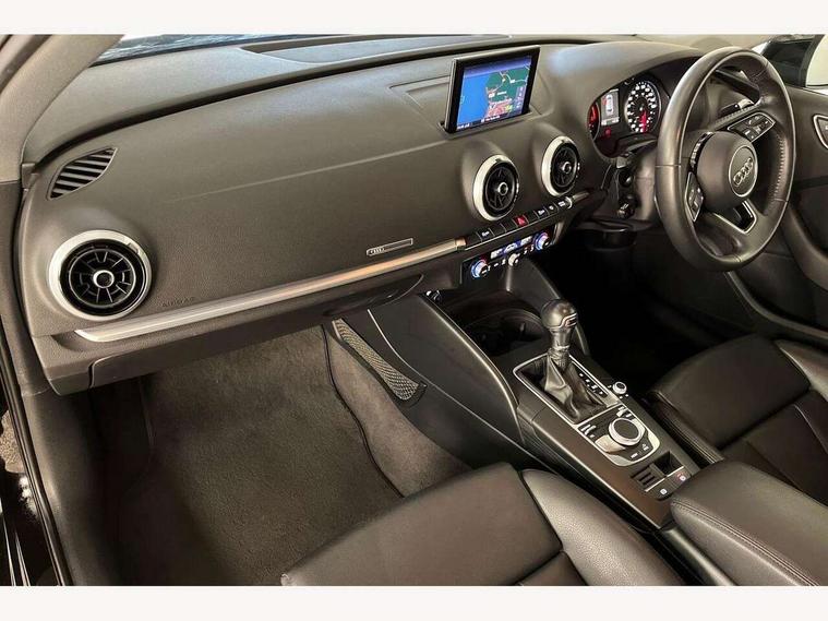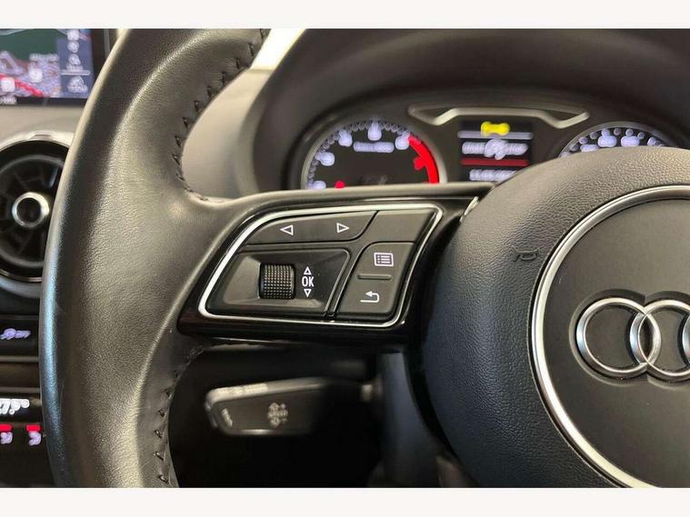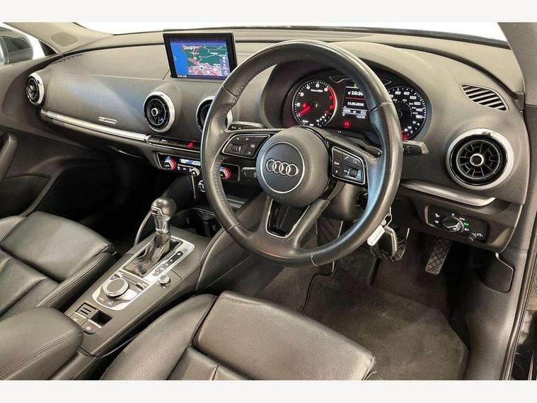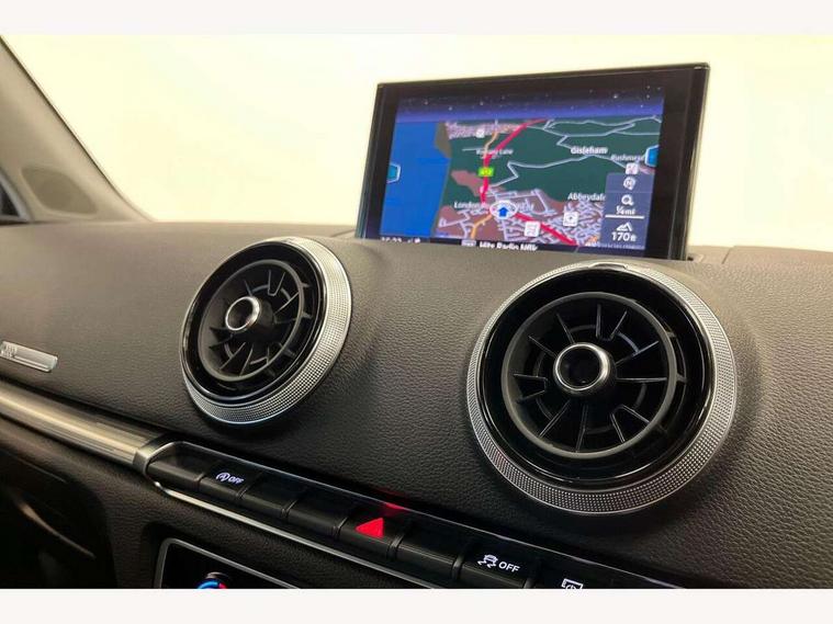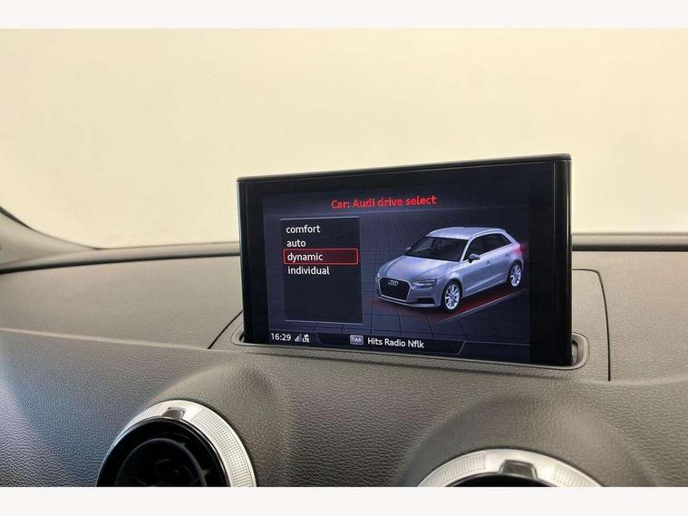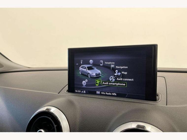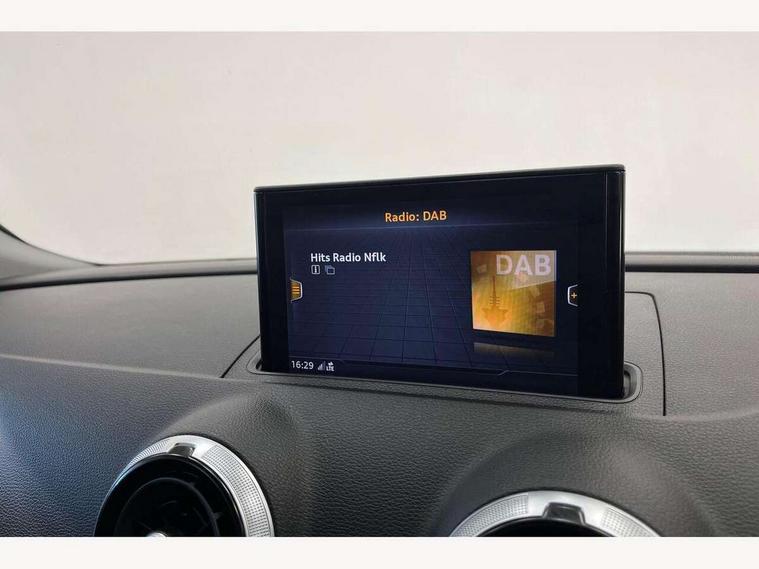 Audi connect, Audi drive select, Audi smartphone interface, Automatic start/stop system, Colour driver's information system display, Electro - mechanical power assisted steering, Mobile telephone preparation - bluetooth interface, SD card based satellite navigation system, Service interval indicator, Speed limit display, Voice control system, Voice recognition for navigation system, 2 USB interfaces and Aux-In jack, Audi music interface, CD player, DAB Digital radio, MMI radio plus with 7" colour MMI screen and MMI controller, Aluminium window trim, Auto dimming rear view mirror with light and rain sensors, Body colour bumpers, Body colour door mirrors, Body colour roof spoiler with aerodynamic inserts in high gloss black, Chrome exhaust tailpipes, Electric front windows, Electric rear windows, Electrically adjustable and heated door mirrors with integrated LED side indicators, Heated windscreen washer jets, Matt black radiator grille, Rear wiper, Sport specific side air inlet grille and diffuser insert, Xenon headlights with LED Daytime running light, 3 adjustable rear headrests, 4 lashing points to secure luggage, Adjustable front centre armrest, Aluminium door sill trims, Cloth headlining, Dual zone electronic climate control, Front and rear interior lights with delay, Front sports seats, Front/rear floor mats, Glovebox light, Height/depth adjustable steering column, Isofix child seat preparation for front passenger/outer rear seats inc passenger airbag deactivation, Rock grey headlining, Storage compartments in doors side trims, centre console and under front drivers seat, Non smoking pack - A3, 3 point seatbelts on all seats, ABS/EBD, Active bonnet, Active front headrests, Airbags - front driver/passenger, front & rear side, curtain, drivers knee, ASR, EDL, Electromechanical parking brake, ESC - Electronic Stability Control + traction control, Front passenger airbag deactivation, Hill hold assist, Manual rear child locks, Multi-Collision braking, Seatbelt warning, Tyre pressure warning, Warning triangle and first aid kit, Anti theft alarm, Anti-theft wheel bolts, Remote control central locking, Thatcham category 1 alarm + immobiliser, Aluminium air vent surrounds, Aluminium mistral silver inlay, Aluminium trim elements,