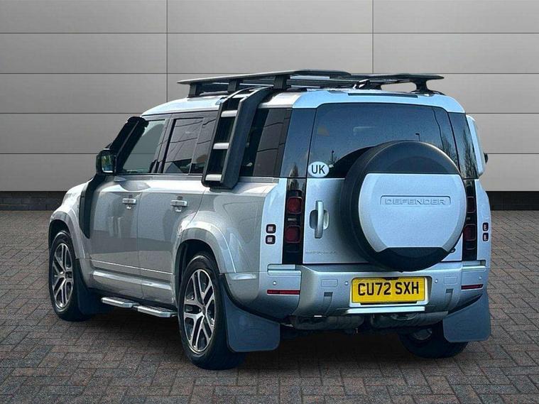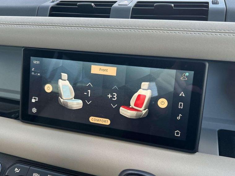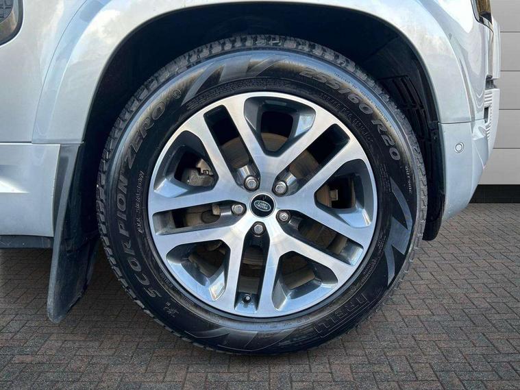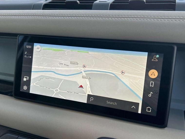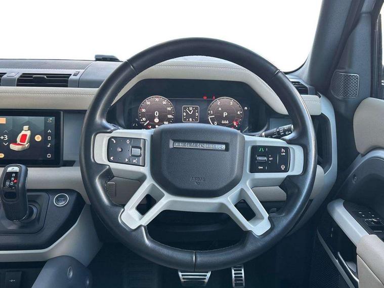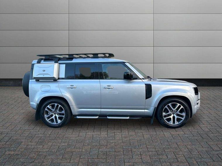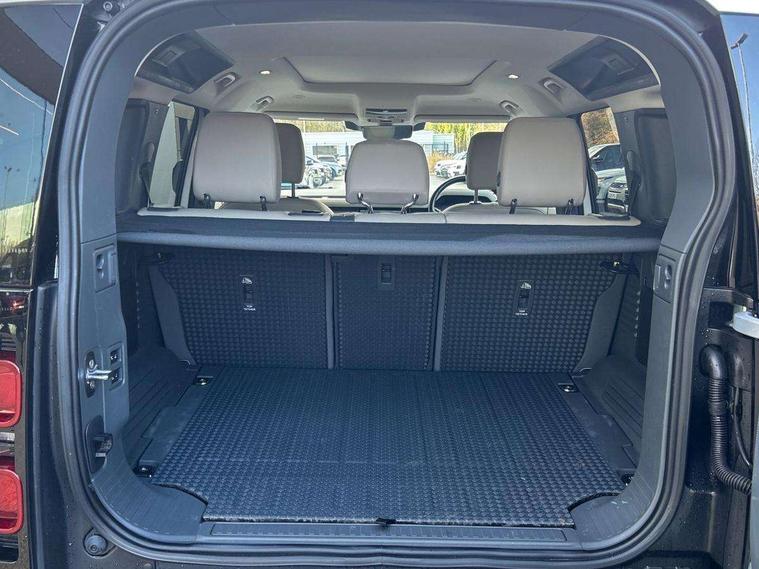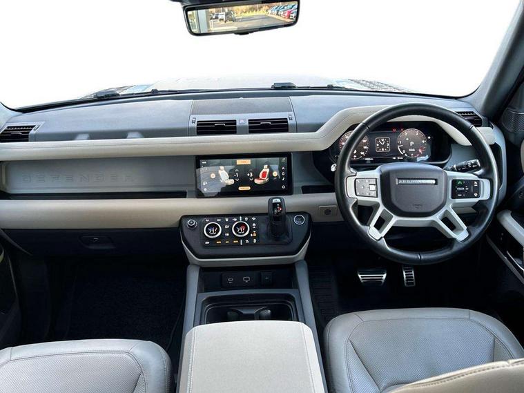 Online pack with data plan - Defender, XS Edition exterior pack - Defender, Alarm, Immobiliser, Intrusion sensor, Keyless entry, Locking wheel nuts, DAB Radio (Digital Audio Broadcasting), Meridian 400w sound audio system with 11 speakers and subwoofer, Pivi pro connected, 5 x 3 point seatbelts, ABS, Brake hold function, CBC - (Cornering brake control), Cross car beam in light grey powder coat brushed finish, Customer configurable autolock, DSC - Dynamic Stability Control, EBD - Electronic brakeforce distribution, Electric parking brake (EPB), Emergency brake assist, Emergency braking, ESP + traction control, Front airbags with passenger seat occupant detector, HDC - Hill descent control, Hill launch assist, Low traction launch, Power operated child locks, Remote for (e-Call, Optimised assistance call, InControl app, Climate, beep and flash and door), RSC - Roll stability control, Seat belt reminder, TPMS (Tyre pressure monitoring system), Automatic headlight levelling, Automatic headlights, Body coloured roof, Centre high mounted stop light, ClearSight interior rear view mirror, Electric heated/power fold door mirrors with approach lights and auto dimming driver side, Electric windows with one touch open/close and anti-trap, Follow me home lighting, Front fog lights, Heated rear window with timer, Heated windscreen, Illuminated metal tread plates with brand name script, LED tail lights, Matrix LED headlights with signature DRL, Privacy glass, Puddle lights, Rain sensing windscreen wipers, Rear fog lights, Rear side wing doors, Rear wiper, Side hinged tailgate, Signature graphic (with interior storage), Sliding panoramic roof, Trailer stability assist, 12 way heated and cooled electric memory front seats with 2 way manual headrests, 12V power socket in loadspace, 3 seat bench in 2nd row, 40:20:40 folding rear seats with centre armrest, Alpine lights, Durable rubber cabin flooring, Durable rubber loadspace flooring, Electric cabin pre conditioning, Electric reach + rake adjustable steering column, Footwell lights, Front centre console refrigerator compartment, Front passenger isofix child seat attachment, Grained Leather upholstery, Heated steering wheel, Leather gearshift, Light oyster morzine headlining, Loadspace cover, Loadspace Hook, Multifunction steering wheel, Overhead stowage for sunglasses, Premium cabin lighting, Rear headrests, Rear ISOFIX, Rear reading lights, Single front passenger seat, Standard interior, Standard leather steering wheel, Standard seat configuration, Storage glovebox, Sunvisors with illuminated vanity mirrors, Twin front cupholders with cover, 360 degree parking aid, 3D Surround Camera with 360 View, 180 Rear View, Front Traffic Detection, Forward Vehicle Guidance, Tow Hitch Assist and clear sight Ground View, Android Auto, Apple CarPlay, Assisted tailgate with soft close, Blind spot assist, Bluetooth system, Brake pad wear indicator, Clear exit monitor, Connected navigation pro, Cruise control + speed limiter, Driver condition monitor, Electric power assisted steering (EPAS), Lane keep assist, Push button start, Rear traffic monitor, Traffic sign recognition with adaptive speed limiter, Trip computer, Wade Sensing, Wireless device charging with phone signal booster, 8 speed automatic transmission, Adaptive dynamics, All wheel drive system, Twin speed transfer box,