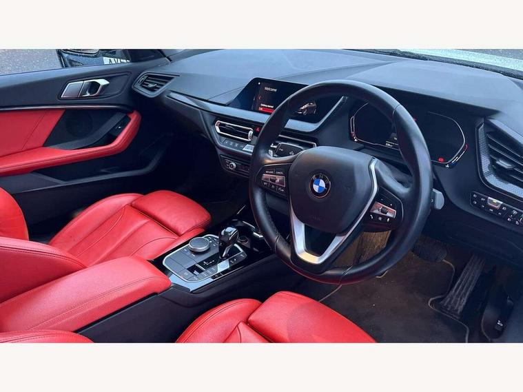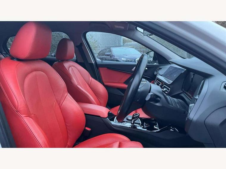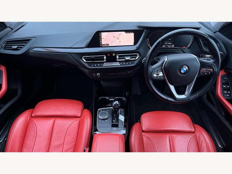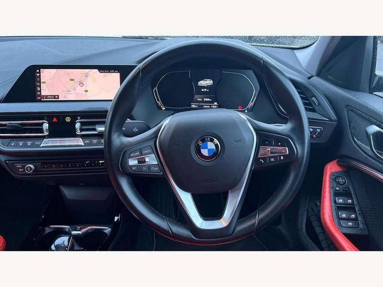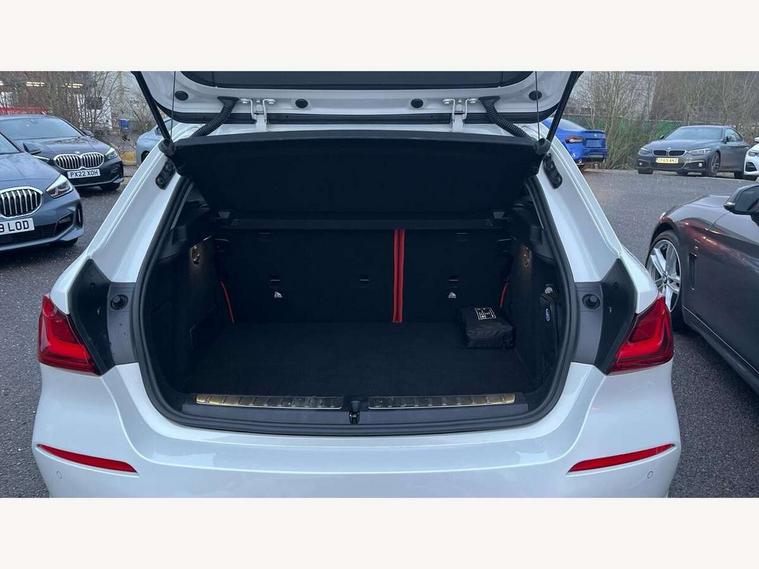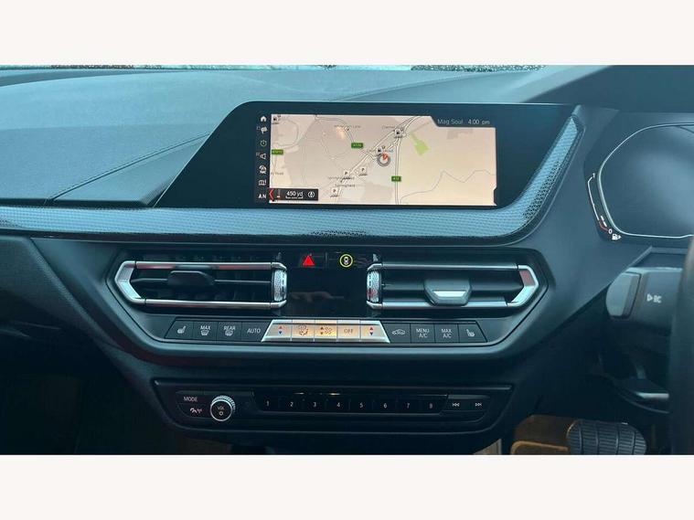 Active guard plus, Attentiveness assist, BMW Online services, BMW Teleservices, Check Control warning system for monitoring of lights and door/luggage compartment open warning, Connected eDrive Services, Eco pro mode, Electric power steering with Servotronic steering optimised at all speed ranges, Integrated owners handbook, Oil sensor for level and grade, On board computer, Optimum shift indicator, Personal Profile, Pull away assistant, Speed limiter, Aluminium lightweight construction, Anti roll bar front and rear, Balancer shaft, Double VANOS, Drive Performance Control, Electronic differential lock, High precision injection, Petrol Particulate Filter, VALVETRONIC engine management, Bluetooth audio streaming, DAB Digital radio, Auto dimming rear view mirror, Body colour door handles, Body colour mirror caps, Chrome exhaust tailpipe in single, round (Exhaust tailpipe, stainless steel - single, round), Chrome kidney grille with extra wide black, high gloss black vertical slats, Direction indicator side lights in exterior mirrors, Fading support, Follow me home headlights, Front and rear electric windows with open and close fingertip control, anti trap facility and comfort closing, Front bumper in Body colour with exclusive Sport air inlets finished in High gloss Black, Front door sill finishers in black plastic with BMW designation, Green tinted heat protection glazing, Heated, electrically adjustable exterior mirror aspheric on driver side, convex on passenger side, High gloss shadow line exterior trim, High level third brake light, LED daytime running lights, LED eyebrow turn indicators, LED front fog lights, Lightweight engineering, Manual headlight beam throw control, Matt black air guide grilles, Matt black roof moulding, B pillar finisher and wheel arch trim, Matt black window frame, Model designation on right side of tailgate, Nearside reverse light in rear light cluster, Preparation for high beam assistant, Rain sensor including auto headlights activation, Rear bumper in Body colour with exclusive Sport design elements finished in High gloss Black, Rear fog lights, Rear window wiper, Shark fin antenna, Visible VIN plate, Welcome lighting, Windscreen wipers with integrated washing jets, 12V power socket in centre console, 2 cupholders in front centre console, 3 rear seat head restraints, 3 spoke sports leather steering wheel in pearl Chrome, Child seat ISOFIX attachment for two outer rear seats and front passenger seat with anchorage points, Conditioned based service, Driver side folding compartment in instrument panel, Folding rear clothes hook, Folding rear seats, Four grab handles integrated in roof lining, Front and rear door pockets, Front and rear side armrest integrated into door trim, Front armrest foldable with integrated storage compartment, Front sports seats with electric side bolster adjustment, Glove compartment, Height adjustable front head restraints, Manual adjust steering wheel, Multi-function controls for steering wheel, Rear seat backrest with manual 60:40 split folding with 3 top tether clips integrated on rear of seat panels, Storage compartment in centre console, Sun visors with vanity mirrors and insert tab, Two zone automatic air conditioning, Velour floor mats, Connected pack professional - 1 Series, Extended storage pack - 1 Series, Interior lights pack - 1 Series, 2 tone horn, 3 point seatbelts on all seats, front pyrotechnic belt tensioners, stopper and belt force limiters, rear coded belt buckles, Airbags - Front driver and passenger, front and rear head, front side, curtain head protection, Anti lock braking system (ABS) with brake assist, BMW emergency call, Brake drying, Braking readiness, Crash sensor activating central locking release, hazard warning lights, fuel cut off, interior lighting + activation of safety battery terminal clamp, Driver and front passenger seat belt security check, Dynamic stability control + (DSC+), Dynamic Traction Control - DTC, Electrically operated hand brake, Front and rear disc brakes, Front passenger manual airbag deactivation, Rear child proof door locks, Seatbelt warning, Side impact protection, Tyre pressure monitoring system, Warning triangle and first aid kit, Automatic drive away locking facility, Central locking switch for all doors, fuel filler cap and luggage compartment, Deadlocking function system to all doors, Locking wheel bolts, Remote central locking with two Integrate key, one button for opening and closing all lock, open and close window, button for open luggage compartment, Start/stop button with comfort go keyless engine start and auto start stop deactivation button, Thatcham Cat.1 alarm and immobiliser, Contrast stitching on instrument panel, Illuminated Berlin interior trim, Reduced rolling resistance tyres,