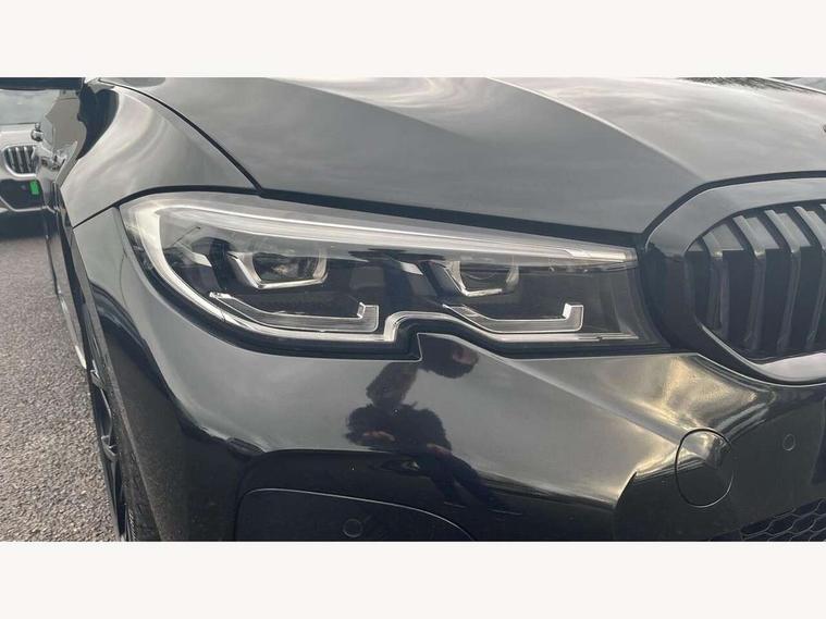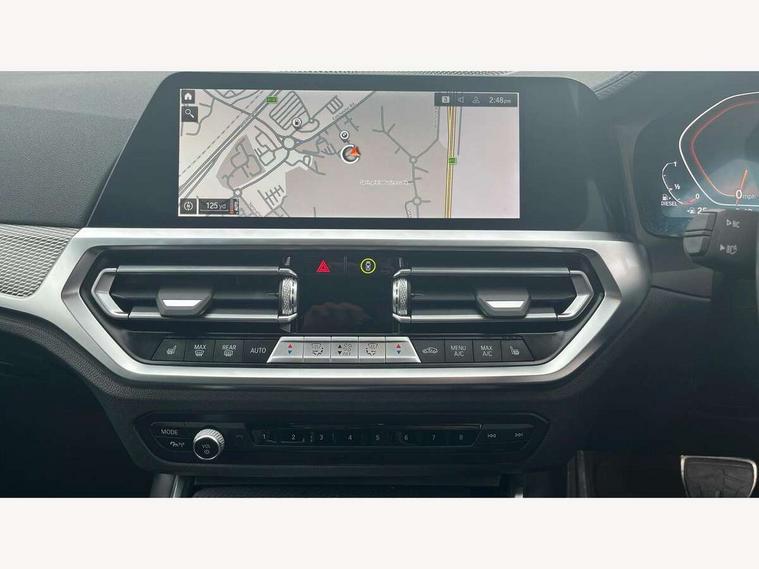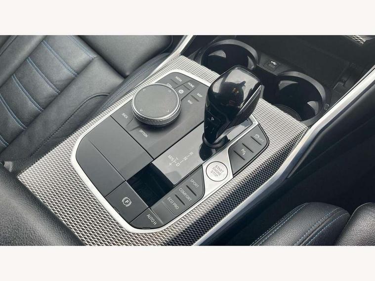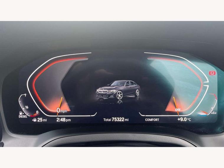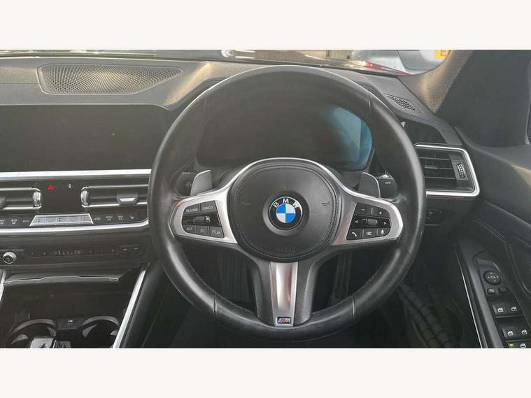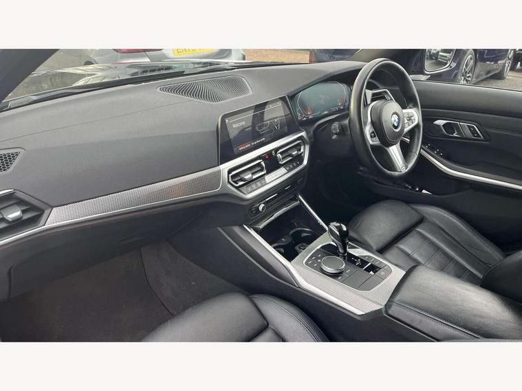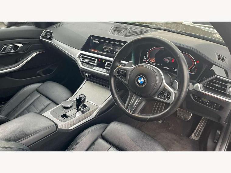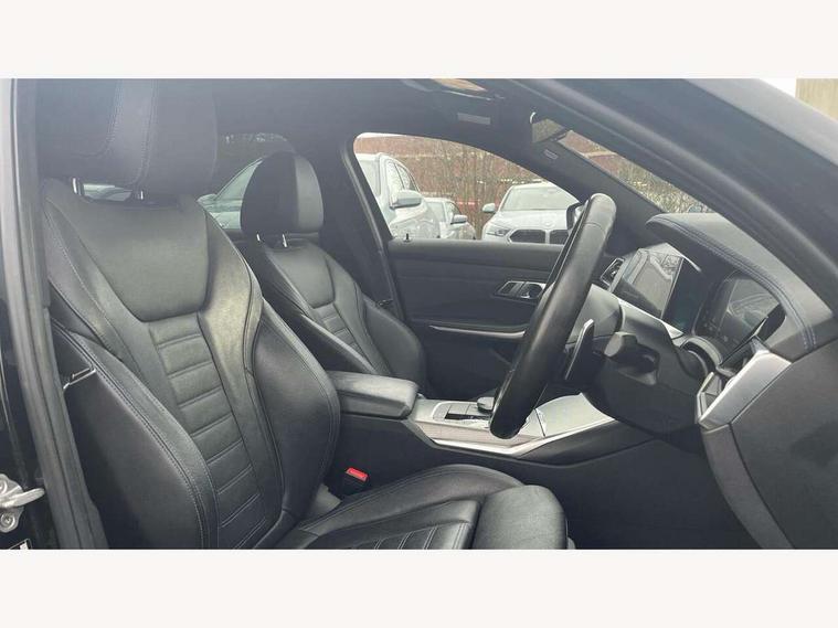 Active guard plus, Attentiveness assist, Bluetooth hands free facility with USB audio interface with audio streaming, BMW iDrive controller on centre console, BMW Live Cockpit Professional Nav with 12.3" instrument display + 10.25" display, Intelligent Voice Assist, BMW OS 7, HDD, 2USB, 4G LTE connect, BMW service history, BMW Teleservices, Brake pad wear indicator in front and rear, Check Control warning system for monitoring of lights and door/luggage compartment open warning, Condition based service, Cruise control with brake function + speed limiter, Electric power steering with Servotronic steering optimised at all speed ranges, Instrument cluster with speedometer with mph readout, tachometer, fuel gauge and oil temperature gauge, Integrated owners handbook, Oil sensor for level and grade, warning by check control system, On board computer - average speed+fuel consumption, service interval, clock/date, odometer/trip meter, outside temperature display and ice warning, Optimum shift indicator, Personal Profile - automatic lock when driving away selectable, Variable sport steering, 48V Mild hybrid technology, Balanced 50/50 weight distribution, Battery cut-out switch, Diesel particulate filter, Drive performance control - ECO PRO, comfort and sport modes, Incorrect fuelling protection, Larger capacity fuel tank, M sport suspension, Stroke dependent dampers, DAB tuner, Electronic service booklet, Stereo speaker system with 2 mid range speakers in the front door trims and rear parcel shelf + 2 central bass speakers underneath the front seats, Acoustic glazing, Active airstream chrome frame kidney grille with 8 high gloss black vertical slats, Automatic headlight beam throw control with load dependent regulating reaction, dynamic compensation of braking dive and acceleration squat, Black roof mouldings, Body colour door handles, Body colour front and rear bumpers, Body colour fuel filler flap, Body colour mirror caps with bottom segment in matt black, Dynamic brake lights, Electric windows - front and rear, with open/close fingertip control, anti-trap facility and comfort closing, Exhaust tailpipe - split left and right, Exterior mirrors - electrically folding with anti-dazzle, Fading support, Front and rear bumper system with replaceable deformation elements, Front black door sill finishers with BMW designation, Green tinted heat protection glazing, High gloss shadow line exterior trim, Interior rear view electrochromatic mirror with automatic anti dazzle function, LED daytime running lights, LED front fog lights, Lightweight engineering, M designation on front side panels, left and right, Matt black exterior B pillar, Model designation on right side of tailgate, Rain sensor with automatic headlight activation, Rear boot, Shark fin antenna, Two part LED tailights in L-shape with components in smoked glass, brake light, LED turn indicator and rear fog light, Visible VIN plate, Welcome lights in interior and door handle area, Windscreen wipers with integrated washing jets, 12V power socket in front storage compartment, 2 front cupholder in centre console with clamping elements and matt black inlay, 3 rear seats with non folding headrests with 3 point seat belts, 3 zone automatic air conditioning, 4 pieces lashing eyelets in luggage compartment, 40:20:40 split folding rear seat with loading system, Ambient lighting with welcome carpet light, Anthracite headlining, Armrest integrated in front and rear door trim + front centre console armrest, Backrest width adjustment, Centred top Luggage compartment lights, Four grab handles integrated in roof lining, Front and rear door exit lighting (left / right), Front and rear door pockets, Front and rear reading lights, Front and rear velour floor mats, Front head restraints, Front sport seats, Heated front seats, Height adjustable mechanically and infinitely variable steering column, Illuminated armrest storage compartment, Illuminated glove compartment with separate small compartment, Interior lighting - front centre over interior mirror with soft light, rear centre and front and rear footwell lighting, M sport leather steering wheel, Make-up mirror lights, Rear centre armrest with 2 cupholders, Rear centre console with storage compartment and ventilation grille, Sunvisors with vanity mirrors and ticket pocket, Toolkit located in luggage compartment, Connected pack professional - 3 Series Saloon/Touring, M sport exterior styling pack - 3 Series Saloon/Touring, Parking assistant pack - 3 Series, 2 tone horn, BMW emergency call, Brake energy regeneration, Braking pre-tensioning, Child proof locking system in rear door, Child seat ISOFIX attachment rear outer seats, Coasting in idle in ECO PRO mode, Crash sensor activating of airbags, Unlocking doors, hazard warning lights, interior light, safety battery terminal, Driver and front passenger side airbags, integrated in the door side seat backrest bolsters for all seat variants, Driver/Front Passenger airbags, Dry braking, Dynamic brake control, Dynamic stability control + (DSC+) - Anti-lock Braking System (ABS) with brake assist and cornering brake control + Automatic Stability Control (ASC), Dynamic Traction Control - DTC, Electric parking brake including automatic hold function and automatic release of the parking brake when driving off, Electronic differential lock control (EDLC), Front passenger manual airbag deactivation, Head airbags for all 4 outer seats, Hill start assist, Seat belt security check for driver and front passenger, Side impact protection, Three 3 point seat belts on all seats including front belt stopper, pyrotechnic belt tensioners and belt force limiters, Tyre pressure monitoring with three level warning strategy, Ventilated front and rear disc brakes, Warning triangle and first aid kit, Alarm system (Thatcham 1) with remote control and electronic engine immobiliser, Central locking switch for all doors, fuel filler cap and luggage compartment, Remote control with integrated key 
