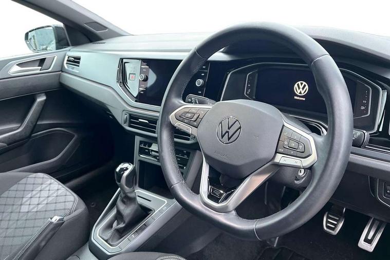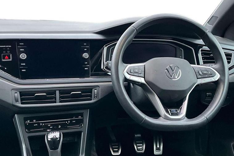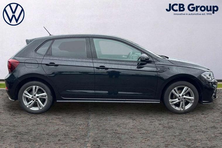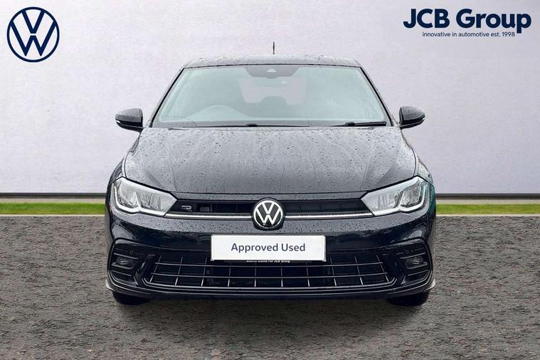 Adaptive cruise control without follow-to-stop and speed limiter, Bluetooth mobile phone interface, Digital Cockpit Pro with 10.25" Display, Driver alert system, Dynamic road sign display, Emergency call service, Power assisted speed sensitive steering, Preparation for We connect and We connect plus, Speedo and rev counter, electronic odometer, trip, service interval display and fuel gauge, Standard rear axle, Travel Assist - Lane keeping system and traffic jam assist, Travel assist including emergency assist, Trip computer, Warning signal and warning light for front and rear seatbelts not fastened, Washer fluid level indicator, Wireless app connect, Front wheel drive, Rear shock absorpion, Start-stop system with battery regeneration (recuperation - energy recovery during braking), DAB Digital radio, Diversity antenna for FM reception, Front and rear 6 speakers, Body colour bumpers, Body colour door handles, Body colour door mirrors, Electric front windows, Front scuff plates with R-Line logo, Heat insulating darkened glass in side and rear windows, Heat insulating glass windscreen, Power folding adjustable/heated exterior mirrors and front passenger exterior mirror lowering function, Rear electric windows, Rear fog light, Rear side wing doors, Rear tinted glass from B-pillar backwards approx 65% tinted, Rear windscreen washer and wiper with interval delay, Third brake light, 12V power socket in centre console, 2 USB-C ports in the front, 2 USB-C charging sockets on the center console in the rear, 3 rear head restraints, 60/40 split folding rear seat and rear seat bench not split, Air care climatronic air conditoning system with active combination filter and 2-zone temperature control, Black roof lining, Ceramique headliner, Chrome plated radiator grille inserts, air vent surrounds and light switch surrounds, Door and side trim panel, Driver and front passenger seat height adjustment, Driver/passenger sunvisors with illuminated vanity mirrors, Front + rear carpet mats, Front centre armrest, Front footwell illumination, Front seat backrest storage pockets, Front sports comfort seats, Handbrake lever handle in leather, Isofix child seat preparation easy-fit (for two outer rear seats, and front passenger seat) compatible with I-size, Karoso artvelours cloth upholstery, Leather trimmed gear knob, LED interior light with switch off delay and dimmer, 2 reading lights front and rear, Luggage compartment cover, Luggage compartment floor, Luggage compartment lighting, Lumbar adjustment for front seats, Multifunction steering wheel, Single front passenger seat, Stainless steel pedals, Standard pedal cluster, Light and sight pack - Polo R-Line/Black Edition, 3 point height adj front seatbelts + pretensioners, 3x3 point rear seatbelts, ABS, Driver and front passenger airbag with front passenger airbag deactivation, Drivers and front passengers safety optimised head restraints, ESC (Electronic stability control) + EDL (Electronic Differntial lock) and ASR (Traction control), Extended and predictive pedestrian/ cyclist protection, Front curtain and side airbags with center airbag, Hill hold control, Manual child lock in rear doors, Single tone horn, Tyre pressure loss indicator, Alarm with interior protection, Anti-theft alarm system with interior monitoring, backup horn, and towing protection, Anti-theft wheel bolts, Electronic engine immobiliser, Chrome applications on rotary light, mirror adjustment, window regulator switches, outlet with frame in black, Dark grey anodised matt decorative inserts in dash and front door panels, Low rolling resistance tyres,