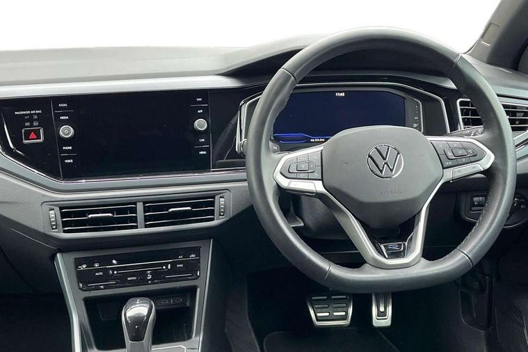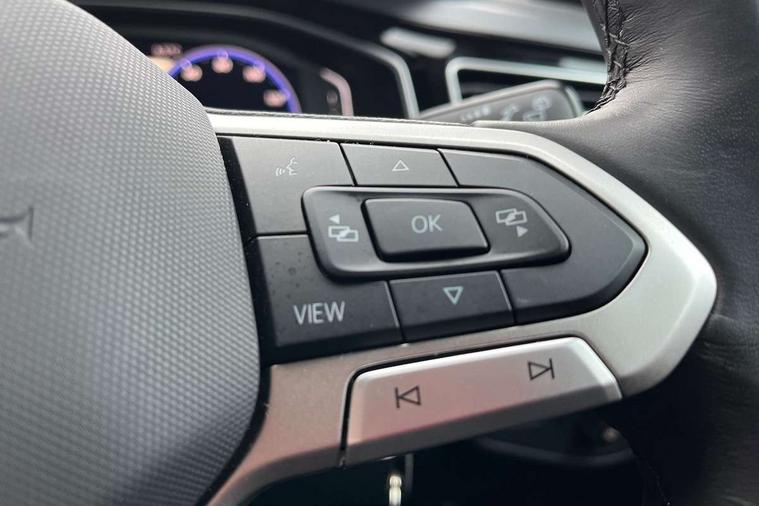 Adaptive cruise control, Advanced driver attention and drowsiness monitor, App-Connect including App-Connect Wireless, Digital cockpit pro - 10.25" high resolution TFT dash display screen with customizable menus and information, Driving profile selection, Dynamic road sign display, e-Call (emergency call), Power Steering, Travel assist including emergency assist, Washer fluid level indicator, Wireless Charging including Bluetooth, Start-stop system with battery regeneration (recuperation - energy recovery during braking), XDS electronic differential lock for improved traction and handling, Digital radio reception (DAB+), Diversity antenna for FM reception, WeConnect plus, Ambient lighting with logo projection, Aspherical driver's exterior mirror, Auto headlights, Body coloured bumpers, Bumpers in R-Line style, Electric windows, External USB type C socket and charging sockets, Front scuff plates with R-Line logo, LED rear combination lamp, LED third brake light, Left convex exterior mirror, Power folding adjustable/heated exterior mirrors and front passenger exterior mirror lowering function, Rear fog light on one side, reversing light on both sides, Rear side wing doors, Rear wash/wipe with intermittent wipe setting, 12V socket in centre console, 2 front reading lights, 3 rear head restraints, 3 seat bench in 2nd row, Air care climatronic air conditoning system with active combination filter and 2-zone temperature control, Black carpets, Black roof lining, Child seat anchor for child seat system i-Size, 2x top tether and child seat anchor in front on front passenger side, Chrome bezel for instrument cluster, vents, door handles + gear shift, Driver and front passenger seat height adjustment, Front + rear carpet mats, Front centre armrest, Front footwell illumination, Front sports comfort seats, Height and reach adjustable steering wheel, Interior ambient lighting and surround lighting, Karoso artvelours cloth upholstery, Leather trimmed gear knob, Leather wrapped multifunction steering wheel, Luggage compartment floor, Luggage compartment light, Lumbar support for driver's and front passengers seat, Seat covers in grey + titanium black, Single front passenger seat, Split folding backrest with centre armrest and unsplit rear seat bench, Stainless steel pedals, Storage compartment under front seats, Sun visors with illuminated vanity mirrors, Chrome Package - Taigo, Drivers assistance pack - Taigo, Light and Sight pack including High beam assist - Taigo, 2 x 3-point seatbelts/outer rear seats with ECE label, 3-point seat belts in front with pretensioner and height adjustment, 3-point seatbelt for centre rear seat, Adaptive driver and front passenger airbags with passenger airbag deactivation function, Driver and front passenger safety-optimised head restraints, Electronic stability control, Extended and predictive pedestrian/ cyclist protection, Front and rear disc brakes, Front curtain and side airbags with center airbag, Hill start assist, Manual rear child locks, Single tone horn, Tyre pressure loss indicator, Anti-theft alarm system with interior monitoring, backup horn, and towing protection, Grey anodised matte decorative inserts in dash and front door panels, Low rolling resistance tyres,