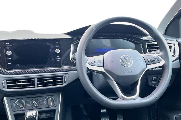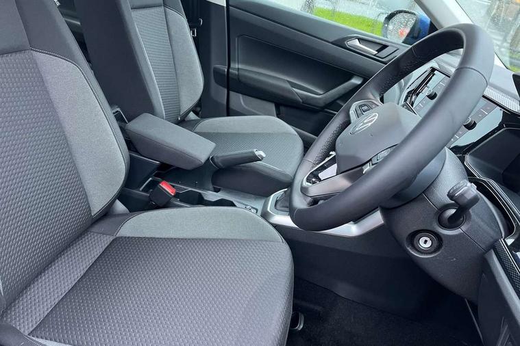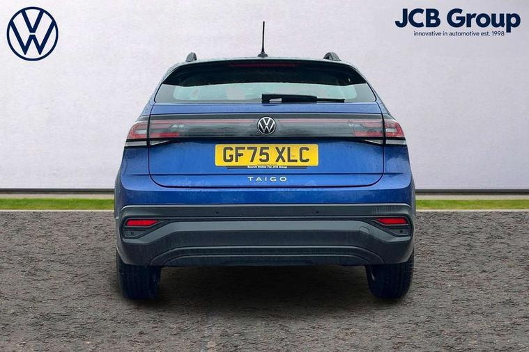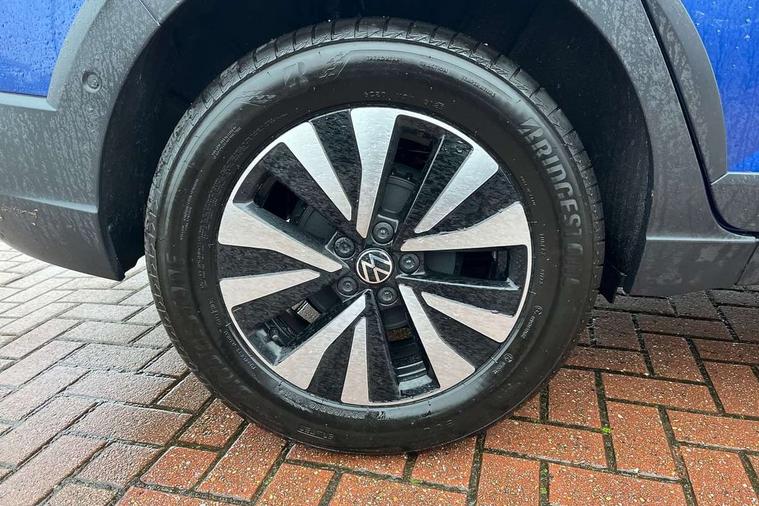 8" Digital cockpit basic display, Advanced driver attention and drowsiness monitor, Dynamic road sign display, e-Call (emergency call), Power Steering, Predictive adaptive cruise control, Travel assist including emergency assist, Washer fluid level indicator, Wireless Charging including Bluetooth, Start-stop system with battery regeneration (recuperation - energy recovery during braking), Digital radio reception (DAB+), WeConnect plus, Ambient lighting with logo projection, Aspherical driver's exterior mirror, Auto headlights, Body coloured bumpers, Body coloured exterior mirror housings and door handles, Electric windows, External USB type C socket and charging sockets, Heat insulating glass windscreen, LED rear combination lamp, LED third brake light, Left convex exterior mirror, Power folding adjustable/heated exterior mirrors and front passenger exterior mirror lowering function, Rear fog light on one side, reversing light on both sides, Rear side wing doors, Rear wash/wipe with intermittent wipe setting, 'Slash/ Austin' Cloth upholstery, 12V socket in centre console, 2 front reading lights, 3 rear head restraints, 3 seat bench in 2nd row, Black carpets, Child seat anchor for child seat system i-Size, 2x top tether and child seat anchor in front on front passenger side, Door and side trim panels in titan black, Driver and front passenger seat height adjustment, Front centre armrest, Handbrake lever handle in leather, Height and reach adjustable steering wheel, Leather trimmed gear knob, Leather wrapped multifunction steering wheel, Luggage compartment floor, Luggage compartment light, Lumbar support for driver's and front passengers seat, Seat covers in titanium black, Single front passenger seat, Split folding backrest with centre armrest and unsplit rear seat bench, Storage compartment under front seats, Sun visors with illuminated vanity mirrors, Chrome Package - Taigo, Drivers assistance pack - Taigo, Light and Sight pack including High beam assist - Taigo, 2 x 3-point seatbelts/outer rear seats with ECE label, 3-point seat belts in front with pretensioner and height adjustment, 3-point seatbelt for centre rear seat, Adaptive driver and front passenger airbags with passenger airbag deactivation function, Driver and front passenger airbags with front passenger airbag de-activation, front side and curtain airbags, Driver and front passenger safety-optimised head restraints, Electronic stability control, Extended and predictive pedestrian/ cyclist protection, Front and rear disc brakes, Front curtain and side airbags with center airbag, Hill start assist, Manual rear child locks, Single tone horn, Tyre pressure loss indicator, Anti-theft alarm system with interior monitoring, backup horn, and towing protection, Lava stone black gloss/matt decorative inserts in dash and front door panels, Low rolling resistance tyres,