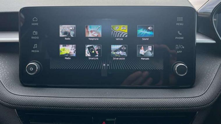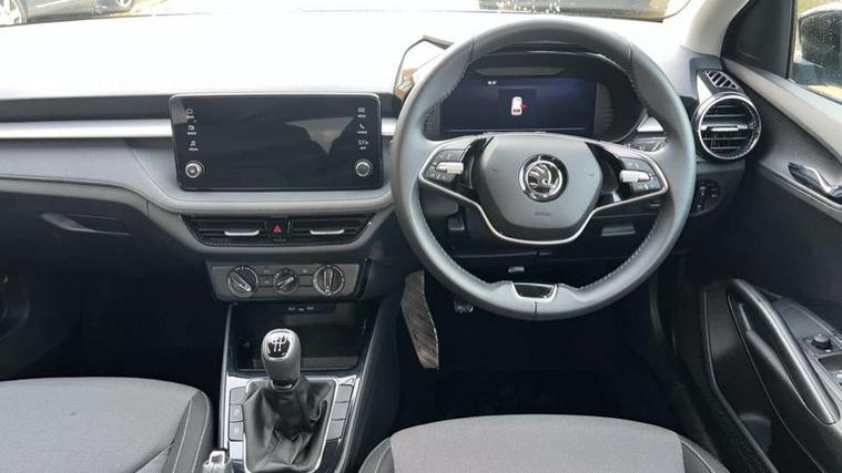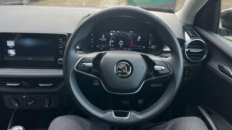 Advanced driver attention and drowsiness monitor, Bluetooth connection, Electromechanical power steering, Exterior temperature gauge, Service interval indicator, Traffic sign recognition, Virtual cockpit with 10.25" colour display, Wireless SmartLink for Apple CarPlay and Android Auto, 6 Speakers (4 in front and 2 in rear), Auxiliary socket for external MP3 player, DAB digital radio reception, Body coloured bumpers, Dimming rear view mirror with black frame, Door mirror integrated indicators, Front and rear electric windows, Front window wiper intermittent control, Headlight range control - Automatic, Ice scraper in fuel cap, LED daytime running lights with coming and leaving home feature, LED rear lights, Privacy glass, Rear LED fog light, Rear side wing doors, Rear window wiper with washing nozzles, Roof mounted spoiler, SKODA tailgate lettering in chrome, Third brake light, 2 reading lights in front and 2 reading lights in rear, 3 rear headrests, Backrest split and folding, Central console with removable cup holder and storage box, Chrome handbrake release button, Fabric upholstery, Front centre armrest, Gearshift knob/handle in leather, Grain satin black interior door handles, Hand brake lever handle in leather, Height adjustable front headrests, Height adjustable front seats, Height adjustable steering wheel, ISOFIX and TopTether anchorage points to the outer rear seats, ISOFIX and TopTether on the front passenger seat, Luggage compartment lighting, Manually adjustable lumbar support in front seats, Pollen filter, Rear seat bench unsplit, Single front passenger seat, Storm grey headlining, Sun visors with mirror and airbag label on passenger side, Textile floor mats, Ticket holder, Umbrella in drivers door, 3-point height adjustable front seats belts with pretensioner and force limiter, Automatic warning lights in case of crash, Driver and passengers airbag with switch off function, e-Call+, ESC including ABS, MSR, ASR, EDS, HBA and XDS, Front and rear seat belt warning, FRONT ASSIST (AEB City and AEB Inter Urban), Front side airbags, Head airbags, One tone horn, Pedestrian protection, Three rear 3-points safety seat belts with pretensioner and force limiter including stop function for outer rear seat belts, Tyre pressure monitoring system, Anti-theft alarm system including immobiliser, interior monitoring, backup horn, and towing protection, Central locking with radio remote control, interior controls, SAFE function and 2 foldable keys, Colour Edition air vents, Grain satin black central console cover, Metallic grey upper decorative trim, Satin black door and side trim panel in front, Textile Kota grey lower decorative inserts, Anti-theft wheel bolts protection, Super-low rolling resistance tyres,