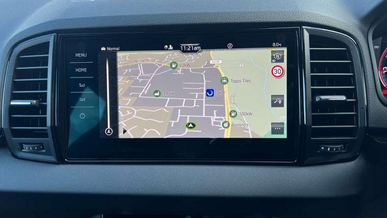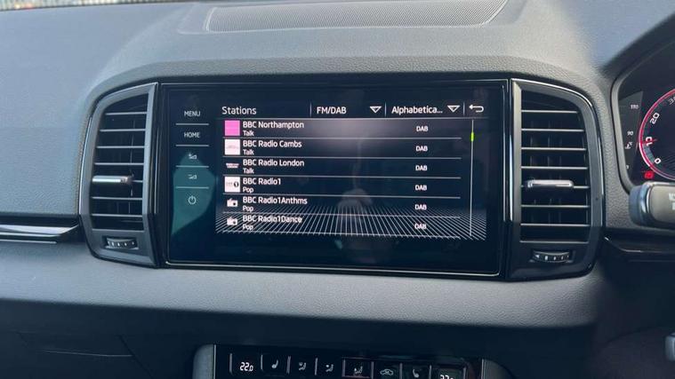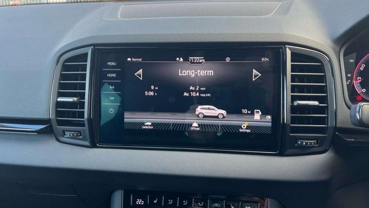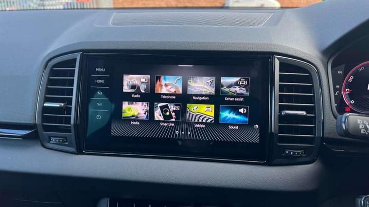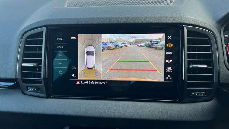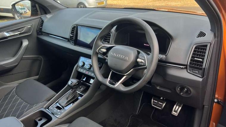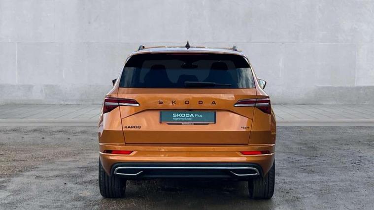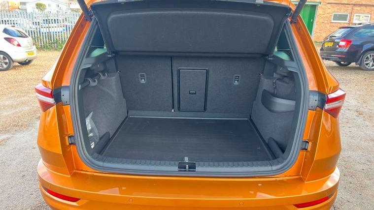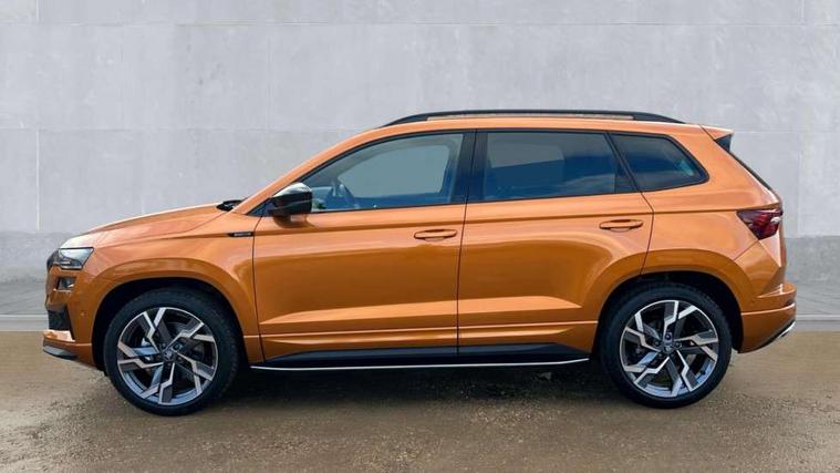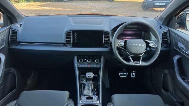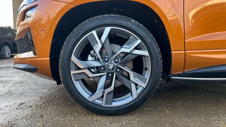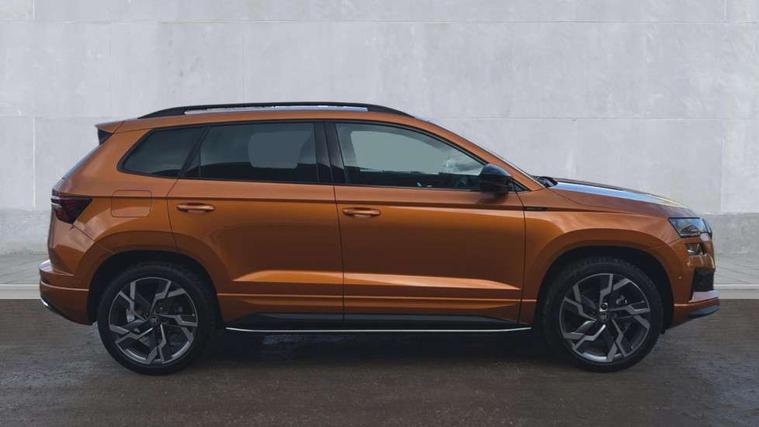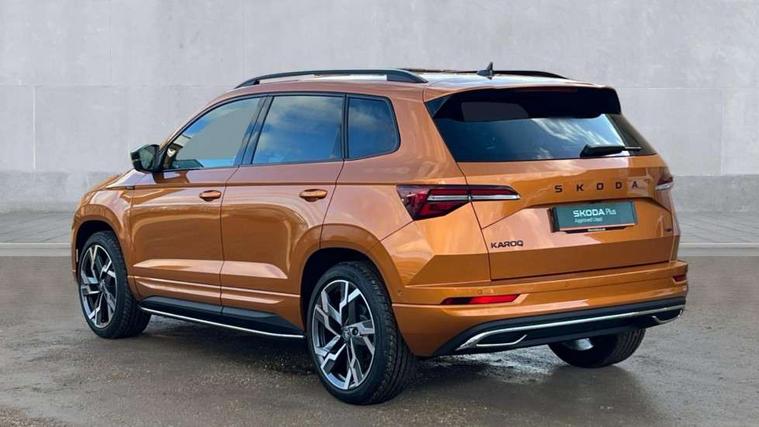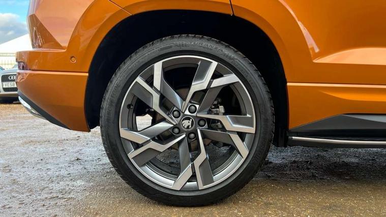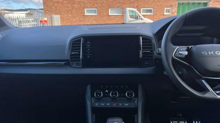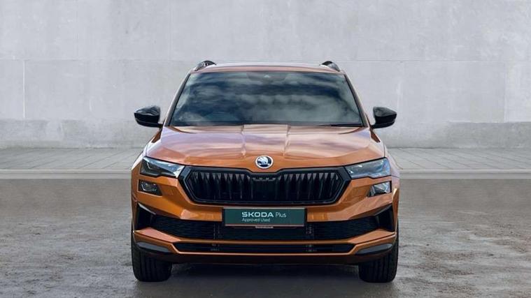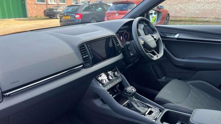 Advanced driver attention and drowsiness monitor, Emergency services call system, Outside temperature gauge, Sensor for driver assistance systems, Service interval indicator, SmartLink wireless for Apple and wired for Android, Start/stop system with regenerative braking, Traffic sign recognition, USB C Port x 2 in front centre console, Virtual Cockpit - 10.25" digital display, Virtual pedal with electrically operated boot door, Wireless smartphone charging, Diesel particulate filter, DAB radio with Bluetooth, USB connection, Acoustic glass, Aero front windscreen wipers with intermittent function, Auto dimming rear view mirror with light and rain sensors, Black door mirrors, Black electric window control buttons, Black radiator grille, Black roof rails, Body colour door handles, Electric front and rear windows with child proof lock, Extended rear roof spoiler, Front door steps with SportLine logo, Heated rear windscreen, LED daytime running lights, LED rear lights with high functionality welcome effect and dynamic indicators, Light assistant (coming/leaving home/tunnel light), Panoramic sliding sunroof, Plastic scuff plates in door apertures, Privacy glass, Protective door side sills in body colour, Rear diffuser, Rear side wing doors, Rear window wiper with washer system and intermittent control, Safety reflectors on front doors, Skoda lettering on tailgate in black, Sportline badge on front fender, Sports front and rear bumpers, Third brake light, Unique dark chrome design logo on alloy wheels, 1.5 litre bottle holders in driver and front passenger door panels, 12V socket in boot, 12v socket in front centre armrest with storage compartment and rear air vents, 2 x Tablet holder, 3 rear height adjustable headrests, 3 seat bench in 2nd row, 3 spoke sports leather heated multifunction steering wheel with DSG paddles, 4 foldable roof handles with rear coat hooks, Black floor carpet, Cargo elements in boot, Chrome inner door handles, Foldable hooks in the boot, Front head restraints, Height adjustable front three point seats belts with tensioners, Height/reach adjust steering wheel, Ice scraper, Illuminated glovebox, Illuminated luggage compartment, Interior noise suppression, Isofix child seat preparation for front passenger seat, Isofix child seat preparation outer rear, Manual lumbar support for front seats, Pen holder, Pollen filter, Rear backrest release from boot, Rear boot cover, Rear package tray, Rear reading lights, Rear seats fixed folding and divided 60:40, Rubbish bin door, Safety vest holder, Single front passenger seat, Skoda lettering on steering wheel, Sportline decorative inserts, Storage box in upper central dashboard closed, Sunvisors with illuminated vanity mirrors, Textile floor mats, Ticket holder, Titan black interior ceiling, Umbrella under passenger seat, Under passenger seat storage compartment, Columbus pack - Karoq, LED Interior lighting pack with Skoda welcome logo - Karoq, Light Pack - Karoq, Non Smokers pack, Performance pack - Karoq 4x4, Winter plus pack with heated front and rear seats - Karoq, Automatic door unlocking in case of crash, Automatic fuel cut off in case of crash, Driver airbag, Electronic parking brake with auto hold function, Emergency rear braking signal, ESC (incl. ABS+MSR+ASR+EDS+HBA+DSR+RBS+MKB), Front side airbags, Head airbags, Hill hold control, Knee airbags, Passenger airbag with switch-off function, Pedestrian monitor, Power operated child safety locks, Seatbelt reminder signalisation and pretensioner for all seats, Three point seatbelts rear, Two tone horn, Tyre pressure monitor, Alarm with interior monitoring, back up horn and tilt sensor with safe function, Electronic engine immobiliser, Keyless entry and start/stop, Remote central locking with 2 remote folding keys, Black air vent surround, Black centre console, carbon door decor, Satin black dashboard, Satin black door trim, 19" Sagittarius anthracite alloy wheels, Anti-theft wheel bolts protection, Breakdown and tool kit,