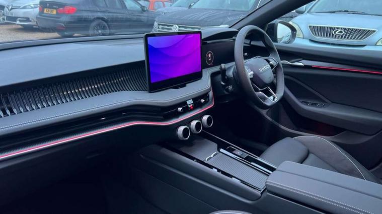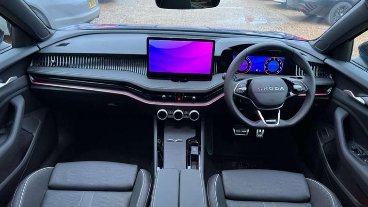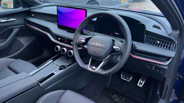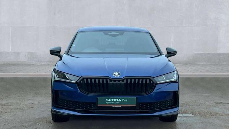13" touchscreen display with satellite navigation, 4x USB-C ports (2x in front centre console and 2x in rear) (45W), Adaptive cruise control with speed assist, lane assist plus and traffic tram assist, Blind spot detection with door exit warning, Bluetooth system, CareConnect and Emergency Call, ChatGPT functionality, Driver fatigue sensor, Easy boot close funtion, Front assist with extended predictive pedestrian protection, Front cross traffic assist, PAS, Quick start all heating software functionality, Stop/start engine system, Traffic sign recognition, Turn assist with evasive assistance, Virtual Cockpit - 10.25" digital display, Voice control system, Washer for rear camera, Wireless charging for one smartphone (15W) with cooling function, Wireless smartlink apple carplay, SmartLink+ android auto, Dynamic chassis control plus with progressive dynamic steering, DAB Digital radio, Display cleaner, FM radio connection, Web radio connection, Acoustic side windows and interior noise suppression, Backdrop lighting, Black exterior styling window and grille surrounds, Body colour door handles, Dynamic range control with poor weather light and integrated fog light, Electrically adjustable, heated, folding and driver side auto-dimming door mirrors with memory function, integrated indicators and logo projection, Frameless auto-dimming rear view mirror with USB-C, Gloss black door mirrors, Ice scraper in fuel tank cap, LED 3rd brake light, Light assist with High beam control, Light assistant (coming/leaving home/tunnel light), Privacy glass, Rear fog lights (x2), Rear side wing doors, Skoda lettering in black, Sportline badging, Sports bumpers, Windscreen wipers with rain sensor, 12V socket 1x centre console 1x boot, 14-way electrically adjustable, memory, front seats with 4-way pneumatic lumbar support, and extendable thigh support with smart comfort entry aid, 2x cargo elements in boot, 2x light in boot, 3 seat bench in 2nd row, 60:40 Split folding rear seats, Aluminium pedals, Bottle holders in the front doors 1.5 litre bottle and rear 1.5 litre bottle, Cup holder in front with easy open mat, Front armrest with storage box, Front sports seats, Heated and ventilated front seats, Height adjustable front and rear head restraints, Illuminated glovebox, Interior lights with control switches, Isofix child seat fittings in outer rear and front passenger seats, LED front and rear reading lights, Single front passenger seat, Skoda lettering on steering wheel, Storage compartment with cover, Storage pockets on back of front seats, Sun visors with illuminated vanity mirrors, Ticket holder on A Pillar, Tri zone climate control, Umbrella in driver's door, Light and view package - Superb, Transport package - Superb Hatchback, 3 rear seatbelts, 8 Airbags - Front driver and passenger, front side driver and passenger, centre, curtain front and rear, drivers knee, Crew protect assist, Driver and passenger seatbelts with warning light, Electronic parking brake, ESC including ABS, EBV, MSR, ASR, EDS, HBA, DSR, RBS, CBC, multi-collision brake (MKB) and Auto hold, Hill hold assist, Power operated child lock in rear doors, Alarm with interior monitoring tilt sensor and back up horn, Backrest remote release from trunk, Electronic engine immobiliser, Keyless start/stop, Remote central locking with SAFE system, Third key, Walk away locking, Decorative front door sills, 19" Torcular polished black alloy wheels with anti theft wheel bolts,