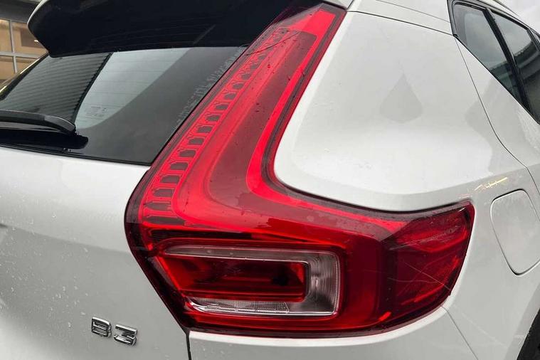 12.3" Progressive Driver Display, 9" centre console portrait touch screen, Adaptive cruise control, Adjustable steering wheel force, Android auto (Wired), Apple carplay (wired), Bluetooth handsfree system, Driver alert control, E-call, Front and rear parking sensors, Google automotive services - Enabled entertainment apps, navigation with google maps, voice recognition with google assistant, Intelligent speed assistance, Lane keeping aid, Oncoming Lane Mitigation, Power operated tailgate, Speed sensitive steering, Volvo cars services with app - Driving journal, emergency and breakdown call, engine remote start, remote door locking/unlocking and vehicle dashboard, Wireless/Inductive Mobile Phone Charging, Automatic transmission with start/stop and manual change functions, Dynamic chassis, DAB Digital radio, High performance sound, 8 speakers/250W, 2 front type C and 2 rear type C USB, Steering wheel mounted remote controls, Adaptive brake lights with high level LED brake lights, Auto dimming interior mirror, Auto folding and heated power door mirrors, Automatic headlamp levelling, Automatic LED Headlights + Active high beam incorporating daytime running lights, Colour coordinated door mirrors, Dark grey front grille with chrome surround, Front and rear electric windows, High Gloss silver front and rear skid plate, Home safe and approach lighting, Integrated roof rails in silver, Rain sensor with automatic windscreen wiper activation, Rear side wing doors, Rear wiper, Roof antenna, Roof spoiler, Visible VIN plate, 12V socket in front tunnel console and luggage compartment, 2-Zone electronic climate control with CleanZone air quality system and pollen filter, 3 seat bench in 2nd row, 3 Spoke tailored steering wheel with chrome trim, 60/40 versatile split folding rear seat, Centre console cupholders and storage, Charcoal carpet and floor mats, Charcoal headlining, City block textile upholstery, Front headrests, Glovebox bag hook, Heated front seats, Height adjustable passenger seat, Height/reach adjustable steering column, Height/tilt adjustable driver's seat, Integrated waste bin, Isofix attachments on outer rear seats, Load cover, Load protection net, Mid level illumination - Front footwell, luggage & glovebox compartment, front cabin courtesy & reading lights, illuminated vanity mirrors+ticket holder, Multi directional lumbar support for driver and passenger seat, Rear armrest with cupholders, Rear headrests, Single front passenger seat, Underfloor luggage compartment storage, 3x3 point rear seatbelts, City safety with steering support with Pedestrian + cyclist + front collision warning with full auto brake and rear auto brake, Driver and passenger airbags, Drivers knee airbag, Electronic parking brake with auto hold, First aid kit, Front and outer rear seatbelt reminder and pretensioners, Front seats SIPS airbags, Hill descent control - Off-road drive mode, Hill start assist, IC (Inflatable Curtains) - Full Length, Passenger airbag cut-off device, Power child locks on rear doors, Road sign information display, Run off Road Protection, SIPS (Side Impact Protection System), Slippery road and hazard light alert, Stability and Traction Control with Spin control, Engine Drag Control and Corner Traction Control, Tyre pressure monitoring system, Vehicle deceleration control with Anti-lock Brake System, Electronic Brake Distribution and Emergency Brake Assist, Warning triangle, WHIPS whiplash protection system - front, 2 x Key integrated remote control central locking including with deadlocking system and auto open/close windows, Anti-theft alarm including immobiliser/volume sensor + level sensor, Keyless start, Locking wheel nuts,