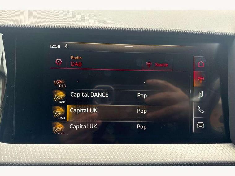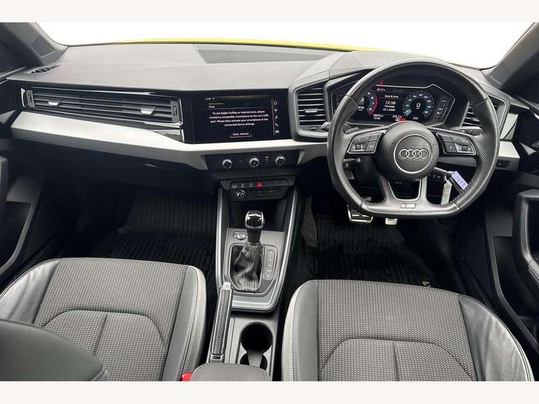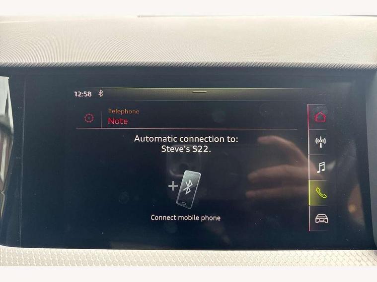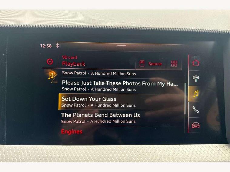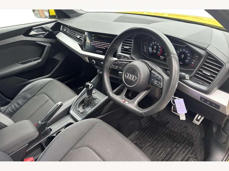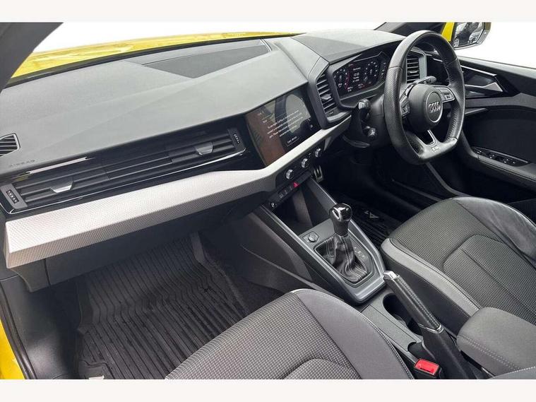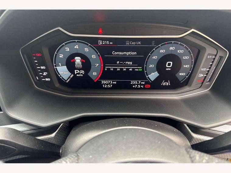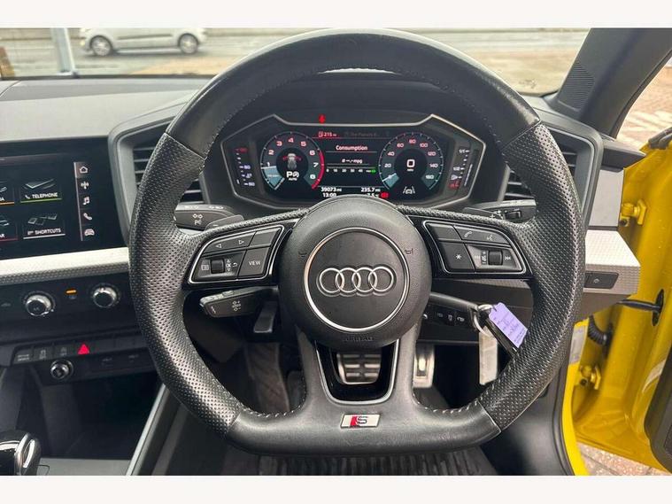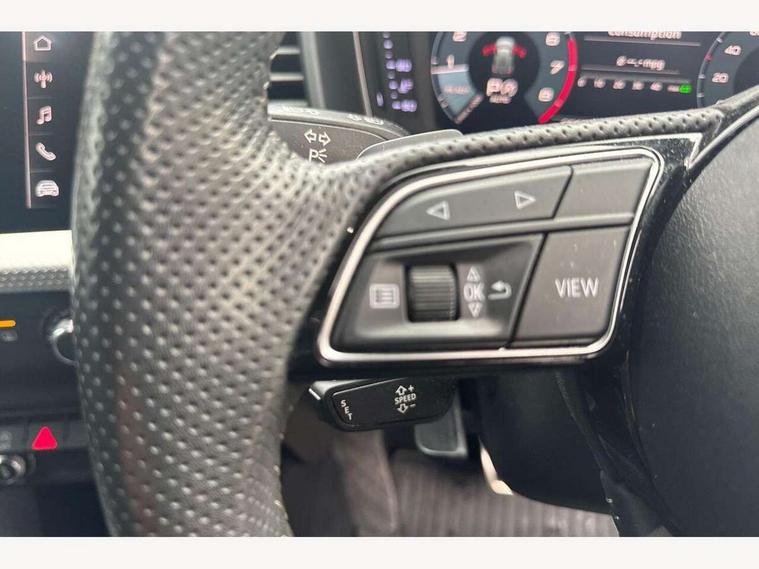 10.25" Digital instrument cluster display screen, Audi connect safety emergency and service including E-call, Audi drive select, Audi smartphone interface, Automatic start/stop system, Bluetooth interface, Driver's information system, Electromechanical power steering, Lane departure warning system, Service interval indicator, Speed limiter, Voice control system, Washer fluid level indicator, Sports suspension, 1 x SDXC card reader, 1 x USB type C and 1 USB type A charging points, Audi music interface, Bluetooth audio streaming, DAB Digital radio, MMI radio plus with 8.8" colour MMI display screen and MMI touch, Auto dimming rear view mirror, Body colour side sill mouldings, Body coloured bumpers, Body coloured door mirrors, Door sills with aluminium inlays and S Line logo, Electric front and rear windows, Front side air inlets in grained matt black and C frame in titanium black, Heat insulating glass windscreen and side windows, Heated rear windscreen, LED headlights with LED rear lights + dynamic rear indicators, Matt aluminium silver tailpipe trim, Matt black radiator grille frame, Matt platinum grey in front spoiler clip and rear diffuser clip, Rain and light sensors, Rear fog lights, Rear wiper, S line badges on front wings, S line exterior bumpers, S line roof spoiler, Side air inlet frames titanium black, Side front spoiler lips in grained matt black, 12V socket in centre console with two cup holders, 3 rear seats, Black cloth headlining, Driver and passenger seat with manual height adjust with forward and backwards adjustment, Front and rear black floor mats with contrast stitching in fine silver, Front head restraints, Height and reach adjustable steering wheel, ISOFIX child seat mounting in front passenger and rear outer seats, Leather gear knob with aluminium trim, Leatherette handbrake grip, Luggage compartment light with front and rear reading lights, Lumbar adjustment for front seats, Rear head restraints, Split folding rear seats, Stainless steel pedals, 3x3 point rear seatbelts, Audi pre-sense front with pedestrain and cyclist recognition, Brake assist function, Driver and front passenger airbag with front side and head airbags, Electronic Stability Control including ABS, EBD, ASR and EDL, Front and rear seatbelt reminder, Front passenger airbag deactivation switch, Hill hold assist, Seatbelt height adjustment for front seats, Seatbelt monitoring, Tyre pressure warning light, Warning triangle and first aid kit, Anti theft alarm, Anti theft wheel bolts and loose wheel warning, Immobiliser, Remote central locking with 2 remote folding keys, Aluminium trim for control switches, air vents and digital instrument cluster, Silver grey inlays polygon structure in diamond paint finish, Structured grey accent areas including air vents, door handle recesses and centre console in quartz paint finish,
