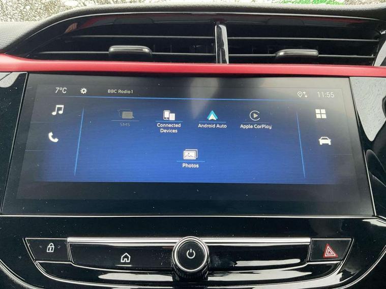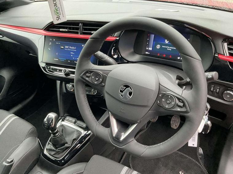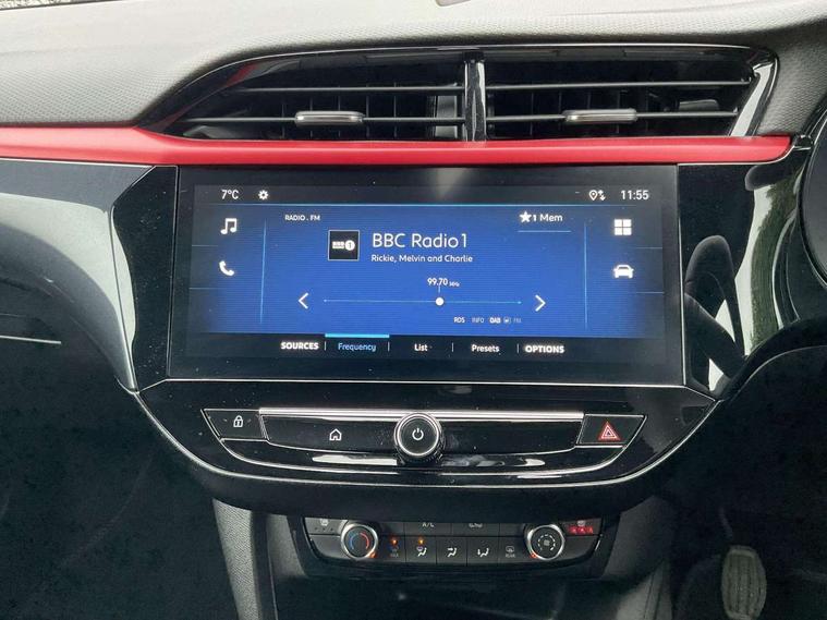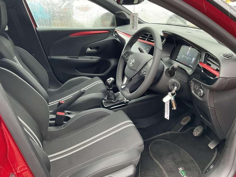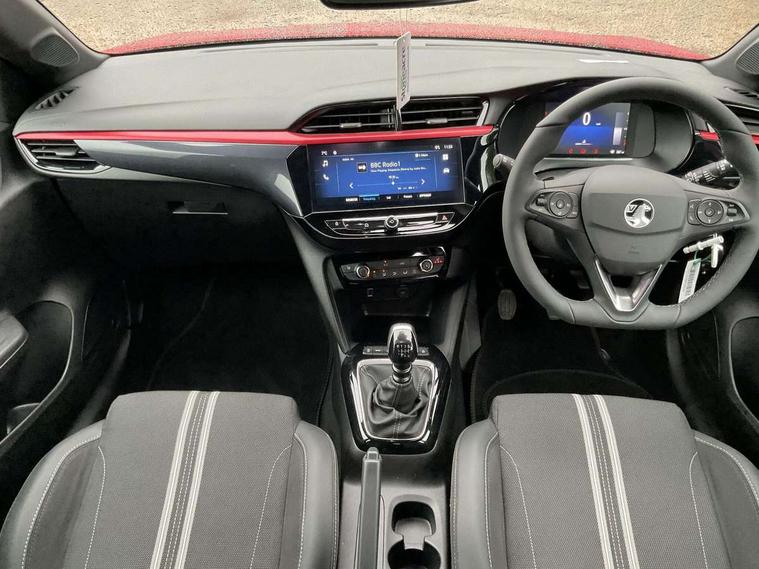 7 inch digital instrument cluster display, Breakdown call (b-call), Central facia display with digital clock, outside air temperature and audio information, Cruise control with intelligent speed limiter, Driver drowsiness alert system, E-call, Engine oil life indicator, Front camera system, Instrumentation - Speedometer, rev counter, low fuel gauge warning light + water temperature gauge warning light, Lane departure warning, Lane keep assist, Lights on audible warning, Multi function trip computer, Pre conditioning of vehicle temperature, RDS with traffic programme, Rear parking distance sensors, Remote check of battery level programming and charge management, Service indicator, Smartphone projection, Speed sensitive power steering, Speed sign recognition, Start/stop system, Vauxhall connect box, Vehicle status and information, Wireless Apple CarPlay/Android Auto, Electronic returnless fuel system, Petrol Particulate Filter, Under body shield for aero, AM/FM stereo radio, Bluetooth A2DP audio streaming, DAB Digital radio, Multimedia with 10-inch touchscreen, Six speakers, Steering wheel audio, phone and cruise controls, USB type C port, 3rd brake light, Automatic headlight control system, Black door mirror housings, Black lower side window mouldings, Black rear griffin badge and model lettering, Body colour door handles, Body colour rear bumper, Bonnet/headlight/wiper structure, Corsa lettering in tailgate, Dark tinted rear side windows + tailgate window, Electrically adjustable and heated door mirrors, Electrically operated front and rear windows with safety auto reverse and one touch up/down facility, Electrochromic automatic anti-dazzle rear view mirror, Flexible roof mounted aerial, Glazed tailgate and heated rear window with wash/wipe facility, Halogen tail lamps, Hazard warning lights, Headlamps for left side traffic, High beam assist, High gloss black finish B pillar, Intelli-LED headlights, LED daytime running lights, Rain sensitive windscreen wipers, Rear fog lamp, Rear reversing lights, Rear side wing doors, Rear wiper, Solar heat absorbing windscreen and windows, Sports front and rear body styling for upper and lower bumper design, Two speed windscreen wipers with variable intermittent wipe, Windscreen and side window demist vents, 12V power sockets, 3 bench rear seats in 2nd row, 4 speed fan with illuminated controls, 6 way manual adjustable co-driver seat height up/down, reach fore/aft, backrest upright/recline, 6 way manual adjustable driver seat height up/down, reach fore/aft, backrest upright/recline, 60/40 split folding rear seat, Air conditioning with air recirculation facility, Banda cloth upholstery, Black headliner, Cabin particulate filter - removes dust, airborne particles and pollen, Comfort front seats, Driver/passenger sunvisors with vanity mirrors + covers, Flat bottomed steering wheel, Four adjustable facia vents, Front cupholder, Front headrests, Height adjustable head restraints, Illuminated glovebox with lid, Interior courtesy light, Internal chrome door handles, LED boot light, Polyurethane gear knob/lever, Reach and rake adjustable steering column, Rear cupholder, Rear headrests, Right hand drive (RHD), Single dome lamp with dual front reading lamps, Single front passenger seat, Two litre open door pockets, Vegan leather steering wheel, YES interior badging, Winter pack - Corsa, 3 rear 3 point seatbelts, Anti-lock braking system (ABS), Automatic emergency braking with pedestrian detection, Cornering brake control, Deactivation switch for front passenger's airbag, Drag torque control, Driver and front passenger airbags, front seat side impact airbags, full size curtain airbags, EBD - Electronic brakeforce distribution, Electrical child lock system in rear door latch, Electronic Stability Programme (ESP), Emergency brake assist, Forward collision alert, Front seatbelt unfastened audible warning and warning light, Front ventilated disc brakes - 381mm, Hill hold and start system, ISOFIX child seat mountings incorporating top tether anchor points located on second row rear seats, Manual handbrake, Rear drum brakes - 203mm, Seatbelt pretensioners, Single tone horn, Straight line stability control, Traction control, Tyre deflation detection system, 2 keys one folding with integral remote, Electronically protected audio equipment, Engine deadlock and immobiliser, Freewheeling door locks, Locking wheel nuts, Remote control central locking, Remote locking fuel filler flap, Steering column lock, Visible vehicle identification number, 16" Diamond-cut hi-gloss black alloy wheels - Yes Petrol, Tyre repair kit,