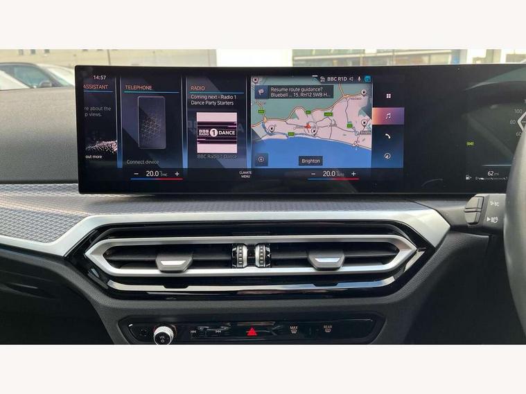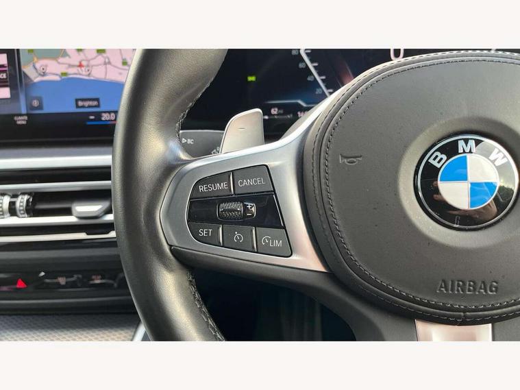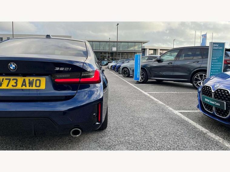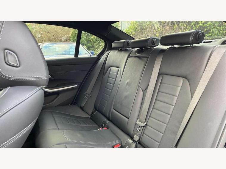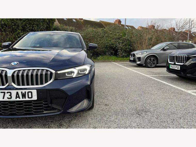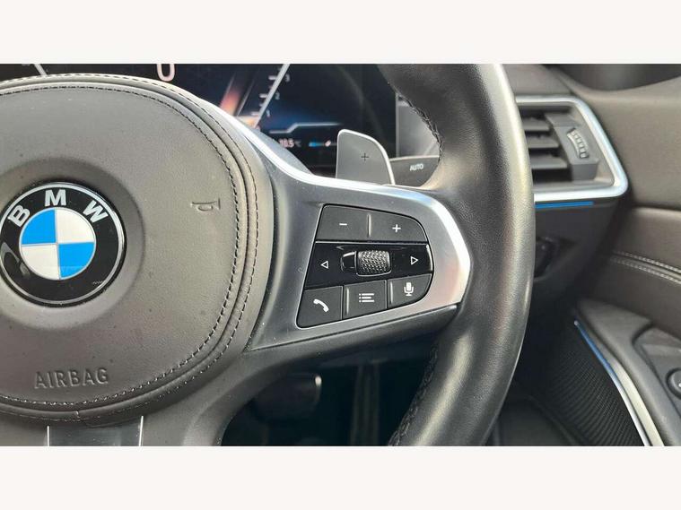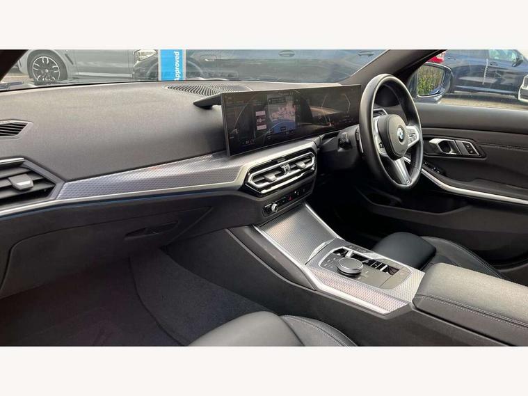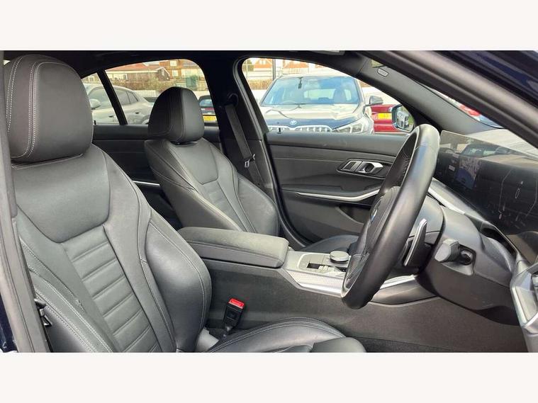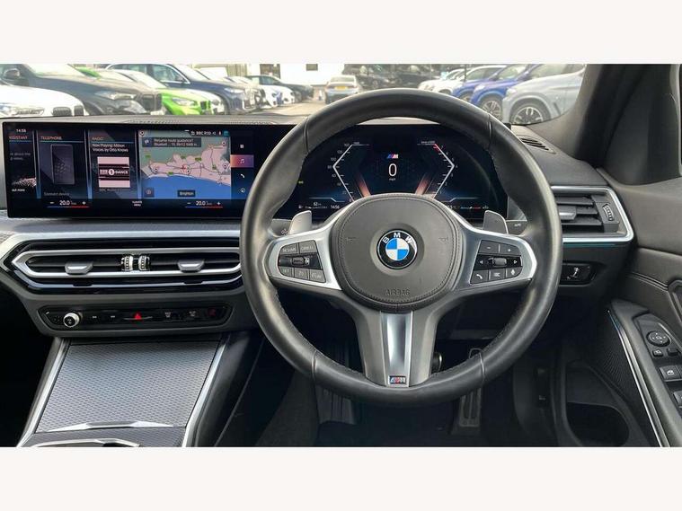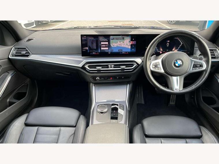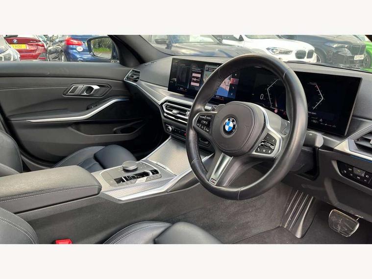 Active guard plus, Attentiveness assist, Automatic Start/stop button, BMW iDrive, BMW Teleservices, Condition based service, ConnectedDrive Services, Driving experience switch, Live cockpit plus with Navigation + 12.3" instrument display + 14.9" display, Intelligent voice assist, 2 USB, 4G LTE connect, Oil sensor for level and grade, Preparation for driver assistance, Shifting point display, Variable sport steering, Double joint spring strut front axle, Fuel tank breather system, M sport suspension, Sport automatic transmission with steering-wheel mounted gearshift paddles and launch control, DAB tuner, 3rd brake light, Acoustic glazing, Automatic headlight beam throw control with load dependent regulating reaction, dynamic compensation of braking dive and acceleration squat, BMW emblem, engine compartment lid and tailgate, Body colour roof fin, Door sill strips, Electric windows - front and rear, with open/close fingertip control, anti-trap facility and comfort closing, Follow me home headlight function, Front and rear bumper system with replaceable deformation elements, Front apron plastic in body colour, Fuel filler flap - right rear in body colour, Heated washer jets, High gloss shadow line exterior trim, Illuminated bow type door handles in body colour drivers side with door lock, Interior rear view electrochromatic mirror with automatic anti dazzle function, LED headlights with LED daytime running lights and LED turn indicator, LED rear lights, Licence plate panel integrated into front bumper and tailgate, Matt black B-pillar finsher, Matt black window recess cover, Model designation on right side of tailgate, One piece front bumper cover including towing eye cover in body colour, Rain sensor with automatic headlight activation, Rear boot, Rear side wing doors, Reversing lights, Side frame decorative moulding black matt, Visible exhaust tailpipe finisher, Welcome lights in interior and door handle area, 12V power socket in front storage compartment, 2 front cupholder in centre console with clamping elements and matt black inlay, 3 seat bench in 2nd row, 3 zone automatic air conditioning, 40:20:40 split folding rear seat with loading system, Ambient inside door handle light, Ambient light design projected onto the left and right entering and exiting area, Ambient lighting front and rear with 9 selectable colours, Ambient storage compartment lighting in the centre console, Anthracite headlining, Armrest integrated in front and rear door trim + front centre console armrest, BMW ID, Contour lighting in instrument panel and door trim panel, Cruise control operation in steering wheel, Driver backrest width adjustment, Folding rear centre armrest with 2 cupholders, Front and rear ambient footwell lighting, Front and rear door exit lighting (left / right), Front and rear headrests, Front and rear reading lights, Front and rear velour floor mats, Front sport seats, Heated front seats, Height adjustable mechanically and infinitely variable steering column, Illuminated armrest storage compartment, Illuminated glove compartment, Illuminated luggage compartment, Lashing eyelets in luggage compartment, M Sport multifunction leather steering wheel, Make-up mirror lights, Single front passenger seat, Standard seat for driver and passenger with manual adjustment, Sunvisors with vanity mirrors and ticket pocket, Toolkit located in luggage compartment, Connected pack professional - 3 Series Saloon/Touring, Interior and exterior mirror pack - 3 Series Touring/Saloon, M Aerodynamics package - 3 Series Saloon/Touring, M sport exterior styling pack - 3 Series Saloon/Touring, Storage compartment pack - 3 Series Saloon/Touring, 3x3 point rear seatbelts, BMW emergency call, Child locks on rear doors, Crash sensor activating of airbags, Unlocking doors, hazard warning lights, interior light, safety battery terminal, Driver and front passenger with seat occupancy detection for driver's and passenger side, Driver and passenger side airbags, body protection at side and airbags deploy from seat backrests, Dynamic brake control, Dynamic stability control + (DSC+) - Anti-lock Braking System (ABS) with brake assist and cornering brake control + Automatic Stability Control (ASC), Dynamic Traction Control - DTC, Electric parking brake including automatic hold function and automatic release of the parking brake when driving off, Electronic differential lock control (EDLC), Head airbags in 1st and 2nd row, head protection at side, curtain airbags open from headliner above 1st and 2nd row, Plastic fuel tank, Side impact protection, Tyre pressure monitoring with three level warning strategy, Ventilated front and rear disc brakes, Warning triangle and first aid kit, Alarm system, Centre lock switch, Closing system with central locking, Electronic vehicle immobiliser,