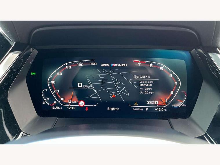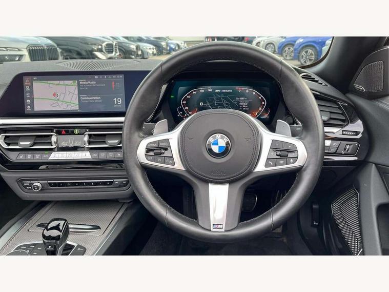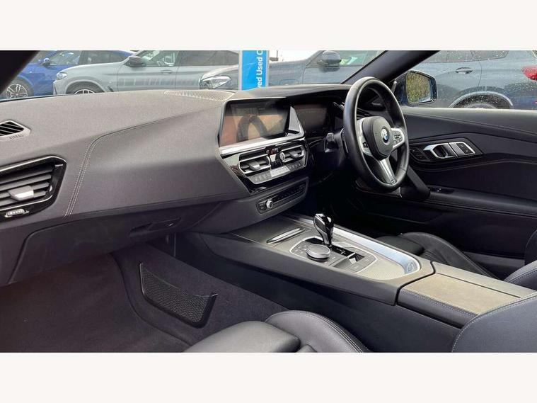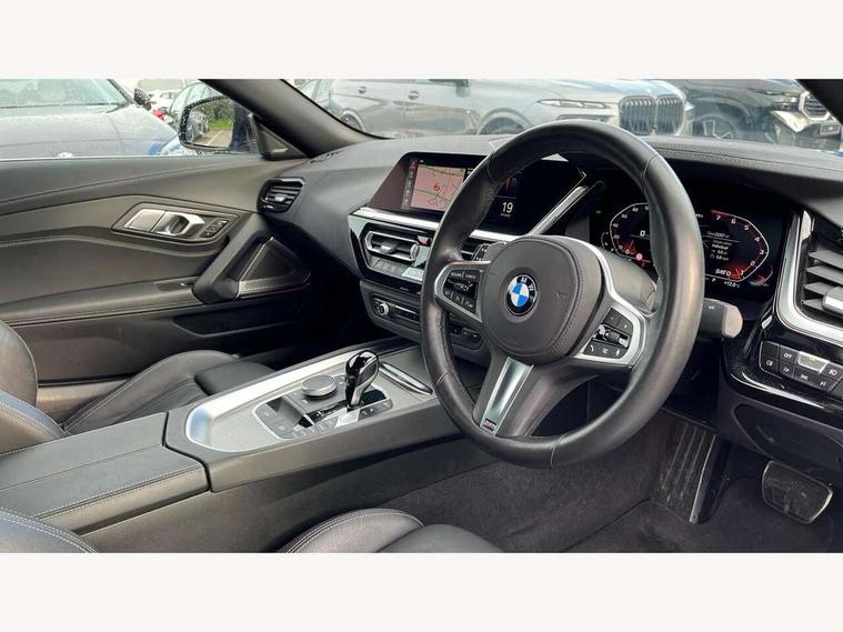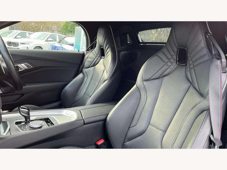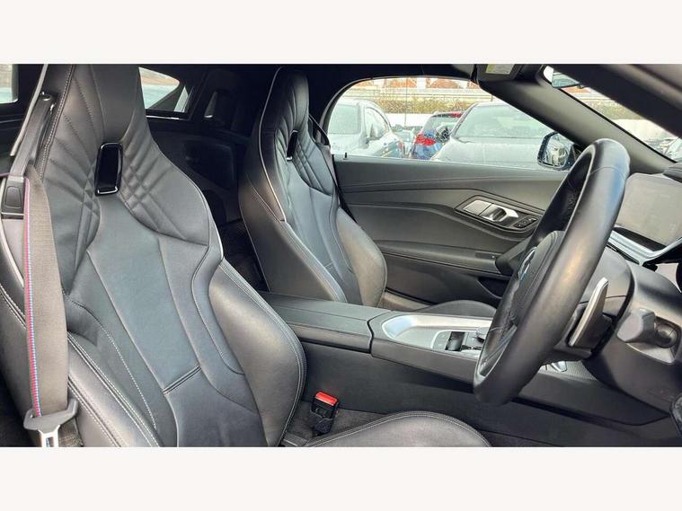 Active guard plus incl speed limit assist, lane departure warning with steering impulse and front collision warning with brake intervention, Auto start-stop, BMW ConnectedDrive online services, BMW Live Cockpit Professional with 10.25" high resolution instrument and control display, BMW Teleservices, Condition based service, Electric power steering, Fuel gauge, IDrive, Instrument cluster, Language version English, Oil sensor for level and grade, warning by check control system, Oil temperature gauge, Optimum shift indicator, Pull away assistant, Run flat indicator, Smartphone integration, Speed limiter, Speedometer with mph readout, Tachometer, Variable sport steering, Adaptive M suspension, Double joint spring, Double VANOS, Drive performance control with ECO PRO comfort + sport mode, Eight speed steptronic sport transmission, with gearshift paddles, Fuel tank breather system, High precision injection, M Sport differential, 2x USB Type C ports in front centre console for charging and data transfer, 2x USB Type C ports in rear centre console for charging, DAB tuner, USB connection, 3rd brake light, Automatic headlight beam throw control with load dependent regulating reaction, dynamic compensation of braking dive and acceleration squat, Cerium grey exterior mirror housing, Door sill finishers with M designation, Door sill strips, Dynamic braking lights comprising activated hazard warning flashers and third brake lights, Electric heated rear window, Exhaust tailpipe - split left and right, Exterior mirrors - electrically folding with anti-dazzle, Fingertip control / anti-trap function on electric window, Follow me home headlight function, Front and rear bumper system with replaceable deformation elements, Green tinted heat protection glazing, Heated windscreen washer jets, High gloss black window recess finisher, High gloss shadow line, Interior rear view electrochromatic mirror with automatic anti dazzle function, Kidney grille in mesh design, LED daytime driving lights, LED Indicators, LED rear lights, Lightweight engineering, Model logo, Rain sensor, Rear boot, Tailgate release handle, Two stage brake force display, Visible VIN plate, Welcome lighting, Windscreen wipers with adjustable interval, 12V power socket in front storage compartment, Activation of interior lighting, Additional storage compartment - 4 lashing eyes, strap and storage net, Ambient lighting, Battery in luggage compartment, BMW ID, Child seat ISOFIX attachments for passenger seat, Cupholder, Driver and front passenger heated seats, Driver and front passenger lumbar support, Electrically adjustable front driver and passenger seats with memory, Front and rear armrests integrated in door trim + centre console includes storage compartment and rear centre armrest includes 2 cupholders, Front and rear velour floor mats, Front headrests, Height adjustable mechanically and infinitely variable steering column, Illuminated glovebox, Luggage compartment light, M sport leather steering wheel, M Sport seats for driver and passenger, Microfilter and active carbon filter, Multifunction steering wheel, Single front passenger seat, Sunvisors with vanity mirrors and ticket pocket, Two zone automatic air conditioning, Vernasca leather upholstery, Connected package professional - Z4, 3 point front seat belts, Airbags - Front driver and passenger, front and side impact protection, Anti lock braking system (ABS) with brake assist, Automatic Stability Control (ASC), BMW emergency call, Brake energy regeneration, Braking readiness, Cornering brake control (CBC), Crash sensor activating central locking release, hazard warning lights, fuel cut off, interior lighting, safety battery terminal clamp and airbags, Deactivation of fuel pump in the event of a crash, Dry braking, Dynamic brake control, Dynamic stability control + (DSC+), Dynamic Traction Control - DTC, Electromechanical parking brake with automatic drive away release and auto hold function, Front and rear brake discs with interior ventilation, Head airbags, M Sport brakes with blue calipers M designation in front, M sport seatbelt, Plastic fuel tank, Pyrotechnic seat belt tensioners, Roll over protection, Seat belt force limiter, Seat belt stopper, Seat occupancy protection, Two tone horn, Tyre pressure monitoring with three level warning strategy, Warning triangle, Centre lock switch, Closing system with central locking, Electronic vehicle immobiliser, Start/stop button with Comfort Go keyless engine start and auto Start/stop deactivation button, Thatcham cat 1 remote alarm, Sensatec dashboard, 19" Double spoke M light alloy wheels in bicolour cerium grey - style 800M, Reduced rolling resistance tyres, Tool kit, Tyre repair kit,
