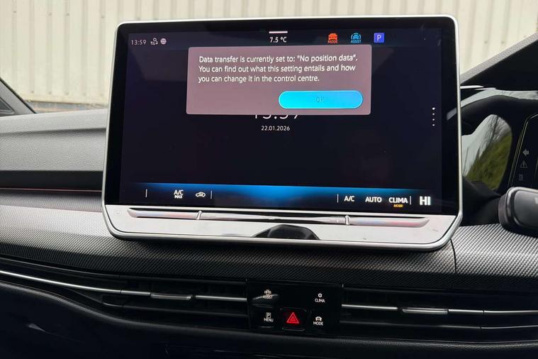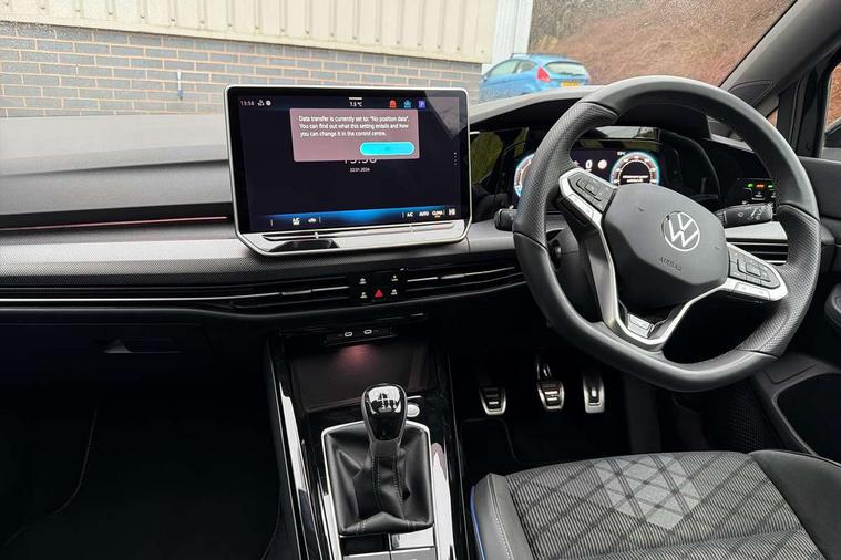 Activated carbon canister, Adaptive cruise control (ACC), Advanced driver attention and drowsiness monitor, Dynamic road sign display, Dynamic steering, E-Sim card for online connectivity, eCall emergency call system, Multi-color Digital cockpit pro, selection of different info profile possible, Multifunction front facing camera for distance control, Navigation system, Oncoming vehicle braking when turning including swerve support, Preparation for light assist system, Speed limiter, Speedo, rev counter, electronic odometer, trip, service interval display, exterior temperature and fuel gauge, Traffic jam assist, Voice enhancer and voice control, Warning signal and warning light for front and rear seatbelts not fastened, We connect plus preparation, We connect preparation, Wireless app connect, Petrol Particulate Filter, Start-stop system with battery regeneration (recuperation - energy recovery during braking), XDS electronic differential lock for improved traction and handling, 2 USB C ports in front, 2 USB charging sockets on the centre console in the rear charging capacity upto 45W, Comfort telephony + wireless charging, without wireless aerial connection, Digital radio reception (DAB), Diversity antenna for FM reception, Gaming platform via car app, Infotainment system with 12.9" display, Mobile phone interface with inductive charging feature, 3rd brake light, Auto headlights, Automatic headlamp activation with Coming home and Leaving home feature, Body colored bumpers in R-Line style, Body colour door handles, Exterior ambient lighting with illuminated door handles, Exterior mirrors convex on the left and aspherical on the right, Front and rear electric windows, Heat insulating windshield made of laminated glass, LED daytime running lights, Rear exhaust tailpipe, Rear fog light on one side and reversing lights on both sides, Rear side wing doors, Rear windscreen washer and wiper with interval delay, Remote electrically foldable door mirrors, puddle lights and reverse activated passenger's door mirror, Welcome light with surround lighting, 12V socket in front centre console, 12V socket in luggage compartment, 3 rear head restraints, 3 seat bench in 2nd row, Ambient lighting with 30 colour including LED light unit in front footwell with selectable light colour, Brushed stainless steel pedals, Carpet mats, front and rear, Chrome plated radiator grille inserts, air vent surrounds and light switch surrounds, Front centre armrest, Integrated front head restraints, ISOFIX anchors for child seats on outer rear bench seats and on front passanger seat compatible for i-Size, Leather gearshift handle, Luggage compartment lighting, Premium sports seats in front, Rear cupholder and loadthough, Single front passenger seat, Soul black instrument panel, Split folding backrest with centre armrest and unsplit rear seat bench, Storm grey roof lining, Sun visors with illuminated vanity mirrors, 3 point height adj front seatbelts + pretensioners, 3 rear three point seatbelts, ABS, Autonomous emergency braking front assist with pedestrian and cyclist monitoring, Child locks on rear doors, Driver and front passenger airbag with front passenger airbag deactivation, Electronic parking brake with auto hold, ESC (Electronic Stability Control), Extended pedestrian protection measures, Rear disc brakes, Two tone horn, Tyre pressure loss indicator, Volkswagen roadside assistance, Anti theft wheel bolts, Preparation for alcohol interlock, Decorative inserts carbon grey for dashboard and front door trim panels,