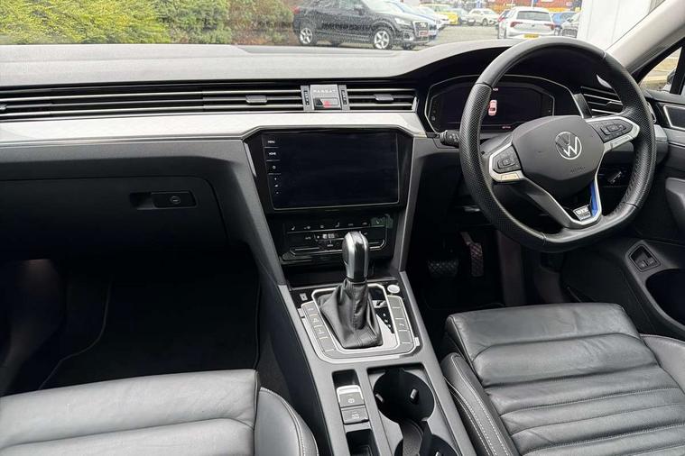 Adaptive cruise control including Front Assist, radar sensor controlled distance monitoring system, City emergency braking system, Driver alert system, Driver profile selection, Exterior temperature gauge with frost alarm, Lane assist, Low washer fluid warning light, Multifunction computer includes visual gear, One touch indicator turn signal, Proactive occupant protection, Security and service including e-call, Socket AC Type 2, Speed sensitive power steering, Speedo and rev counter, electronic odometer, trip, service interval display and fuel gauge, Start/Stop function, Traffic jam assist, Voice activation, Warning buzzer and light for front seatbelts unfastened, Wireless app connect, Battery regeneration during braking, Electronic engine sound without deactivation, Exterior e-sound, Misfuel prevention device, Petrol Particulate Filter, Two charging cables 16amp for wallbox/chargepoints (mode 3) and 10amp mains charge cable (mode 2), Aerial for radio integrated into rear windscreen, DAB Digital radio receiver, Auto dimming interior rear view mirror, Automatic headlights with dusk sensor, Automatic leaving home and manual coming home lighting functions, Black radiator grille with chrome louvres, Body colour bumpers, Body colour door handles, Body coloured door mirrors with intergrated indicators, Charging point inlet on radiator grille, Chrome side window surrounds, Front and rear electric windows, Fully galvanised body, Gloss black finish on B pillar, Heated rear window, High level 3rd brake light, LED matrix headlights with dynamic curve + light assist, LED daytime running lights, front fog lights with static cornering, animated indicator, LED rear lights, LED rear number plate lights, Rain sensor, Rear side wing doors, Rear tinted glass from B pillar backwards, approx 65% tinted, Remote electrically adjustable and foldable heated door mirrors including automatic dimming function on drivers side door mirror puddle lights, Trapezoid exhaust tailpipes, left and right, Unique GTE badging, Unique GTE radiator grille with blue strip, Warning lights for open tailgate and doors, White instrument lighting, Windscreen wipers/ intermittent wipe + 4 position delay, 12V socket in front centre console, 12V socket in luggage compartment, 3 seat bench in 2nd row, 60:40 split folding rear seat with backrest, Climate control - 3 Zone electronic air conditioning with automatic air recirculation, Driver's door storage compartment for 1.0 litre bottle, Driver/front passenger seat height adjustment, ErgoComfort seat with seat cushion tilt adjustment, thigh support and electric backrest adjustment on the driver side, Front + rear carpet mats, Front and rear interior lighting with delay and dimming function, Front centre armrest with storage compartment and two rear air vents, Front cupholders x2 with covers, Front passenger storage compartment for 1.5 litre bottle, Front seats with lumbar adjustment, Height adjustable rear seat head restraints (x3), Height/reach adjust steering wheel, Illuminated vanity mirrors, Isofix child seat preparation, outer rear seats, Leather trimmed three spoke multifunction steering wheel and gear knob with blue contrast stitching, Load lashing points x 4 in luggage compartment, Load through provision, Lockable, illuminated, cooled glovebox, Luggage compartment lighting, Rear seat centre armrest with storage compartment, Single front passenger seat, Storage compartment in rear doors, Storage compartment in roof console with cover, Vienna leather upholstery + heated front seats + heated windscreen washer jets, 3x3 point rear seatbelts, ABS (Anti locking brake system) includes BAS (Brake assist) and EBD (Electronic brake pressure distribution), Automatic post collision braking, Blue brake callipers, Disc brakes front and rear, Door open warning reflectors, Driver/Front Passenger airbags, Drivers and front passengers safety optimised head restraints, longitudinal and height adjustable, Drivers knee airbag, Electronic parking brake with auto hold, First aid kit, Front and rear passenger curtain airbags, Front passenger airbag deactivation switch, Front side impact airbag, Height adjustable front 3 point seatbelts + pretensioners, Hill hold function, Pre crash preventive occupant protection, Rear door child safety locks, Rear seat side impact airbags, Rigid safety cell with front and rear crumple zones, Tyre pressure loss indicator, Volkswagen roadside assistance, Warning light for rear seat belts if unfastened, Alarm with interior protection and deactivation via infotainment system, Electronic engine immobiliser, Chrome air vent and instrument surround, Cross hatch decorative inserts in dash and door panels, Unique GTE instrument cluster, Tyre mobility kit,