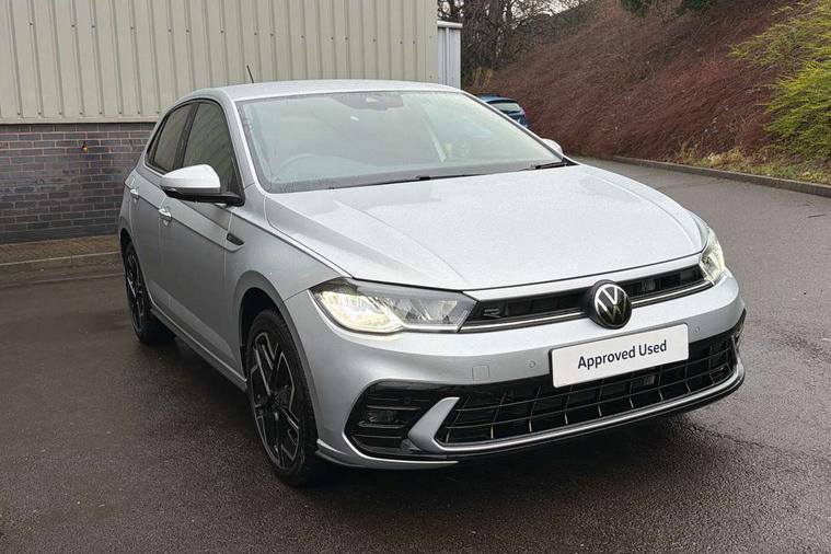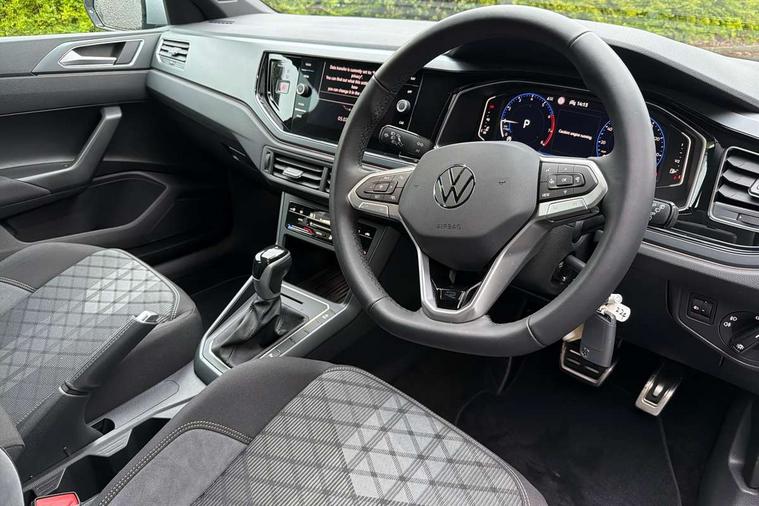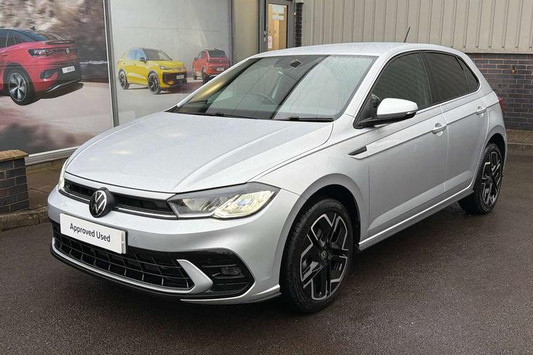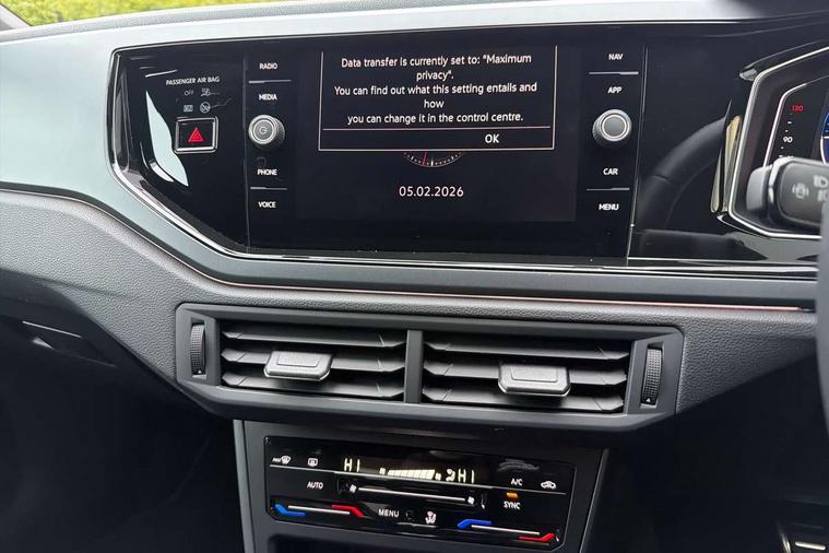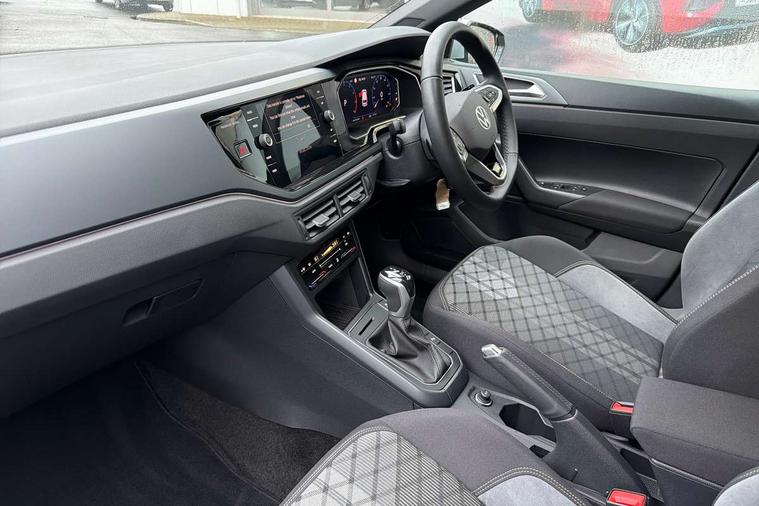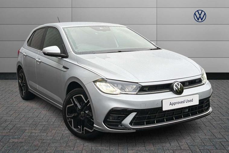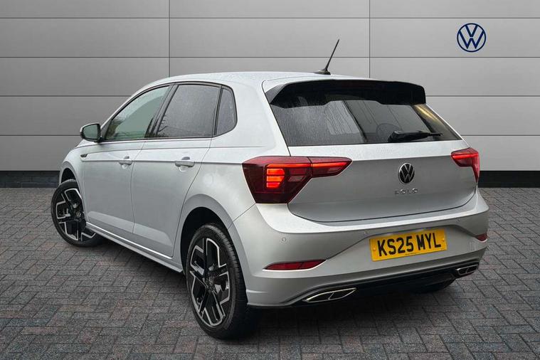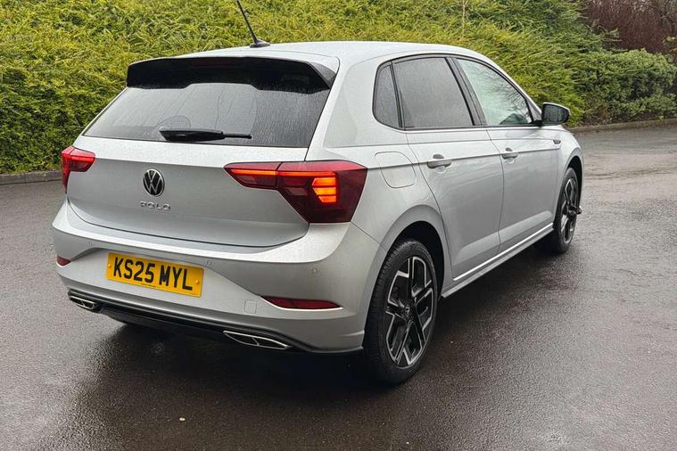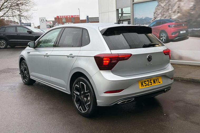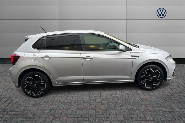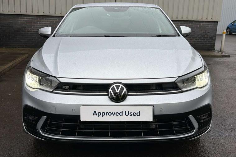Adaptive cruise control with follow-to-stop and speed limiter, Advanced driver attention and drowsiness monitor, Bluetooth mobile phone interface, Digital Cockpit Pro with 10.25" Display, Dynamic road sign display, Emergency call service, Multifunction camera, Power assisted speed sensitive steering, Preparation for We connect and We connect plus, Speedo and rev counter, electronic odometer, trip, service interval display and fuel gauge, Standard rear axle, Travel Assist - Lane keeping system and traffic jam assist, Travel assist including emergency assist, Trip computer, Warning signal and warning light for front and rear seatbelts not fastened, Washer fluid level indicator, Wireless app connect, Front wheel drive, Rear shock absorpion, Start-stop system with battery regeneration (recuperation - energy recovery during braking), DAB Digital radio, Diversity antenna for FM reception, Front and rear 6 speakers, Body colour bumpers, Body colour door handles, Electric front windows, Front scuff plates with R-Line logo, Heat insulating glass windscreen, Power folding adjustable/heated exterior mirrors and front passenger exterior mirror lowering function, Rear electric windows, Rear fog light, Rear side wing doors, Rear windscreen washer and wiper with interval delay, Third brake light, 12V power socket in centre console, 2 USB-C ports in the front, 2 USB-C charging sockets on the center console in the rear, 3 rear head restraints, 60/40 split folding rear seat and rear seat bench not split, Air care climatronic air conditoning system with active combination filter and 2-zone temperature control, Black roof lining, Carpet mats, front and rear, Chrome plated radiator grille inserts, air vent surrounds and light switch surrounds, Door and side trim panel, Driver and front passenger seat height adjustment, Driver/passenger sunvisors with illuminated vanity mirrors, Front centre armrest, Front footwell illumination, Front seat backrest storage pockets, Front sports comfort seats, Handbrake lever handle in leather, Headliner in recycled material, Isofix child seat preparation easy-fit (for two outer rear seats, and front passenger seat) compatible with I-size, Karoso artvelours cloth upholstery, Leather trimmed gear knob, LED interior light with switch off delay and dimmer, 2 reading lights front and rear, Luggage compartment cover, Luggage compartment floor, Luggage compartment lighting, Lumbar adjustment for front seats, Single front passenger seat, Stainless steel pedals, Standard pedal cluster, Three spoke leather wrapped multifunction steering wheel with shifting paddles, Light and sight pack - Polo R-Line/Black Edition, 3 point height adj front seatbelts + pretensioners, 3x3 point rear seatbelts, ABS, Driver and front passenger airbag with front passenger airbag deactivation, Drivers and front passengers safety optimised head restraints, ESC (Electronic stability control) + EDL (Electronic Differntial lock) and ASR (Traction control), Extended and predictive pedestrian/ cyclist protection, Front curtain and side airbags with center airbag, Front/rear disc brakes, Hill hold control, Manual child lock in rear doors, Single tone horn, Tyre pressure loss indicator, Alarm with interior protection, Anti-theft alarm system with interior monitoring, backup horn, and towing protection, Anti-theft wheel bolts, Electronic engine immobiliser, Chrome applications on rotary light, mirror adjustment, window regulator switches, outlet with frame in black, Dark grey anodised matt decorative inserts in dash and front door panels, 16" Coventry alloy wheels, Low rolling resistance tyres,
