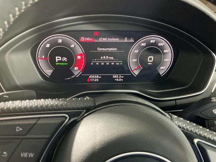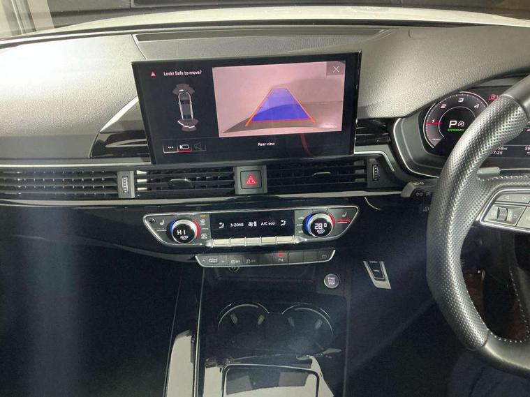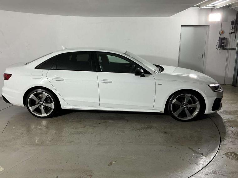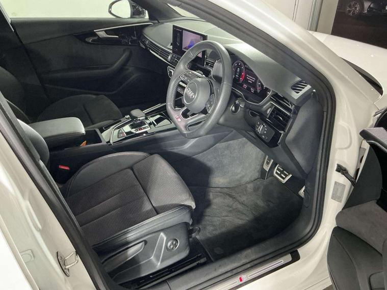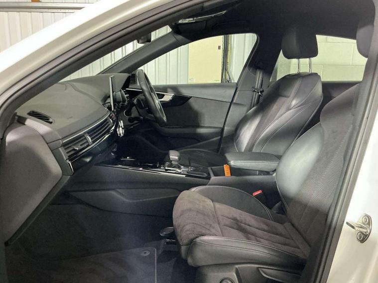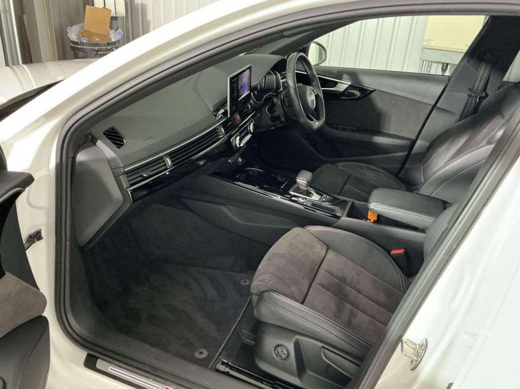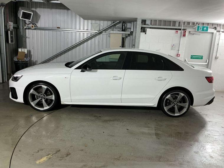 Audi connect safety and service (e-call), Audi drive select, Audi parking system plus with front and rear sensors, Audi smartphone interface, Audi virtual cockpit, Automatic start-stop system with coasting functionality and efficiency programme, Bluetooth interface, Electric boot lid release, Electromechanical power steering, MMI Navigation plus with MMI touch includes 10.1" high resolution colour MMI display, 3D map, Rear view camera, Voice control system, Sports suspension lowered by 23mm, 2 USB charging ports, 8 passive loudspeakers, DAB digital radio reception, Auto dimming rear view mirror, Body colour door handles, Body colour front spoiler lip, Body colour side sill trim, Electrically folding auto dimming/adjustable/heated door mirrors with LED side indicators and kerb view function for passenger side, Grained matt black side air inlets with matt aluminium silver inlay, High beam assistant, LED headlights with LED rear lights + dynamic rear indicators + headlight adjustment and high beam, turning light + LED daytime running lights, Matt aluminium silver tailpipe trim, Privacy glass, Rain and light sensors, S Line badges on the front wings, S line front and rear bumpers with side skirts, S Line rear diffuser in matt titanium black with trim strip in matt aluminium silver, Windscreen with acoustic glazing, 3 spoke flat bottomed high multi-function leather sport steering wheel with gearshift paddles, 4 way electric lumbar support for driver and front passenger, 40/20/40 split folding 3 rear seat bench in 3 parts with rear centre armrest, Black cloth headlining, Black perforated leather gearknob, Contrast stitching on seats, steering wheel and gear lever gaiter, Deluxe 3 zone electronic climate control, Door sill trims with aluminium inlay, Front and rear head restraints, Front centre armrest, Heated front seats, Illuminated door sill trims with S logo, ISOFIX child seat mounting and top tether, Manual seat adjustment, Stainless steel pedals and foot rest, Tool kit, LED Interior light pack - A4/S4, Titanium black styling pack - A4 Saloon, 3 rear seatbelts, 6 airbags - Driver, front passenger, curtain and side windows, Electronic Stabilisation Control (ESC) including ABS, ASR and EDL, Hill hold assist, Multi collision brake assist, Pop-up bonnet for pedestrian protection, Pre sense city, Seatbelt monitoring, Warning triangle and first aid kit, Anti theft alarm, Anti theft wheel bolts, Keyless Go, Piano black finish inlay, 19" 5 arm rotor design alloy wheels titanium matt look, Tyre repair kit,