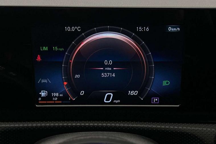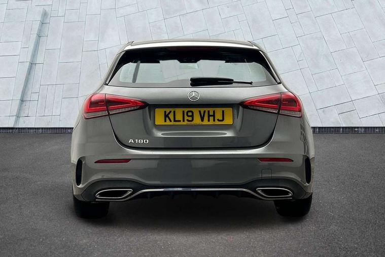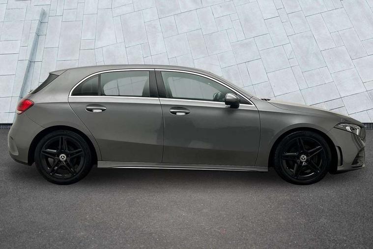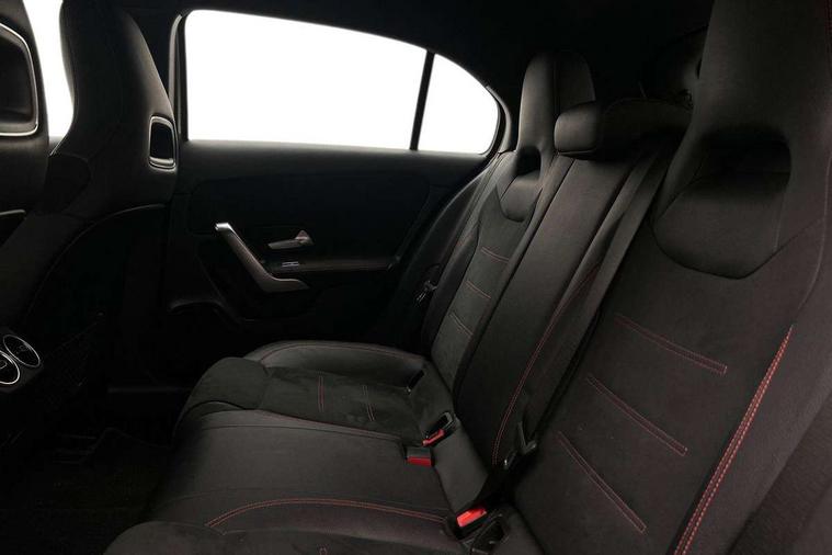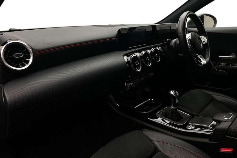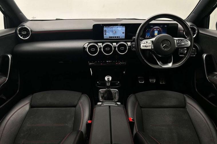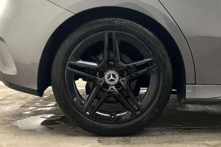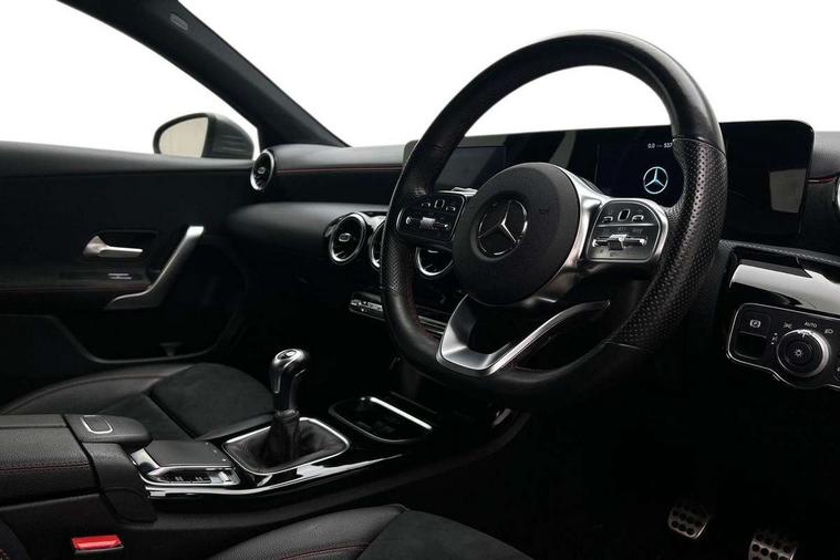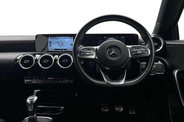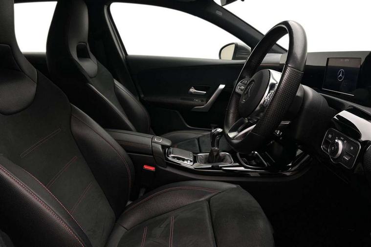 180 degree rear view camera with parking guidelines, 7" colour screen in instrument panel, 7" touchscreen media display, Active lane keep assist, Attention assist, Brake pad wear indicator warning light, Cruise control + speed limiter, Direct steering, DYNAMIC SELECT with a choice of driving modes (ECO, Comfort, Sport and Individual), ECO start/stop function, Fluid level warning indicator for fuel, oil, coolant and washer fluid, Hard-disk navigation, Hey Mercedes Voice activation, Lamp failure indicator, Mercedes me connect including emergency call system, accident recovery, breakdown and maintenance management, Outside temperature gauge, Radio aerial integrated into roof spoiler, Service indicator (ASSYST), Speed sensitive power steering, Trip computer, Lowered comfort suspension, DAB Digital radio, Dual bluetooth interface, 2 USB ports (type C), MBUX multimedia system with DAB digital radio and touchpad including satellite navigation, 4 Electric Front and Rear windows, Active aerodynamics with AIRPANEL in the front apron, Adaptive brake lights, AMG front, rear apron and side skirts, Blue tinted glass, Body colour bumpers, Body colour door handles, Body colour side skirt, Body coloured door mirrors, Chrome beltline trim, Diamond radiator grille with chrome pins and silver louvre + chrome insert, Electric adjustable and heated door mirrors with integrated LED side indicators, Exhaust system - Twin trapezoidal tailpipes in polished stainless steel, Headlamp assist automatic headlamp activation, Heated glass rear windscreen + timer control, LED high performance headlamps with integrated LED daytime running lights, LED tail lamp, LED third brake light, Privacy glass, Rain sensor windscreen wipers, Rear fog lights, Rear wiper, 12V socket, 3 Spoke flat bottom leather multi function steering wheel with perforated leather in grip area, 40:20:40 split folding rear seats, Air vents surround and cruciform nozzle in silver chrome, AMG floor mats with red stitching, Artico man-made leather/Microfibre Dinamica upholstery with red contrast stitching, Auto Mercedes-Benz child seat recognition sensor, Black roof lining, Brushed stainless steel sports pedals with rubber studs, Controller on centre console with chrome surround, Cup holder and stowage compartment lighting, Freight packaging without tie-down hooks, Front centre armrest with storage compartment, Front door sills with Mercedes Benz lettering, Front doors with ambient and signal light, Front footwell lights, Front reading lamps in left and right console downlighter, Front seat backs luggage nets, Front seat cushion length adjustment, Front signal exit lamp, Front vanity lights, Handle recess/closing light, Height/reach adjustable steering column, Illuminated glove compartment stowage, ISOFIX Child seat top tethers and anchor fixings, Manual height adjustable front seats, Oddments tray lighting, Rear head restraints, Rear Reading Lamps, Seat occupancy sensor for front passenger seat, Spectacles compartment for driver, Sports seats with integrated headrests, Storage compartment under load area floor, Sunvisors with illuminated vanity mirrors, Touchpad, Touchpad illumination, Twin front cupholders, Two zone thermotronic luxury automatic climate control, Light and sight pack - A Class, Seat comfort pack - A Class, 3 rear 3 point seatbelts, ABS with Brake Assist, Active bonnet, Active brake assist includes forward collision warning system with autonomous braking, Adaptive brake assist with hold function and hill start assist, Black seatbelts, Childproof locks manually operated for rear doors and electrically operated for rear power windows, Crash responsive emergency lighting, Driver and passenger head and side airbags, Drivers knee airbag, Dual stage driver/passenger airbags, Electronic parking brake, ESP curve dynamic assist, ESP with ASR, Front and rear seatbelt reminder, Front brake callipers with Mercedes Benz lettering, Tyre pressure monitoring system, Warning triangle and first aid kit, Window airbags, Alarm system/interior protection/immobiliser, Keyless Go, Remote central locking and crash sensor with emergency opening function, 18" AMG 5 twin spoke light alloy wheels in titanium grey with highsheen finish, Summer tyres, Tirefit sealant kit,