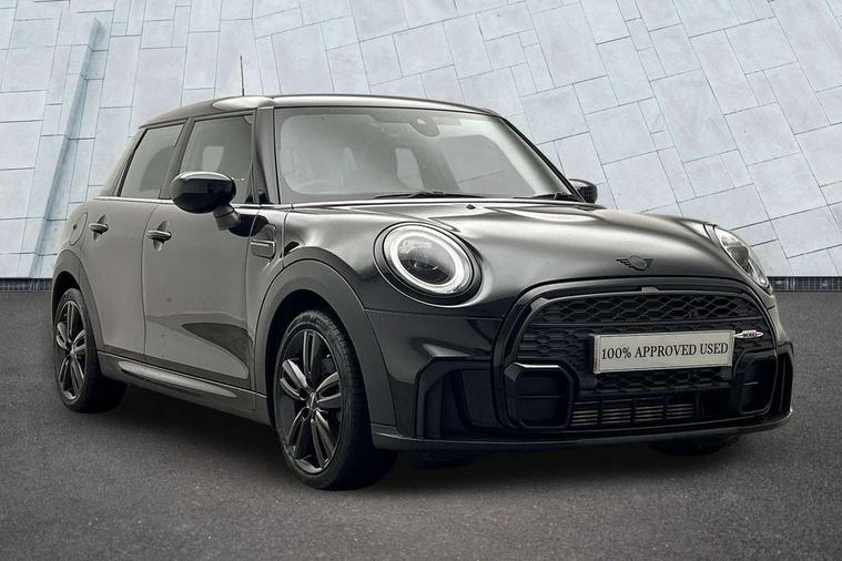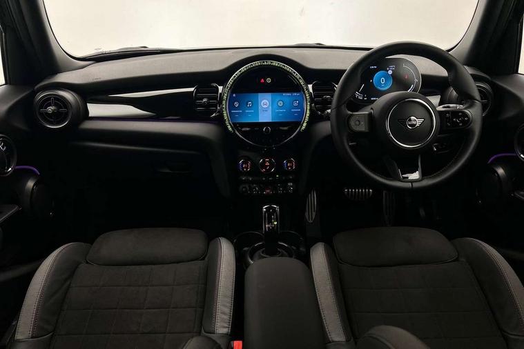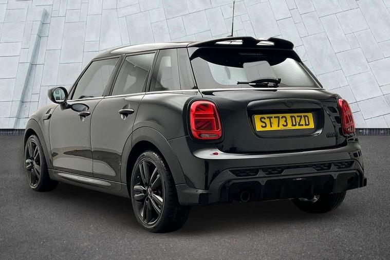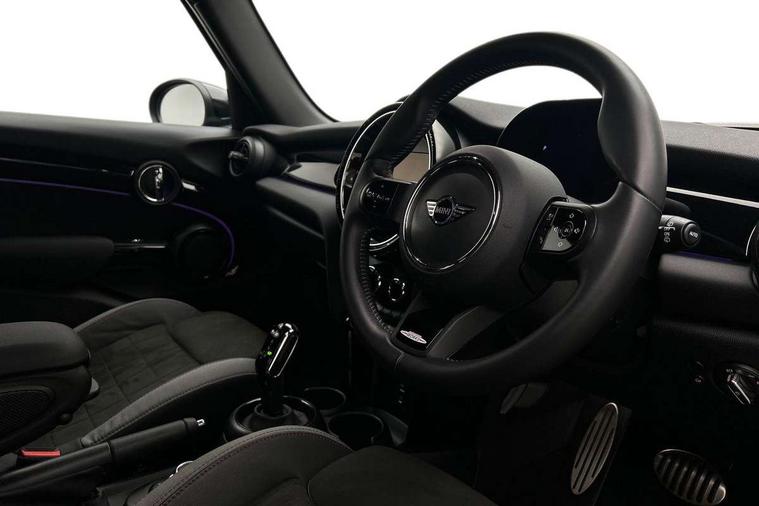 Apple CarPlay, Automatic start/stop function with brake energy recuperation, Compatible mobile phone bluetooth with audio streaming, Electro-mechanical speed dependant steering assistance, Flexible car sharing preparation, MINI Driving Modes - centre toggle switch to control driving setting (sport, mid and green), Mini E-call, MINI TeleServices, On board computer, Rear park distance control, Service interval indicator, Adaptive suspension, Double Vanos system, Fully variable valve control, Gear change indicator display, High precision injection, Performance Control, Steptronic transmission with double clutch, 8.8" touchscreen with LED ring, FM tuner and DAB digital radio, 3rd brake light, Automatic headlight activation switch, Body colour fuel filler cap, Chrome border high gloss black slats radiator grille, Dynamic brake lights, Electric front+rear windows, Exhaust tailpipe on left with chrome finisher, Heated rear window, Heated windscreen washer jets, JCW Aerodynamic kit - Front and rear bumpers with sporty JCW styling and part-painted side sills with MINI John Cooper Works door sill finishers, John Cooper Works rear spoiler, Metal door sill strips with MINI imprint, Model logo Cooper on right of tailgate, Rain sensor window wipers, Rear fog lights, Rear LED lights with union jack design, Rear side wing doors, Rear window wiper, Side scuttle panel with integrated indicator, Sun/heat protection glass, White indicator lenses, 12V Accessory socket in centre console, 3 seat bench in 2nd row, 4 lashing eyes in luggage compartment, 60/40 split folding rear seat, Anthracite headliner including grab handles and clothes hooks, Carbon black colour line - Knee roll and door armrest, Chrome interior highlights, Cupholders, Front and rear isofix with front passenger airbag deactivation, Front and rear velour floor mats, Glove compartment, Height and length steering column adjustment, Interior lighting with 12 different colours across the dashboard, underneath door bezel with illuminated laser-engraved design on central display, JCW Sport seats with integrated headrests, adjustable thigh support and John Cooper Works logo, Leatherette gearshift lever and handbrake gaiters, LED reading lights, vanity mirror lights, front foot well light and spotlight on front seats, Mechanical seat adjustment - forward/back & backrest for front seats and driver seat height adjust, Multifunction steering wheel, Single front passenger seat, Storage compartments in doors, Sunvisors with vanity mirrors, Walknappa leather steering wheel with grey seam and John Cooper Works badge on Piano Black lower steering wheel spoke, Piano black exterior pack - Mini Hatchback Cooper, 3 point seatbelts on all five seats, 6 Airbags - front, side, head and seat belt tensioners, Anti-lock braking system (ABS), Child locks on rear doors, DSC - Dynamic Stability Control, Front and rear disc brakes, Hill start assist, Single tone fanfare horn, Tyre pressure monitoring system, Alarm system with tilt sensor, monitoring doors, bonnet interior and tailgate, Electronic vehicle immobiliser, Start/stop toggle with keyless go, Piano black interior trim, Tool kit,