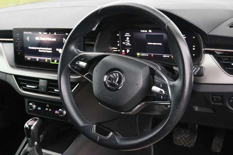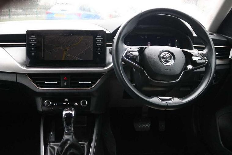 Amundsen satellite navigation with 9.2" glass colour touchscreen with virtual cockpit, web radio, Android Auto, Bluetooth system, Colour multifunction trip computer, Front assist system, PAS, Rain and light assist with auto dimming rear view mirror, Rear view camera, Speed limiter, Wireless SmartLink for Apple Car Play, 2 USB - C ports, 8 loudspeakers, DAB Digital radio, Automatic headlamp activation with Coming home and Leaving home feature, Body colour door mirrors and handles, Chrome grille surround, Electric folding door mirrors, Electrically adjustable and heated door mirrors, Front and rear electric windows, Front fog lights with cornering function, Privacy glass, Tinted windows, 12V Accessory socket in centre console, Chrome inner door handles, Chrome on gear and handbrake lever, Chrome strip on the dash and door panel, Dual zone climate control, Front head restraints, Glasses storage in roof liner, Instrument cluster with chrome painted decor ring, ISOFIX for rear passenger seat, Leather gearknob and handbrake lever, Manual lumbar support for front seats, Net in centre console, Reading lights for driver and front passenger, Sun visor with make up mirror for front passenger, Textile floor mats, Third rear headrest, Umbrella, 3x3 point rear seatbelts, Curtain airbags, Emergency call and proactive services, Front head and side airbags, Hill hold control, One tone horn, Passenger airbag switch off function, Seat belt reminder for all seats, Alarm, Anti-theft wheel bolts, Keyless entry with start/stop button, Remote central locking with 2 remote folding keys, SAFE function for remote central locking, Latice grey decorative insert with copper hot stamping, Temporary space saver wheel,
