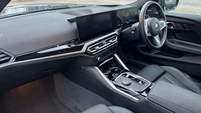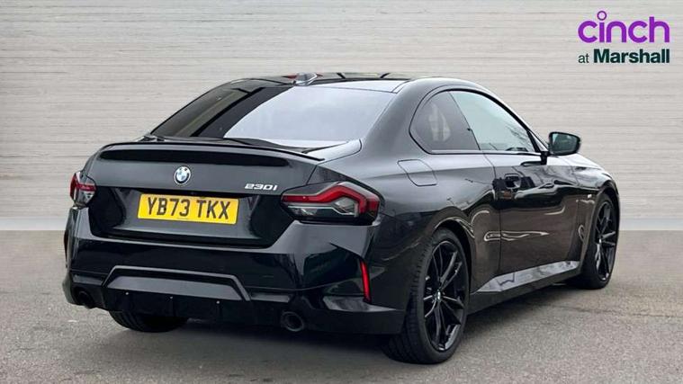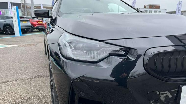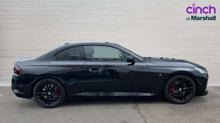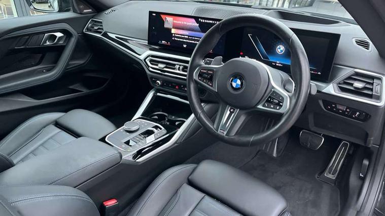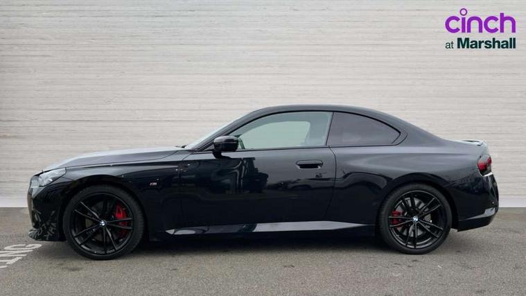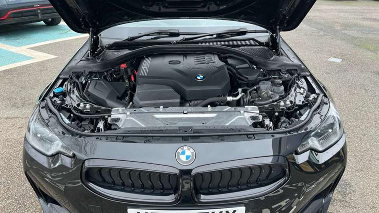 2 USB connections for charging and transferring data, 4G LTE connectivity with hard wired 4G network sim card, Attentiveness assist, Bluetooth with USB, BMW ConnectedDrive online services, BMW Intelligent Personal Assistant, BMW operating system 8 with variable, configurable widgets display information in real time, BMW Teleservices, Check Control warning system for monitoring of lights and door/luggage compartment open warning, Direct selection buttons, Drive off assistant, Eco pro mode, Electric power steering, Front and rear parking sensors, Front/rear Parking distance control, iDrive controller with turn and press function, Integrated owners handbook, Intelligent functions, Live cockpit plus with nav function 12.3" instrument cluster and 14.9" centre display, Oil sensor for level and grade, Optimum shift indicator, Personal Profile, Touch operation on control display, Variable sport steering, Widescreen multi-media display, WiFi interface for wireless connection of mobile terminal devices, Aluminium lightweight construction, Balancer shaft, BMW TwinPower Turbo four-cylinder petrol engine, Double VANOS, Drive performance control with ECO PRO comfort + sport mode, Electronic differential lock, High precision injection, M sport suspension, Petrol Particulate Filter, Sport automatic steptronic transmission with gearshift paddles, manual gearshift time display, launch control, coasting idle ECO PRO/COMFORT modes, Twin scroll turbocharger with Valvetronic, DAB tuner, Acoustic windscreen wipers for reduced driving noise, Adaptive LED Headlights, Automatic windscreen wipers and automatic headlight, Automatically dimming rear view mirror, Body colour door handles flush with door surface, Body colour door mirrors, Body colour front and rear bumpers, Daytime running lights, Electric windows - front and rear, with open/close fingertip control and trap release, Exhaust tailpipes x2 - 90mm in left and right, Fading support, Front and rear bumper system with replaceable deformation elements, Front door sill finishers in black plastic with BMW designation, Front windscreen wipers with integrated washer jets, Green tinted heat protection glazing, High beam assistant, High gloss black sill, bumper trim sides and diffuser insert, High gloss shadowline exterior trim in mirror triangle cover, mirror cover panel, mirror bezel and window border, High level third brake light, Indicators integrated int mirror housing, LED registration plate light, LED technology rear tail lights, brake lights and turn indicators, Lightweight engineering, Model designation on right side of tailgate, One piece kidney grille with hight gloss chrome surround, Rear boot, Rear fog lights, Reversing light in rear light cluster, Shark fin antenna, Single part LED rear lights with smoked glass components, Trailer stabilisation logic, Visible VIN plate, 12V power socket in front centre console with blanking plug, 2 cupholders in front centre console, 2 zone automatic air conditioning, Ambient lighting, Compartment in front of cupholder, Conditioned based service, Driver seat backrest width adjustment, Front and rear side armrests integrated into door trim, Front armrest, Front door pockets, Front head restraints, Front sport seats, Heated front seats, Illuminated glove compartment with separate small compartment, M headliner Anthracite, M sport leather steering wheel, Manually adjustment steering wheel column, Rear seat backrest with manual 40:20:40 split folding, Rear seat centre foldable armrest with integrated cup holder, Single front passenger seat, Storage compartment between rear seats, Storage tray and compartment with cover in centre console, Sun visors with vanity mirrors and insert tab, Through loading system with 40/20/40 split folding 2 rear seat in 2nd row, Two folding rear seat headrests, Velour floor mats, Additional storage compartment pack without USB - 2 Series Coupe, Connected pack professional - 2 Series Coupe, Interior and exterior mirror pack - 2 Series Coupe, M Sport exterior styling aerodynamics pack - 2 Series Coupe, 2 tone horn, Anti lock braking system (ABS) with cornering brake control, Automatic Stability Control (ASC), BMW emergency call, Brake drying, Child seat ISOFIX attachment for the two outer rear seats, Crash sensor activating of airbags, Unlocking doors, hazard warning lights, fuel cut off, interior lighting+activation of safety battery terminal clamp, Deactivation of fuel pump in the event of a crash, Driver and front passenger airbags, Driver and front passenger side airbags, integrated in the door side seat backrest bolsters for all seat variants, Dynamic brake control, Dynamic stability control + (DSC+), Dynamic Traction Control - DTC, Electrically operated hand brake including automatic hold function and automatic release when driving off, Front and rear disc brakes, Head airbags for all 4 outer seats, Manual deactivation of front passenger airbag, Seat belt security check for driver and front passenger, Seatbelt warning, Side impact protection, Three point seat belts on 4 seats including front belt stopper, pyrotechnic belt tensioners and belt force limiters, Tyre pressure sensor, Warning triangle and first aid kit, Alarm system (Thatcham 1) with remote control and electronic engine immobiliser, Central locking switch for all doors, fuel filler cap and luggage compartment, Deadlocking function system to all doors, Drive away locking system on all doors and luggage compartment, Locking wheel bolts, Start/Stop button (illuminated) in centre console with keyless engine start and Auto Start-Stop deactivation button, Two remote control key with integrated key - one button for open and close doors/fuel flap/tailgate and separate button for unlock luggage compartment, BMW mobility tyre sealing system, Electrically powered 12V compressor, Reduced rolling resistance tyres,