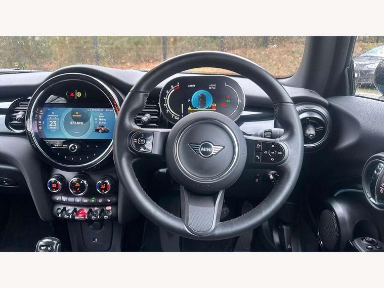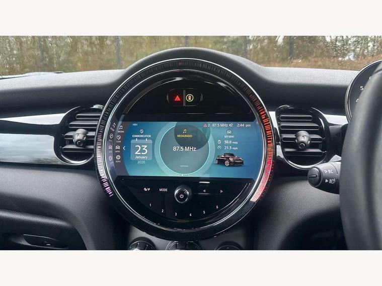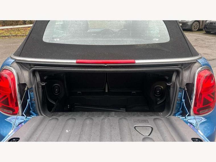 Apple CarPlay, Automatic start/stop function with brake energy recuperation, Compatible mobile phone bluetooth with audio streaming, Cruise control with brake assist, Electro-mechanical speed dependant steering assistance, Instrument cluster, Mini E-call, MINI TeleServices, On board computer, Rear park distance control, Service interval indicator, Double Vanos system, Fully variable valve control, High precision injection, Performance Control, Steptronic transmission with double clutch, FM tuner and DAB digital radio, Automatic headlight activation switch, Body colour fuel filler cap, Chrome border high gloss black slats radiator grille, Dynamic brake lights, Electric windows, Fully electric black softtop with integrated sunroof functionality, Heated rear window, Heated windscreen washer jets, LED headlight with closed ring and daytime driving lights, Left exhaust tailpipe with chrome finisher, Metal door sill strips with MINI imprint, Model logo Cooper on right of tailgate, Rain sensor window wipers, Rear boot, Rear fog lights, Rear LED lights with union jack design, Side scuttle panel with integrated indicator, Sun/heat protection glass, Third brake light, White indicator lenses, 12V Accessory socket in centre console, 2 seat bench in 2nd row, 4 lashing eyes in luggage compartment, 50/50 split folding rear seats, Chrome interior highlights, Colour line - Carbon black, Cupholders, Easy Load boot handles, Front and rear head restraints, Front and rear isofix with front passenger airbag deactivation, Glove compartment, Height and length steering column adjustment, Interior lighting with 12 different colours running across the dashboard, underneath door bezel illuminated laser engraved design on central display, Leather gearshift lever and handbrake gaiters, LED reading lights, vanity mirror lights, front foot well light and spotlight on front seats, Manual air conditioning, Mechanical seat adjustment, driver seat height adjust, forward/back and front seats backrest, Multifunction steering wheel, Single front passenger seat, Sports steering wheel, Storage compartments in doors, Sunvisors with vanity mirrors, Three spoke steering wheel with speed limiter and audio/communication controls, Velour floor mats, Convertible pack with comfort access - Mini Convertible, Navigation pack without Apple car play - Mini Convertible, 3 point seatbelts on all four seats, 6 Airbags - front, side and seat belt tensioners, Active rollover protection, Anti-lock braking system (ABS), DSC - Dynamic Stability Control, Front and rear disc brakes, Hill start assist, Single tone fanfare horn, Tyre pressure monitoring system, Alarm system with tilt sensor, monitoring doors, bonnet interior and tailgate, Electronic vehicle immobiliser, Keyless Go, Piano black interior trim, Tool kit, Tyre repair kit,