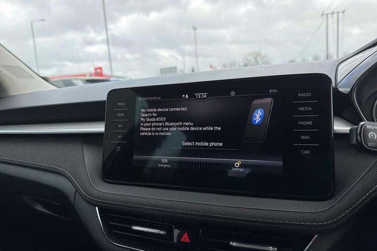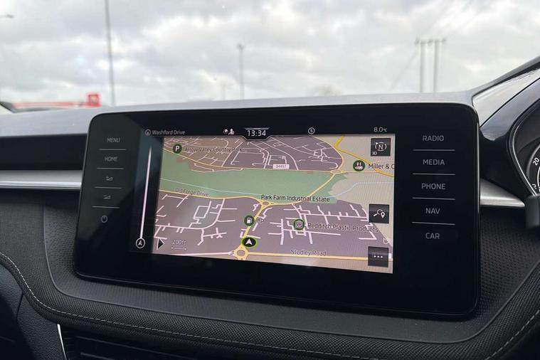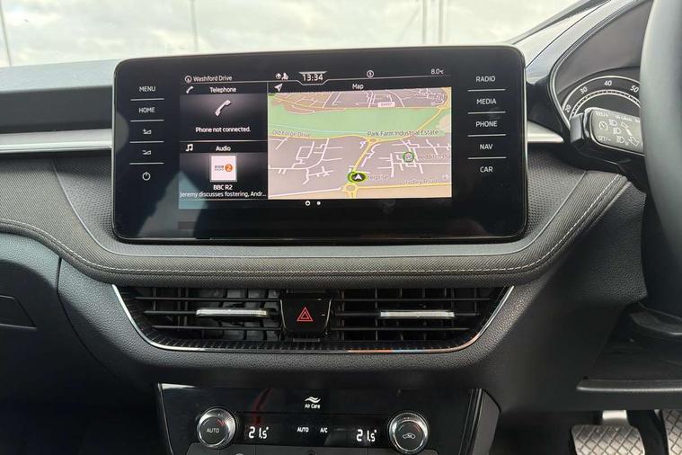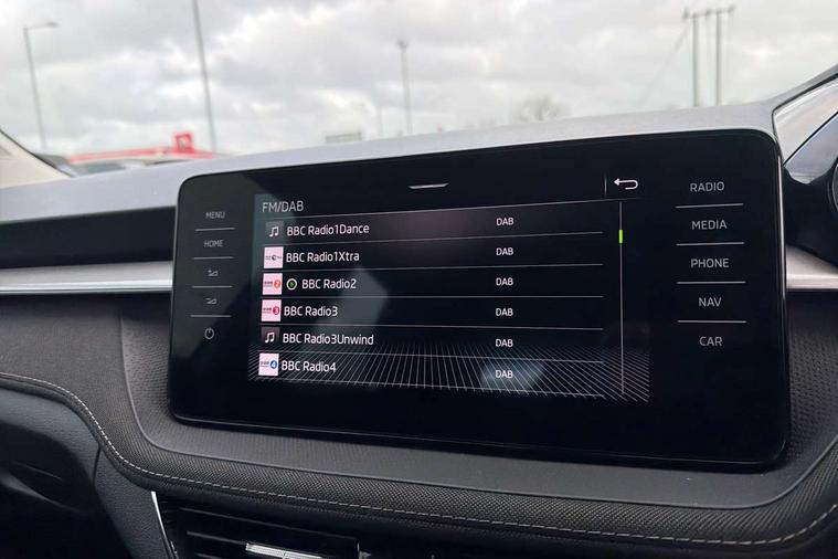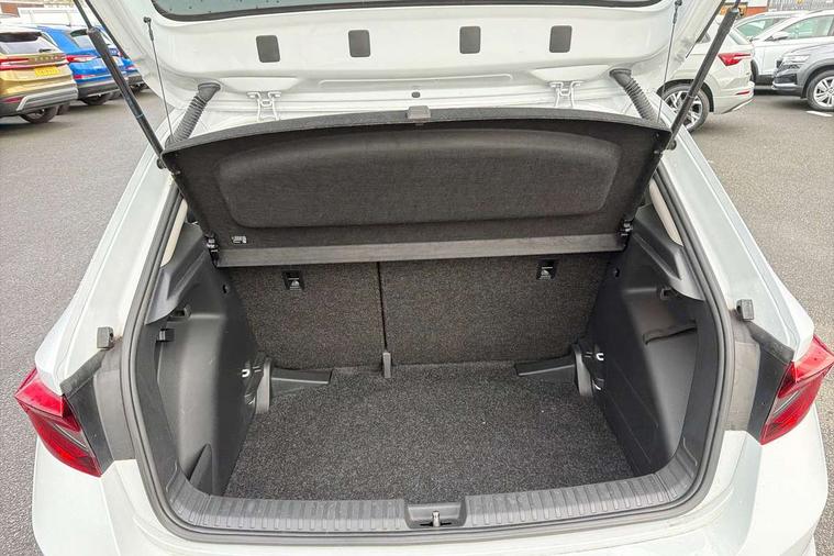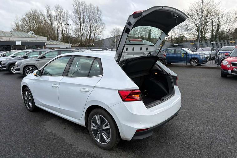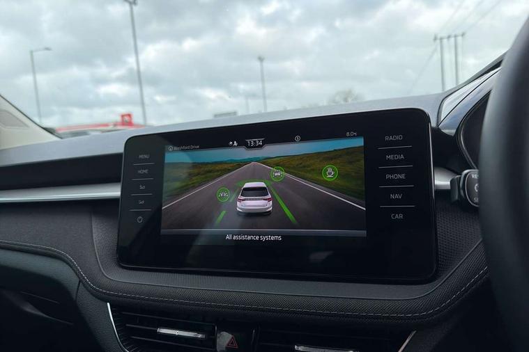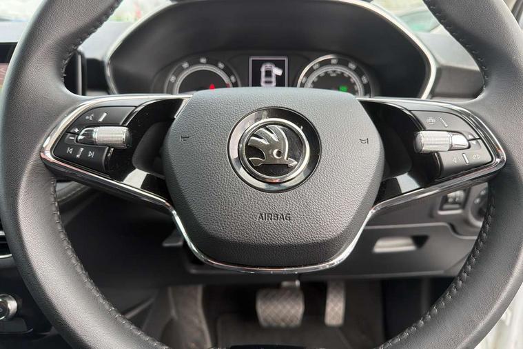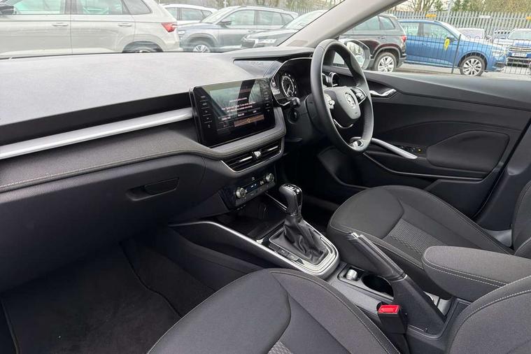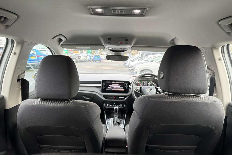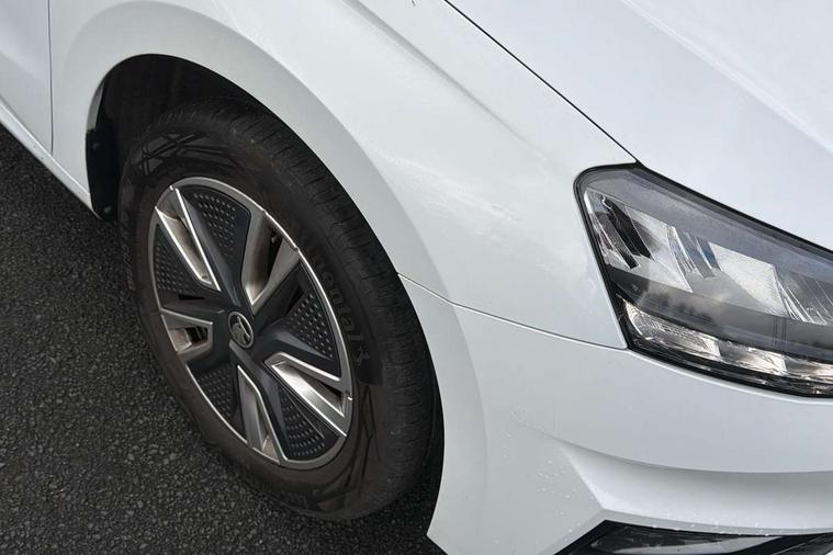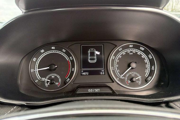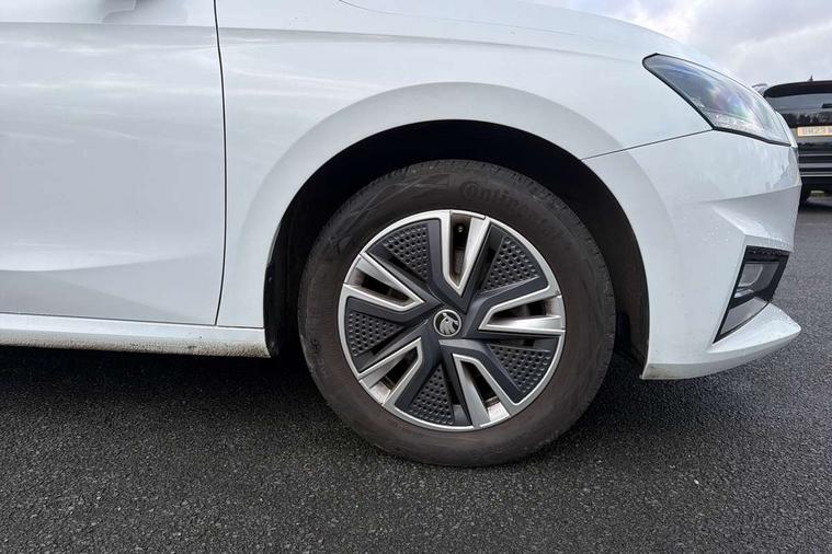 Bluetooth connection, Driver alert system - DAS, Electromechanical power steering, Exterior temperature gauge, Service interval indicator, 2x USB-C in the front (for data transmission and charging), 6 Speakers (4 in front and 2 in rear), Auxiliary socket for external MP3 player, DAB digital radio reception, Web radio, Auto dimming rear view mirror, Basic LED Headlights, Body colour door mirrors, Body coloured bumpers, Chrome window surround, Door mirror integrated indicators, Electrically adjustable and heated door mirrors, Front and rear electric windows, Front fog lights, Front window wiper intermittent control, Headlight range control - Automatic, Ice scraper in fuel cap, LED daytime running lights with coming and leaving home feature, Rain sensor, Rear LED fog light, Rear side wing doors, Rear window wiper with washing nozzles, Roof mounted spoiler, SKODA tailgate lettering in chrome, Third brake light, 3 rear headrests, Backrest split and folding, Central console with fixed cup holder and storage box, Chrome handbrake release button, Comfort seats, Fabric upholstery, Front centre armrest, Gearshift knob/handle in leather, Hand brake lever handle in leather, Height adjustable front headrests, Height adjustable front seats, Height adjustable steering wheel, ISOFIX and TopTether anchorage points to the outer rear seats, ISOFIX and TopTether on the front passenger seat, Luggage compartment lighting, Manually adjustable lumbar support in front seats, Pollen filter, Rear seat bench unsplit, Removable cup holder, Single front passenger seat, Storm grey headlining, Sun visors with mirror and airbag label on passenger side, Textile floor mats, Ticket holder, Umbrella in drivers door, 3-point height adjustable front seats belts with pretensioner and force limiter, Automatic warning lights in case of crash, Driver and passengers airbag with switch off function, e-Call+, ESC including ABS, MSR, ASR, EDS, HBA and XDS, Front and rear seat belt warning, FRONT ASSIST (AEB City and AEB Inter Urban), Front side airbags, Head airbags, Hill hold assist, One tone horn, Pedestrian protection, Three rear 3-points safety seat belts with pretensioner and force limiter including stop function for outer rear seat belts, Tyre pressure monitoring system, Anti-theft alarm system including immobiliser, interior monitoring, backup horn, and towing protection, Central locking with radio remote control, interior controls, SAFE function and 2 foldable keys, KESSY - Keyless engine start/stop, Chrome edged air vents, Satin black door and side trim panel in front, Anti-theft wheel bolts protection, Super-low rolling resistance tyres,