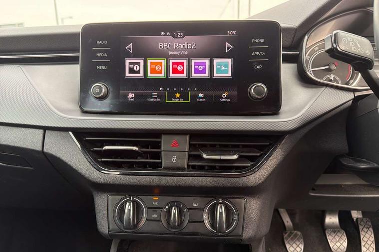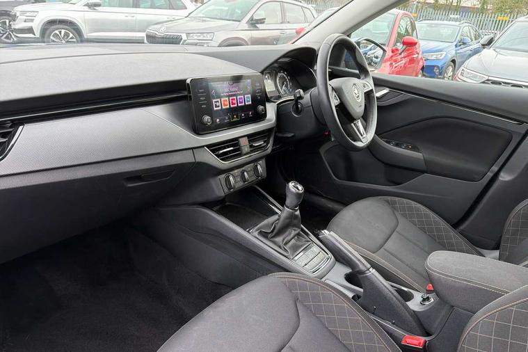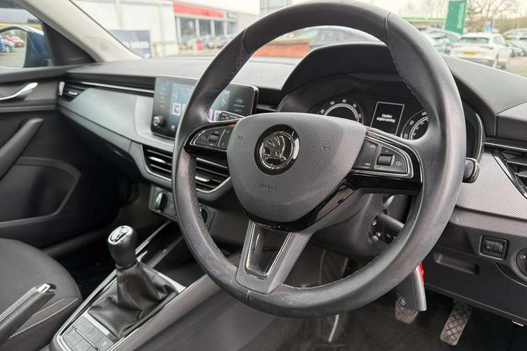 Bluetooth system, E-call, Front assist system, Lane assist, PAS, Service indicator, Speed limiter, Trip computer, Wireless SmartLink for Apple Car Play, 2 USB - C ports with 1x adaptor cable, Auxiliary input socket, DAB Digital radio, Auto dimming rear view mirror, Body colour bumpers, Body colour door mirrors and handles, Chrome grille surround, Electrically adjustable and heated door mirrors, Front and rear electric windows, Headlight range control, Heated rear window, Light and rain sensors, Rear fog lights, Rear wiper, 12V Accessory socket in centre console, Chrome inner door handles, Front head restraints, Glove compartment with illumination, Ice scraper, Isofix child seat fittings on outer rear seats, ISOFIX on front passenger seat, Manual lumbar support for front seats, Rake/reach adjustable steering wheel, Reading lights for driver and front passenger, Sun visor with make up mirror for front passenger, Textile floor mats, Third rear headrest, Top tether for front passenger seat, Umbrella in driver's door, 3x3 point rear seatbelts, Airbags - driver and front passenger, ESP, Front passenger airbag deactivation switch, Front side airbags with curtain airbags, Hill hold control, Manual parking brake, One tone horn, Rear disc brakes, Seatbelt reminder for driver an co-driver, Traction control, Tyre pressure monitor, Alarm with interior monitoring, back up horn and tilt sensor with safe function and towing protection, Anti-theft wheel bolts, Immobiliser, Remote central locking with SAFE system,