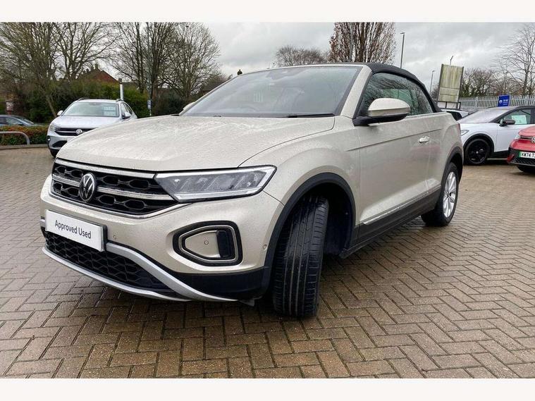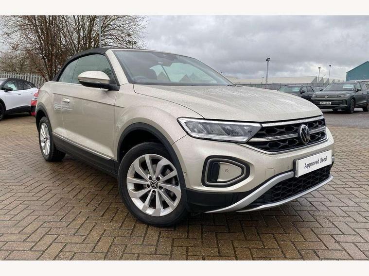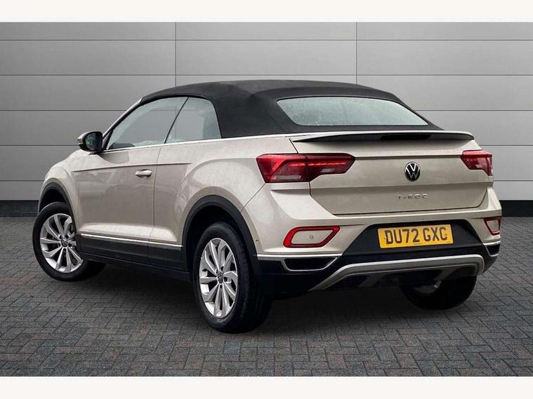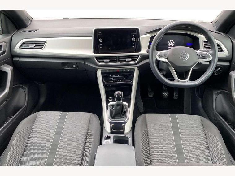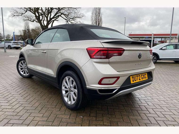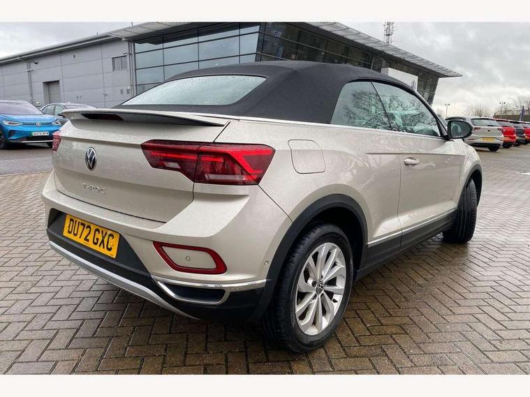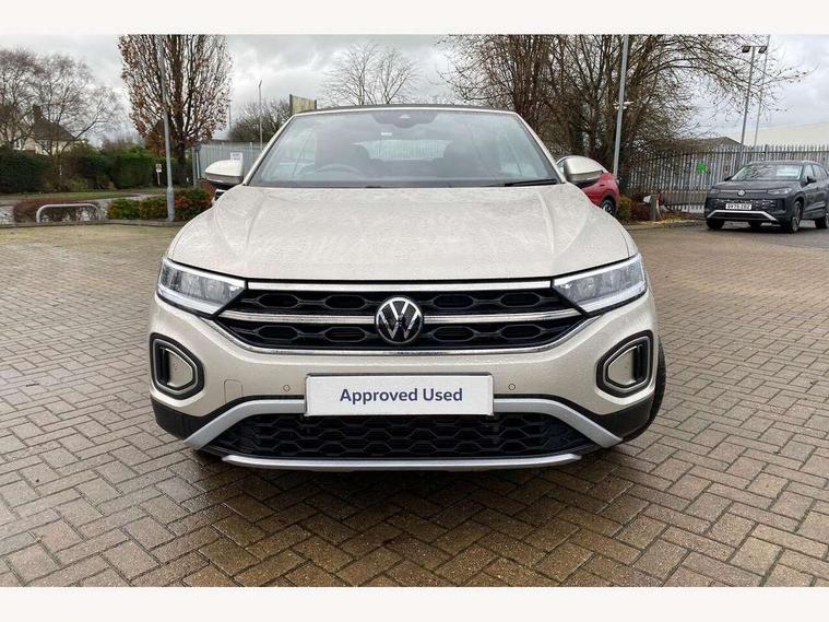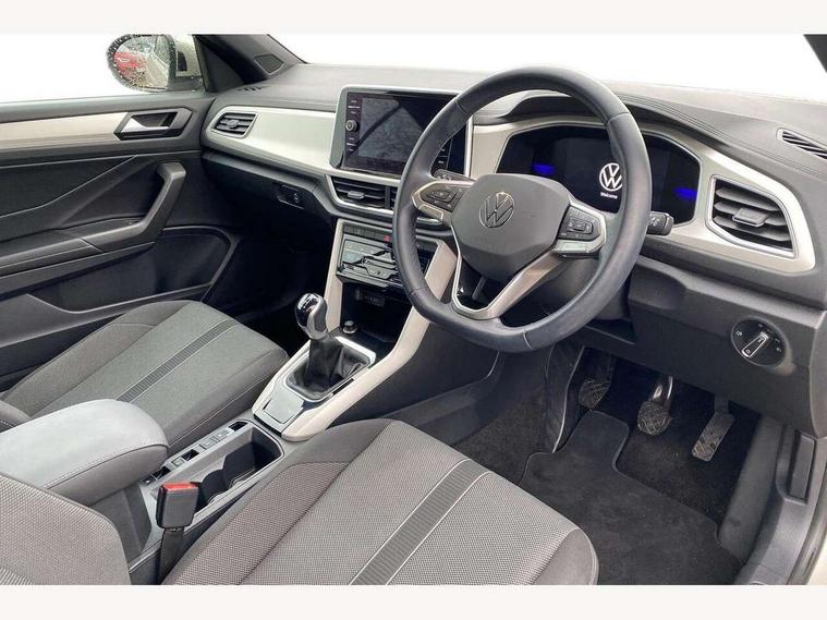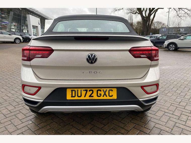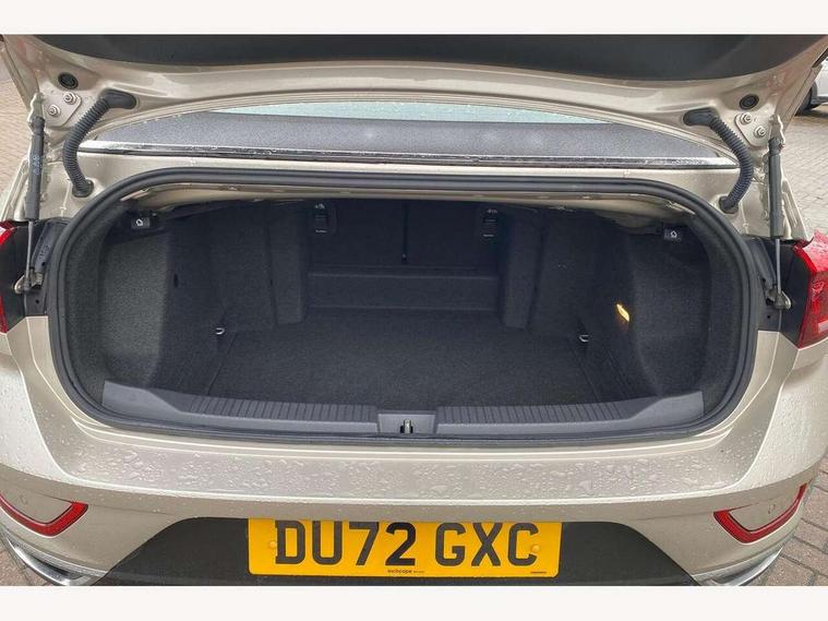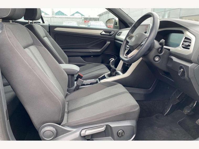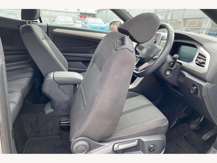 Adaptive cruise control and speed limiter, Bluetooth mobile phone interface, Brake pad wear indicator, Car information display, Driver alert system with fatigue detection, Driver tips and journey analysis, Emergency call service, Modified key software - reduce switch off time for key status change to Long no motion, Multifunction computer with visual gear change recommendation for fuel consumption, Multifunction front facing camera, Park assist including front and rear parking sensors, Speedo and rev counter, electronic odometer, trip, service interval display and exterior temperature gauge, Start/stop system with brake energy recovery, Tailgate/trunk lid release from outside, Warning sound and light for front seatbelts unfastened, Diversity antenna for FM reception, Music playback - MP3, WMA and AAC files, SMS functionality - read, compose and send SMS messages using touch-screen display, Title and cover art display, USB-C Interface and USB charging socket, We Connect and We Connect Plus functionality, Ambient lighting with logo projection, Auto dimming interior rear view mirror, Automatic hazard lights activation under emergency braking, Automatic headlight control with LED separate daytime running lights with coming/leaving home function, Black roof, Body colour door handles, Body colour rear spoiler, Body coloured bumpers and radiator grille with chrome trim and front fog lamps with chrome bezel, Chrome effect left and right trapezoid exhaust tailpipe fascia surround, Dark red rear combination lamps in LED technology, Dusk sensor, Exterior mirrors aspherical on driver side, convex on front passenger side, Headlight range control, Heat insulating glass windscreen, High level 3rd brake light, LED Headlights, LED rear number plate lights, Power operated canvas convertible top, Power windows with comfort operation and circuit breaker, Rain sensor, Rear boot, Rear exhaust tailpipe, Rear fog light on one side and reversing lights on both sides, Remote electrically foldable door mirrors, puddle lights and reverse activated passenger door mirror, Volkswagen roundel, Windscreen wiper with intermittent wipe light, Without exterior ambient lighting, 12V socket in centre console storage area, 2 LED front reading lights, 2 seat bench in 2nd row, 50:50 Split folding rear seat backrests with fixed rear seat bench, Air care climatronic air conditoning system with active combination filter and 2-zone temperature control, Black door lower parts with chrome trim, Chrome plated surround to light, mirror and window switch, Door and side trim panel with leatherette insert, Easy entry backrest release, Front and rear carpet mats with black stitching, Front centre armrest, Front cupholders x 2, Front door pockets, Front seat back storage pockets, Heated multi function steering wheel, Height/reach adjust steering wheel, Instrument lighting, white adjustable panel illumination, Interior light delay, Interior light in footwell, Interior lighting with switch off delay and contact switches on all doors, Interior white ambient lighting and surround lighting, Isofix child seat preparation, Lockable glove compartment with light, Luggage compartment lighting, Rear head restraints, Single front passenger seat, Sun visors with illuminated vanity mirrors, Driver assistance pack without proactive passenger protection - T-Roc cabriolet, 2 x 3-point seatbelts/outer rear seats with ECE label, Driver and front passenger airbag with front passenger airbag deactivation, Driver and front passenger safety-optimised head restraints, Drivers seatbelt reminder, Electronic parking brake, Electronic Stability Control (ESC) including ABS, ASR and EDL, Front and rear disc brakes, Front assist with autonomous emergency braking, Pedestrian monitoring, Predictive pedestrian protection, Rigid safety cell with front and rear crumple zones, Side airbag/thorax airbag system, for front passengers, Single tone horn, Three point height adjust front seatbelts + pretensioners, Tyre pressure loss indicator, Volkswagen roadside assistance, Anti-theft alarm system with interior protection and central locking system with SAFELOCK, radio remote control and 2 remote control folding keys, Electronic engine immobiliser, Trims for alloy wheels,