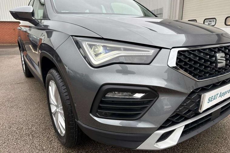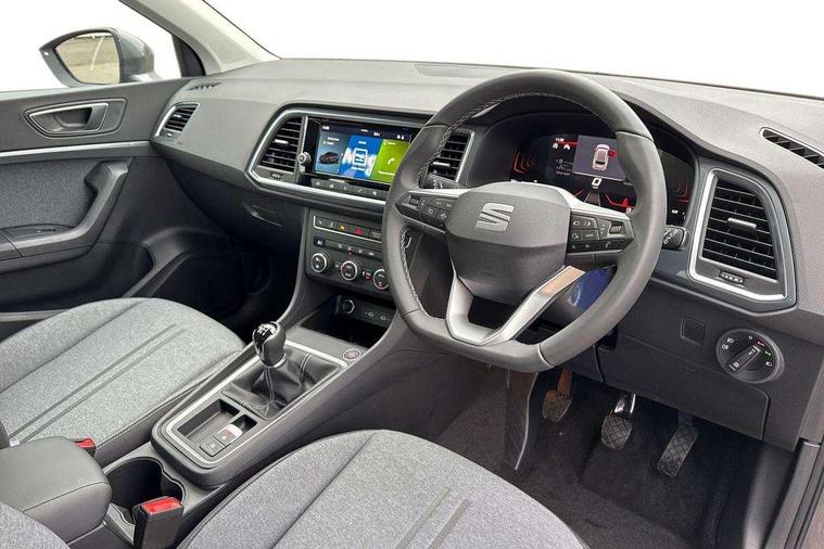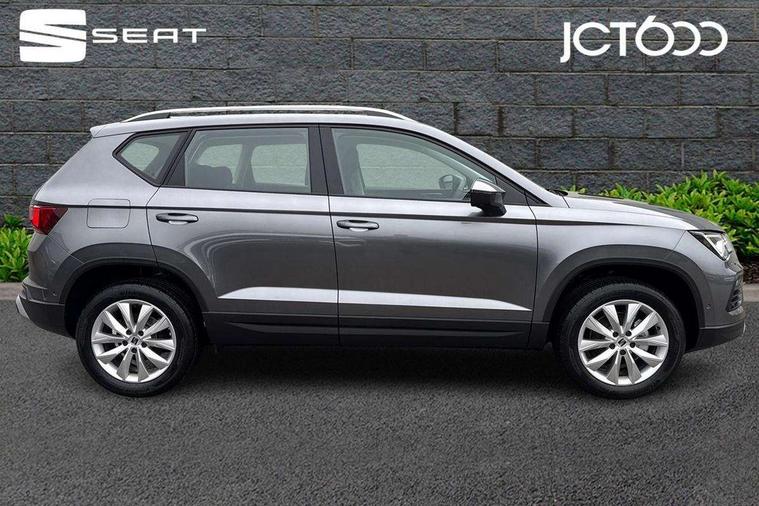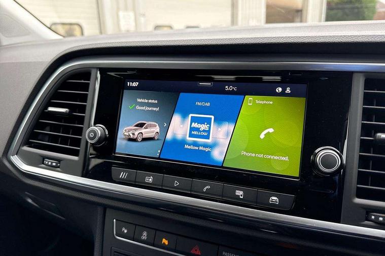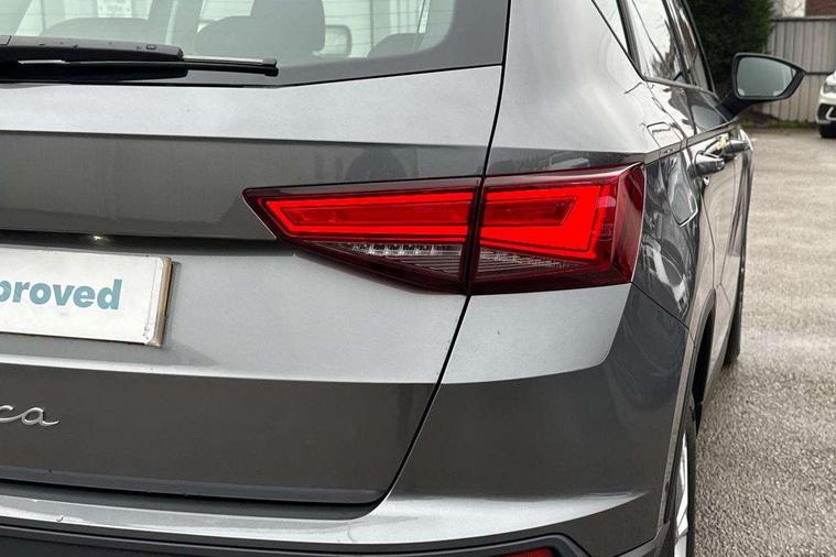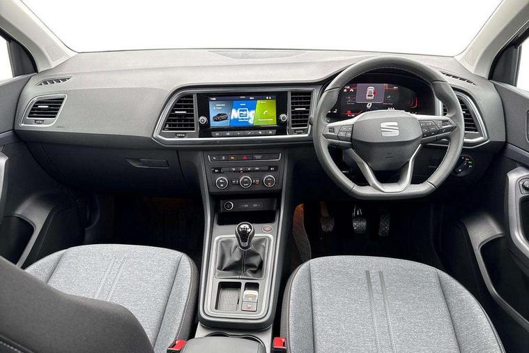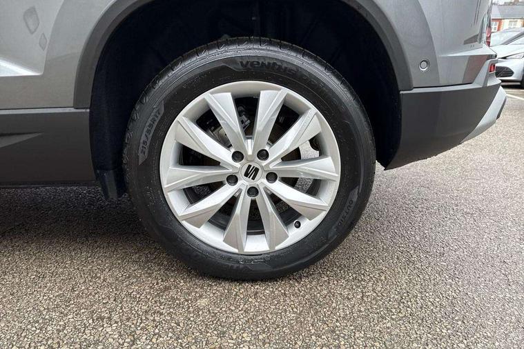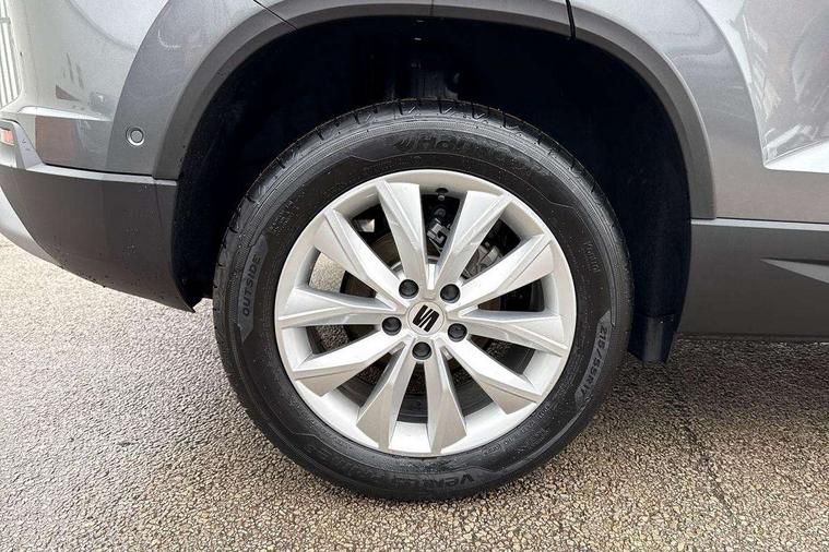 8" Digital cockpit, Cruise control system with speed limiter, E-call, Outside temperature gauge, PAS, Self parking functionality (includes front and rear parking sensors), Start/stop system, Tailgate, Trip computer, wired and wireless full link smartphone integration, Wireless phone charger, Black side window trim, Black wheel arch surrounds, Body colour bumpers, Chrome front grille frame, Chrome roof rails, Daytime running lights, Door mirrors with welcome light silhouette, Dynamic headlight range control with self adjusting whilst driving, Electric adjustable/heated/folding door mirrors, Front and rear electric windows, LED 3rd brake light, LED headlamps with lens and LED front fog lamps with cornering function, LED rear tail lights with dynamic indicators, Rear exhaust tailpipe, Rear fog lights, Rear side wing doors, Rear wash/wipe, Variable front intermittent wipers, 12V socket in front, 3 seat bench in 2nd row, 60/40 split folding rear seat, Cloth upholstery with front comfort seats, Drawer under right front seat, Dual zone climate control, Front and rear head restraints, Front centre armrest, Front seat back storage pockets, Height adjustable driver and passenger seat with lumbar adjustment, ISOFIX points in outer rear seats with top tether anchorage points, Leather sports steering wheel and gear knob, Rear armrest and easy back seat release mechanism from boot, Single front passenger seat, Convenience pack - Ateca, Interior lighting pack - Ateca, Media system plus pack - Ateca, Safety and driving pack with attention and drowsiness assist - Ateca, 3x3 point rear seatbelts, ABS, Traction control system (TCS), Electronic stability control (ESC) and Electronic differential lock system (XDS), Airbags - Driver and front passenger airbag with deactivation, front side, two curtain and driver's knee airbags, Electric parking brake with auto hold function, Front and rear seatbelt reminder, Front assist with autonomous emergency braking, Hill hold control, Manual rear child locks, Single tone horn, Tyre pressure monitoring system, Alarm, Keyless entry, Locking wheel bolts, Remote central locking, Chrome interior detailing, 17" Brilliant silver alloy wheels with super low rolling resistance, Tool kit,