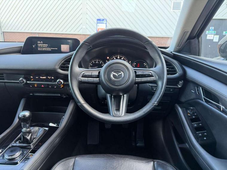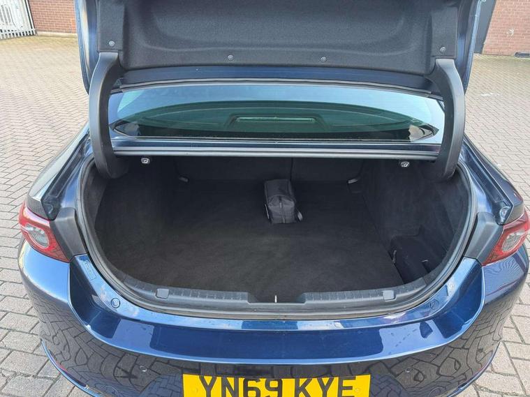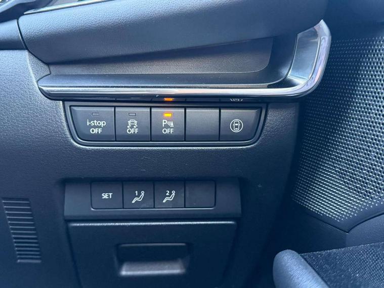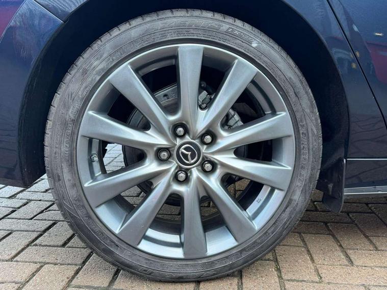7" colour TFT display, 8.8" Colour centre touch screen display with Mazda Connect infotainment, Apple car play/Android Auto, Audio transfer from bluetooth devices, Blind spot monitoring with rear cross traffic alert, Colour active driving display inc Windscreen projected, Traffic Sign Recognition, turn-by- turn navigation and Mazda Radar Cruise Control information, Digital instrument cluster, Driver attention alert system, E-call with GPS, Emergency stop signalling system, Engine start/stop button, Front and rear parking sensors, Head up Display, Integrated bluetooth with steering wheel mounted controls, Intelligent speed assist, Lane keep assist system (LAS) with Lane departure warning system (LDWS), Mazda Navigation System with european mapping, Mazda Radar Cruise Control, Mobile App interface, Multimedia Commander, PAS, Reversing camera, Service indicator, Start/stop button chrome surround, Trip computer, Mazda Multimedia System with AM / FM / DAB radio, single CD / MP3 with 12 Speaker Bose sound system, bose centerpoint, bassmatch+audiopilot technology, Adaptive LED Headlights, Auto dimming door mirrors, Chrome finished signature wing, Coming/leaving home lighting function, Daytime running lights, Door mirrors with adjustable memory and tilt-down function when reversing, Dusk sensing headlights, Electric front/rear windows with one touch/auto up/down, Electrically adjustable/heated/auto power folding door mirrors with integrated indicators, Frameless auto dimming interior rear view mirror, Front body coloured bumper with black/bright lower bezel, Gloss black mesh grille, High beam assist, LED headlamps with auto levelling, LED indicator lights, LED third brake light, Piano black window garnish, Privacy glass with dark tinting on rear side windows and rear window, Rain sensing front wipers, Rear fog lights, Signature LED lights, Signature LED rear combination lights with LED rear turn lights, 60/40 split fold down rear seats, 8 way power adjustable driver with door mirror memory and active driving display, Chrome centre bezel steering wheel, Chrome-plated glovebox handle, Driver, Front passenger and two rear grab handles with coathooks, Driver/passenger sunvisors + vanity mirrors (drivers side with ticket holder), Dual zone climate control air conditioning, Electrical power outlet, Folding rear centre armrest with two cup holders, Front and rear courtesy lamps, Front armrest, Front centre console with storage box with tray, lid + 2 cupholders, Front head restraints, Front passengers seat manual slide, recline and height adjustment, Gear shift indicator, Heated steering wheel, Illuminated glovebox, ISOFIX child seat anchorage points attached on outer rear seats, Leather wrapped gear shift knob, Leather wrapped steering wheel, LED interior light, Luggage compartment light, Power driver lumbar adjustment, Reach adjustable steering wheel, Storage - glovebox, driver and front passenger door pockets and roof mounted sunglasses holder, Three height adjustable rear head restraints, Tilt/height adjustable steering wheel, USB charging point, 3 point ELR front seatbelts with pretensioners, 3 rear 3 point seatbelts with ELR, Anti-lock braking system (ABS), Drivers knee airbag, DSC - Dynamic Stability Control, Dual front airbags, EBD - Electronic brakeforce distribution, Electronic parking brake with auto disengage function and auto hold function, Front and rear curtain airbags, Front passenger airbag cut-off switch, Front side airbags, Front smart city brake support, G-Vectoring control plus, Hill launch assist, Intelligent Traction Control system, Mild Hybrid system with regenerative braking, Seatbelt reminder for driver/front passenger and rear seats, Tyre pressure monitoring system (TPMS), Auto door lock when driving, Remote central locking + deadlocks, Smart Keyless entry and start, Thatcham accredited alarm and immobiliser, 18" Bright alloy wheels, Emergency tyre repair kit,