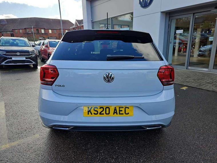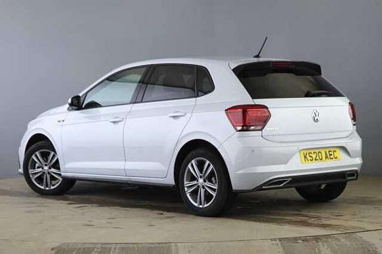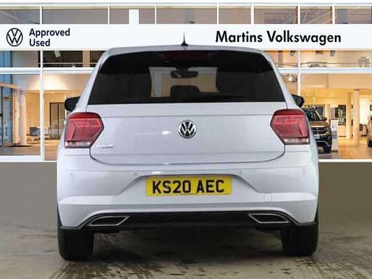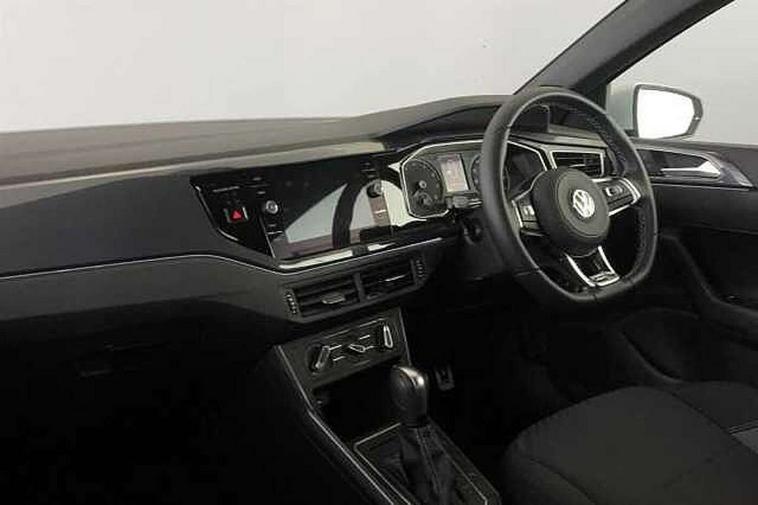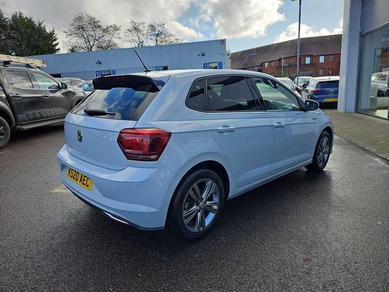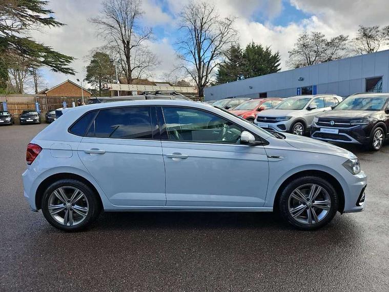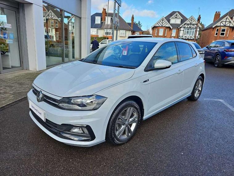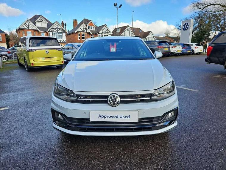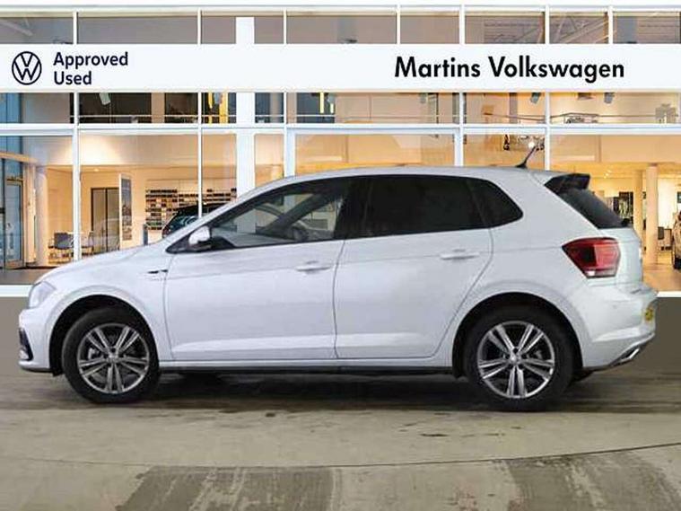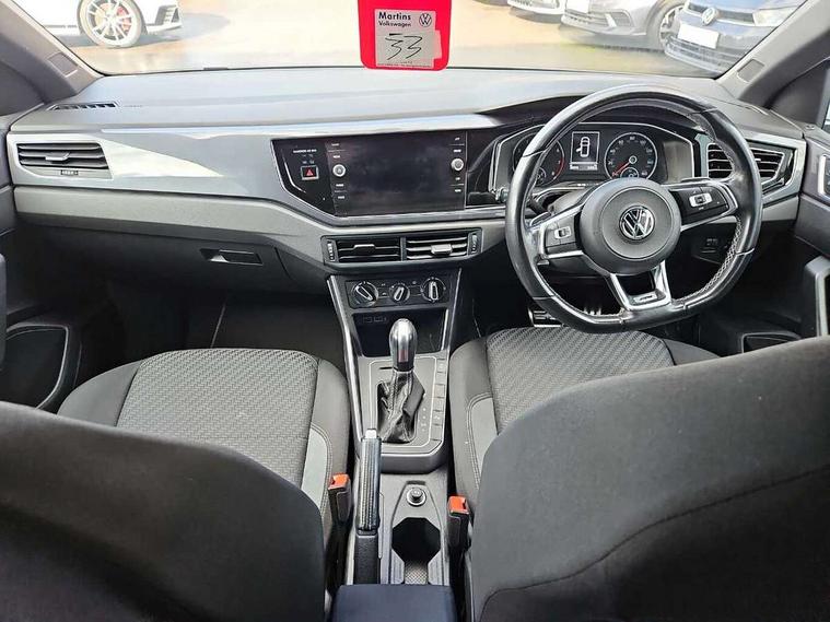 App-Connect, Digital clock, Driver alert system, Lights on warning, Multifunction computer plus, Power assisted speed sensitive steering, Speedo and rev counter, electronic odometer, trip, service interval display and fuel gauge, Start/stop system, Volkswagen connect, Warning buzzer and light for front seatbelts unfastened, Battery regeneration during braking, Galvanished body, Black grille with chrome surround, Body colour door handles, Body coloured side sills, Chrome trimmed strip on lower bumper, Electric front windows, Electrically foldable, adjustable and heated door mirrors with reverse activated kerb view adjustment on passenger's side, Front fog lights including static cornering, Front windscreen washers and wipers with 4 speed intermittent delay, Heat insulating tinted glass, Heated rear window with auto timer, High level 3rd brake light, LED darkened rear light clusters, LED daytime running lights, LED rear number plate lights, Left and right chrome effect trapezoid fascia exhaust tailpipe surrounds, Rear diffuser, Rear electric windows, Rear windscreen washer and wiper with interval delay, reverse activated, Unique R Line badging, 2 bag hooks in luggage compartment, 2 front cupholders and 12 V socket with cover, 3 rear head restraints, 60/40 split folding rear seat, Ambient lighting in front foorwell, front/rear door and dashboard light strips, Carbon flag cloth upholstery, Centre console storage with open storage compartment, Chrome-plated electric mirror adjustment switch surround, Chrome-plated electric window button surround, Driver and front passenger seat height adjustment, Driver and front passenger sunvisors with illuminated vanity mirrors, Dust/pollen filter, Folding rear seat backrest, Front + rear carpet mats, Front centre armrest with storage compartment, Front head restraints, Front seat backrest storage pockets, Front sport seats with lumbar adjustment and R line logo on seat backrest, Gear change selection via paddle shift on steering wheel, Gear lever gaiter in black trim surround, Glovebox, Handbrake grip button in chrome effect, Height/reach adjustable steering column, Instrument lighting, adjustable panel illumination, Interior light with delay, Isofix Preparation 2 Rear child seats, Jack and tool kit, Leather gear knob and handbrake grip, LED interior lighting - 2 reading lights front and rear with interior delay and dimming function, Luggage compartment cover, removable, Luggage compartment lighting, Luggage compartment with variable load floor, Stainless steel pedals, Storage compartment in front doors, Storage compartment in rear doors, Storage compartment under front seats, Three spoke leather trimmed multifunction steering wheel with aluminium inserts and R Line Logo, Titanium black roof lining and sun visors, Unique R Line door sill protectors, Light and sight pack - Polo, R Line styling pack - Polo, 3 point height adj front seatbelts + pretensioners, 3x3 point rear seatbelts, ABS, Automatic post collision braking, Driver/front passenger airbag, Drivers and front passengers safety optimised head restraints, ESP with EDL + ASR, Front and rear passenger curtain airbags, Front passenger airbag deactivation, Front seat side impact airbags, Front/rear disc brakes, HBA (Hydraulic Brake Assist), Hill hold control, Single tone horn, Tyre pressure monitoring system, Alarm with interior protection and deactivation via infotainment system, Electronic engine immobiliser, Remote central locking with 2 remote folding keys, Chrome plated air vent surround, Chrome plated instrument surrounds, Shadow steel decorative inserts, Steel space saver spare wheel,