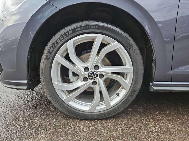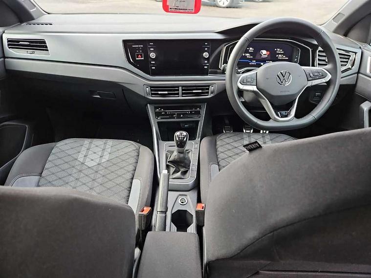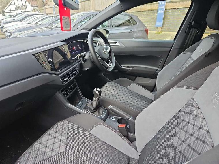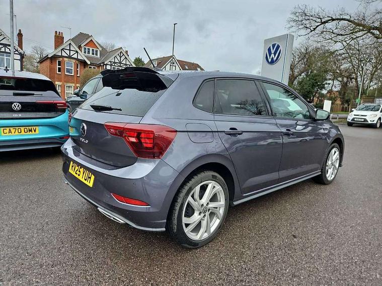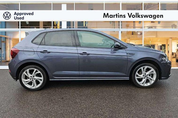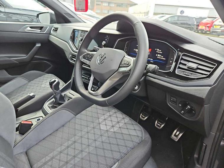 Advanced driver attention and drowsiness monitor, Bluetooth mobile phone interface, Digital Cockpit Pro with 10.25" Display, Dynamic road sign display, Emergency call service, Mobile phone preparation with inductive charging function, Multifunction camera, Power assisted speed sensitive steering, Predictive adaptive cruise control without follow-to-stop and speed limiter, Preparation for We connect and We connect plus, Speedo and rev counter, electronic odometer, trip, service interval display and fuel gauge, Standard rear axle, Travel Assist - Lane keeping system and traffic jam assist, Travel assist including emergency assist, Trip computer, Warning signal and warning light for front and rear seatbelts not fastened, Washer fluid level indicator, Wireless app connect, Front wheel drive, Rear shock absorpion, Start-stop system with battery regeneration (recuperation - energy recovery during braking), DAB Digital radio, Diversity antenna for FM reception, Body colour bumpers, Body colour door handles, Electric front windows, Front scuff plates with R-Line logo, Heat insulating glass windscreen, Power folding adjustable/heated exterior mirrors and front passenger exterior mirror lowering function, Rear electric windows, Rear fog light, Rear side wing doors, Rear windscreen washer and wiper with interval delay, Third brake light, 12V power socket in centre console, 2 USB-C ports in the front, 2 USB-C charging sockets on the center console in the rear, 3 rear head restraints, 60/40 split folding rear seat and rear seat bench not split, Air care climatronic air conditoning system with active combination filter and 2-zone temperature control, Black roof lining, Carpet mats, front and rear, Chrome plated radiator grille inserts, air vent surrounds and light switch surrounds, Door and side trim panel, Driver and front passenger seat height adjustment, Driver/passenger sunvisors with illuminated vanity mirrors, Front centre armrest, Front footwell illumination, Front seat backrest storage pockets, Front sports comfort seats, Handbrake lever handle in leather, Headliner in recycled material, Isofix child seat preparation easy-fit (for two outer rear seats, and front passenger seat) compatible with I-size, Karoso artvelours cloth upholstery, Leather trimmed gear knob, LED interior light with switch off delay and dimmer, 2 reading lights front and rear, Luggage compartment cover, Luggage compartment floor, Luggage compartment lighting, Lumbar adjustment for front seats, Multifunction steering wheel, Single front passenger seat, Stainless steel pedals, Standard pedal cluster, Light and sight pack - Polo R-Line/Black Edition, 3 point height adj front seatbelts + pretensioners, 3x3 point rear seatbelts, ABS, Driver and front passenger airbag with front passenger airbag deactivation, Drivers and front passengers safety optimised head restraints, ESC (Electronic stability control) + EDL (Electronic Differntial lock) and ASR (Traction control), Extended and predictive pedestrian/ cyclist protection, Front curtain and side airbags with center airbag, Hill hold control, Manual child lock in rear doors, Single tone horn, Tyre pressure loss indicator, Alarm with interior protection, Anti-theft alarm system with interior monitoring, backup horn, and towing protection, Anti-theft wheel bolts, Electronic engine immobiliser, Chrome applications on rotary light, mirror adjustment, window regulator switches, outlet with frame in black, Dark grey anodised matt decorative inserts in dash and front door panels, 16" Coventry alloy wheels, Low rolling resistance tyres,