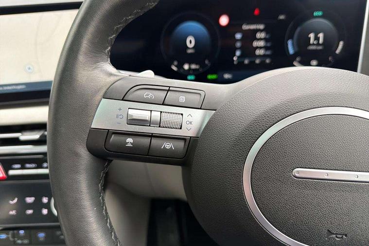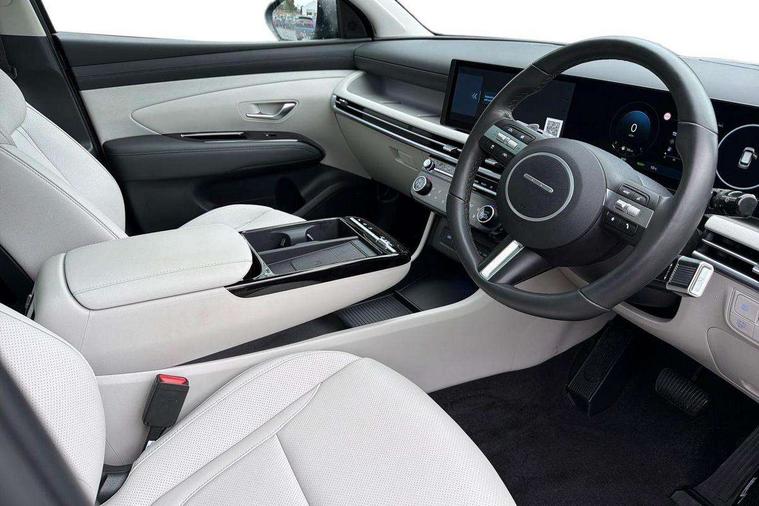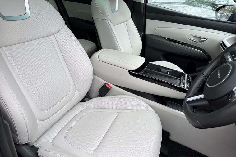 12.3" LCD display with driver's supervision instrument cluster, 12.3" widescreen navigation with bluelink and mapcare, Blind spot view monitor, Bluetooth system, Cruise control - smart adaptive speed control with stop and go function, Digital clock, Drive mode selector, Driver attention warning, E-call, Emergency stop signalling system, Forward Collision Avoidance Assist (FCA) - Car, Pedestrian and Cycle, Forward Collision Avoidance Assist Junction Turning (FCAJX), Front and rear parking sensors, Front, rear and side parking distance warning, Highway Driving Assist (HDA), Hyundai road side assistance, Intelligent speed limit assist, Lane follow assist, Lane keep assist, Over the air updates(OTA), Parking collision avoidance assist (PCA), PAS, Rear camera and guidance parking system, Rev counter, Smart power tailgate, Surround view monitor, Tailgate open warning light, Trip computer, Trip odometer, Voice recognition, Water temperature gauge, Windscreen washer fluid sensor and warning indicator, Wireless Apple CarPlay/Android Auto, Wireless phone charging pad, 2 front and 2 rear USB-C ports, DAB Digital radio, Krell premium audio system with 8 speakers and subwoofer, Steering wheel mounted audio/phone controls, Adjustable intermittent front windscreen wipers with aero wiper blade, Auto dimming rear view mirror, Automatic defog system, Automatic headlights with dusk sensor, Automatic windscreen wipers with rain sensor, Black wheel arches, Body colour bumpers, Body colour door mirrors with integrated indicators, Body colour exterior door handles, Electric tilt/slide panoramic sunroof, Electrically adjustable, heated and power folding door mirrors, Follow me home headlights, Front and rear electric windows with anti-trap mechanism and one touch control, Front fog lights, LED 3rd brake light, LED daytime running lights, LED rear lights, Matrix LED headlights, Positioning Lights - LED, Privacy glass - Rear windows and tailgate, Rear side wing doors, Rear wash/wipe with intermittent wipe setting, Roof rails, Tinted glass with windscreen shade band, Trailer stability assist, 12V power outlets in front console and luggage compartment, 3 seat bench in 2nd row, 40/20/40 split folding rear seat, 64 colours interior ambient lighting, Adjustable head restraints (Up and down), Cupholders in rear armrest, Door courtesy lights, Driver and passenger sunvisors with illuminated LED vanity mirrors, Driver's seat electric adjustments, Driver's seat memory, Front and rear door pockets, Front armrest with storage box, Front centre console and door bottle holders, Front passenger's seat electric adjustments, Heated front seats, Heated rear seats, Heated steering wheel, Height/reach adjustable steering column, Illuminated/air conditioned glove compartment, ISOFIX child seat anchorage points attached on outer rear seats, Leather upholstery, Leather wrapped steering wheel and gear knob, Luggage compartment lighting, Luggage cover, Luggage hooks, Luggage net, Map and reading lights, Rear seat remote folding function, Rear side window sunblind, Reclining rear seats, Retractable load cover, Single front passenger seat, Sunglasses holder, Three zone climate control, Touch sensitive climate controls with temperature dials, TUCSON branded metal door scuff plate, Underfloor boot compartment, Ventilated front seats, Trailer wiring package - Tucson, 3x3 point rear seatbelts, Active bonnet, Airbag - Front, front side, curtain and centre front airbags, Anti-lock brake system (ABS), Brake assist function, Childproof rear door locks, Curtain airbag roll over sensor, Downhill brake control, Electric parking brake, Electronic stability control, Front and rear seatbelt reminder, Front passenger airbag deactivation switch, Front seatbelt pretensioners, Hill start assist control (HAC), Multi-Collision braking, Outer rear seatbelt height adjustment, Seatbelt height adjustment for front seats, Traction control, Tyre pressure monitoring system with individual tyre pressure display - TPMS, Vehicle stability management, Deadlocks, Immobiliser, Locking wheel nuts, Remote control central locking, Smart key with keyless entry and engine start/stop button, Speed sensitive auto door locking, Thatcham category 1 alarm, 19" Alloy wheels, Tyre repair kit,